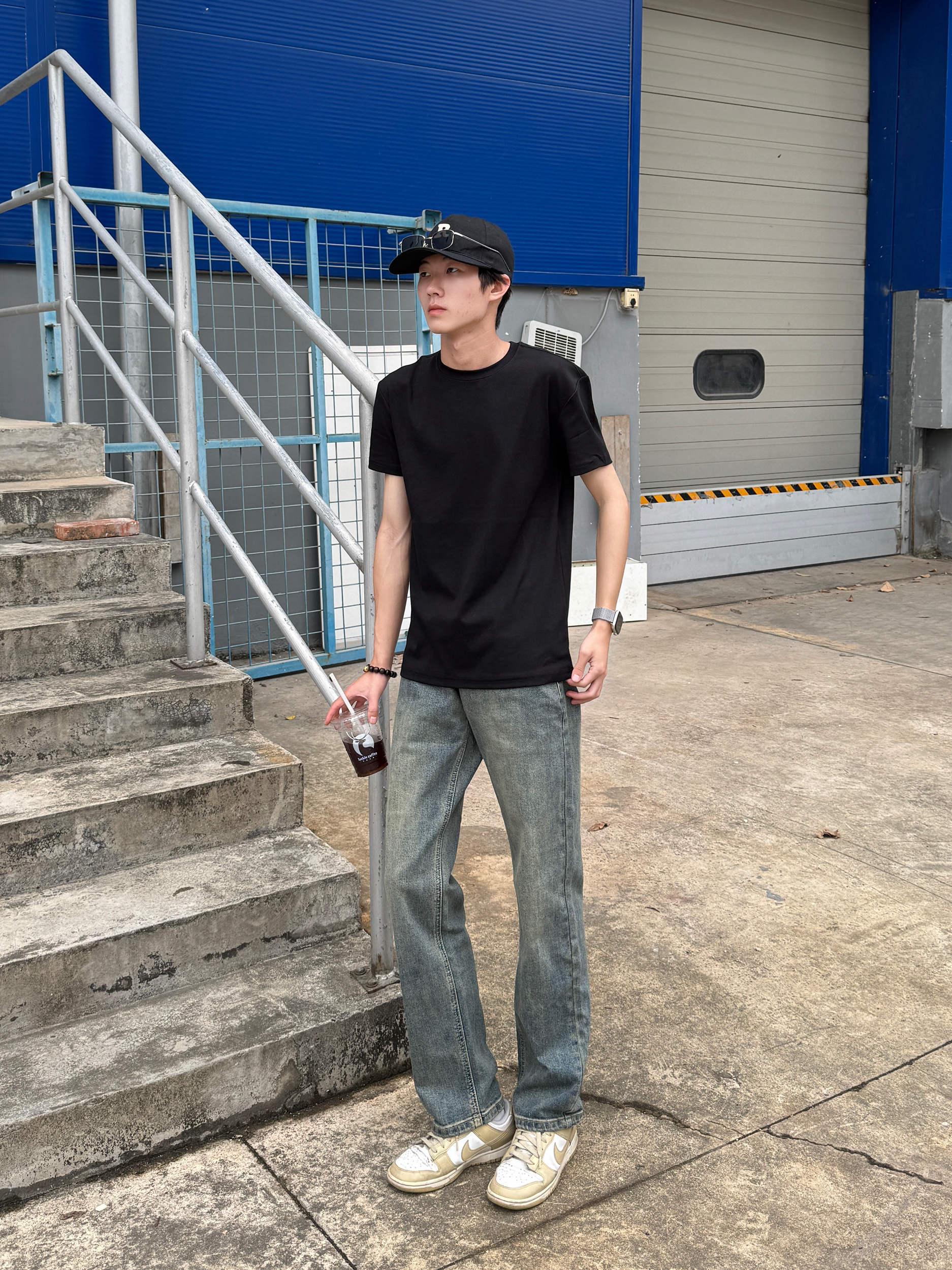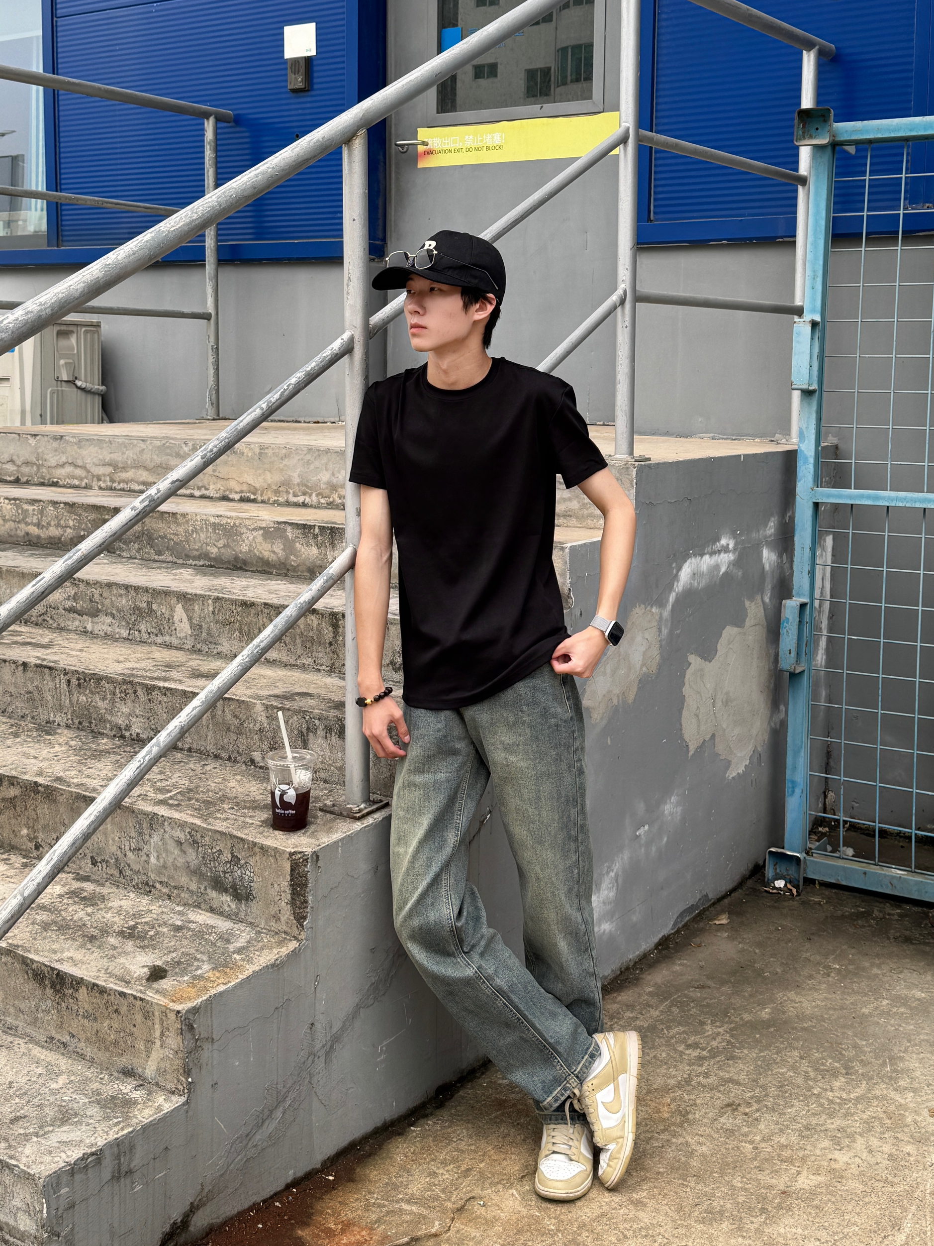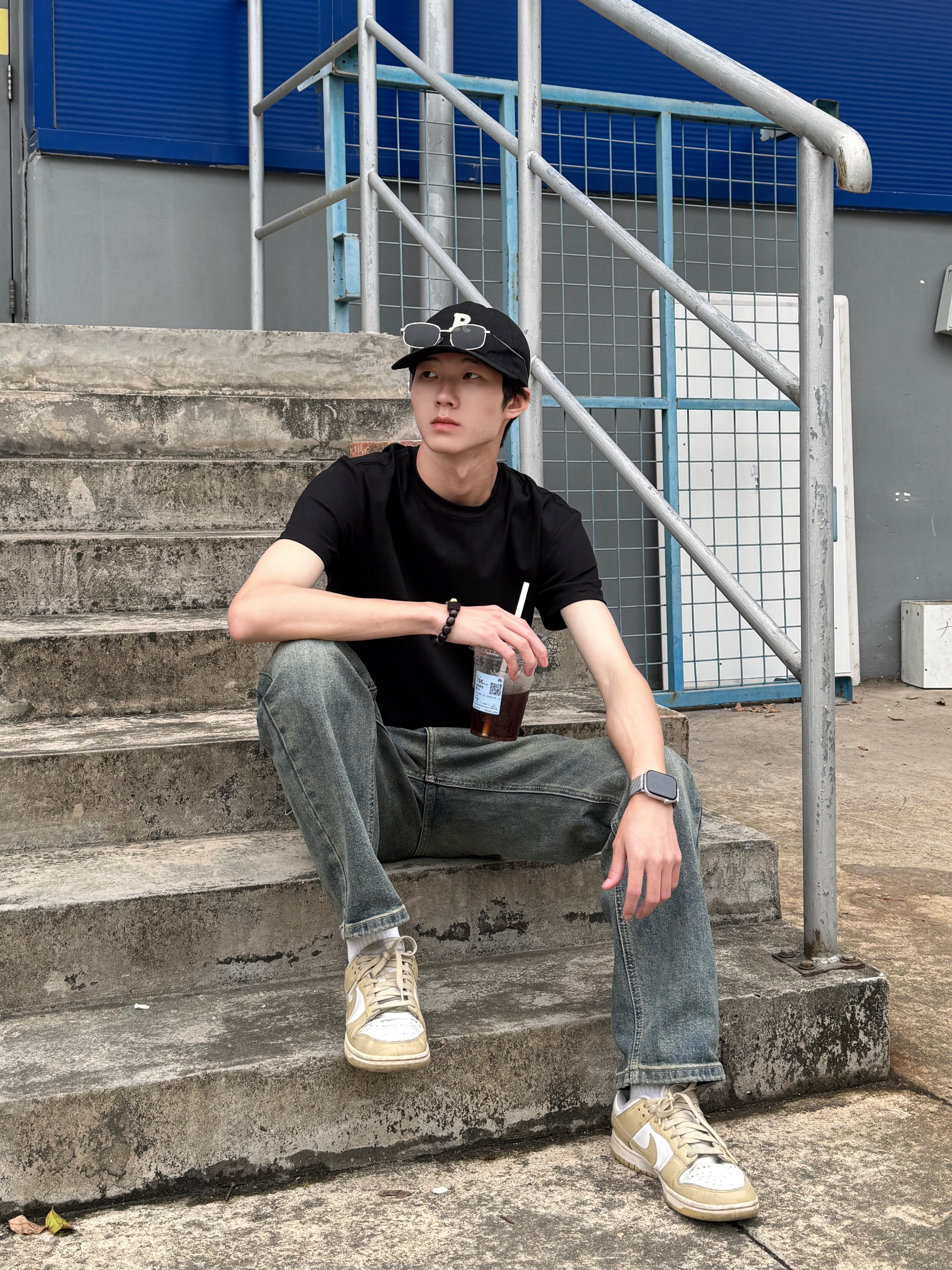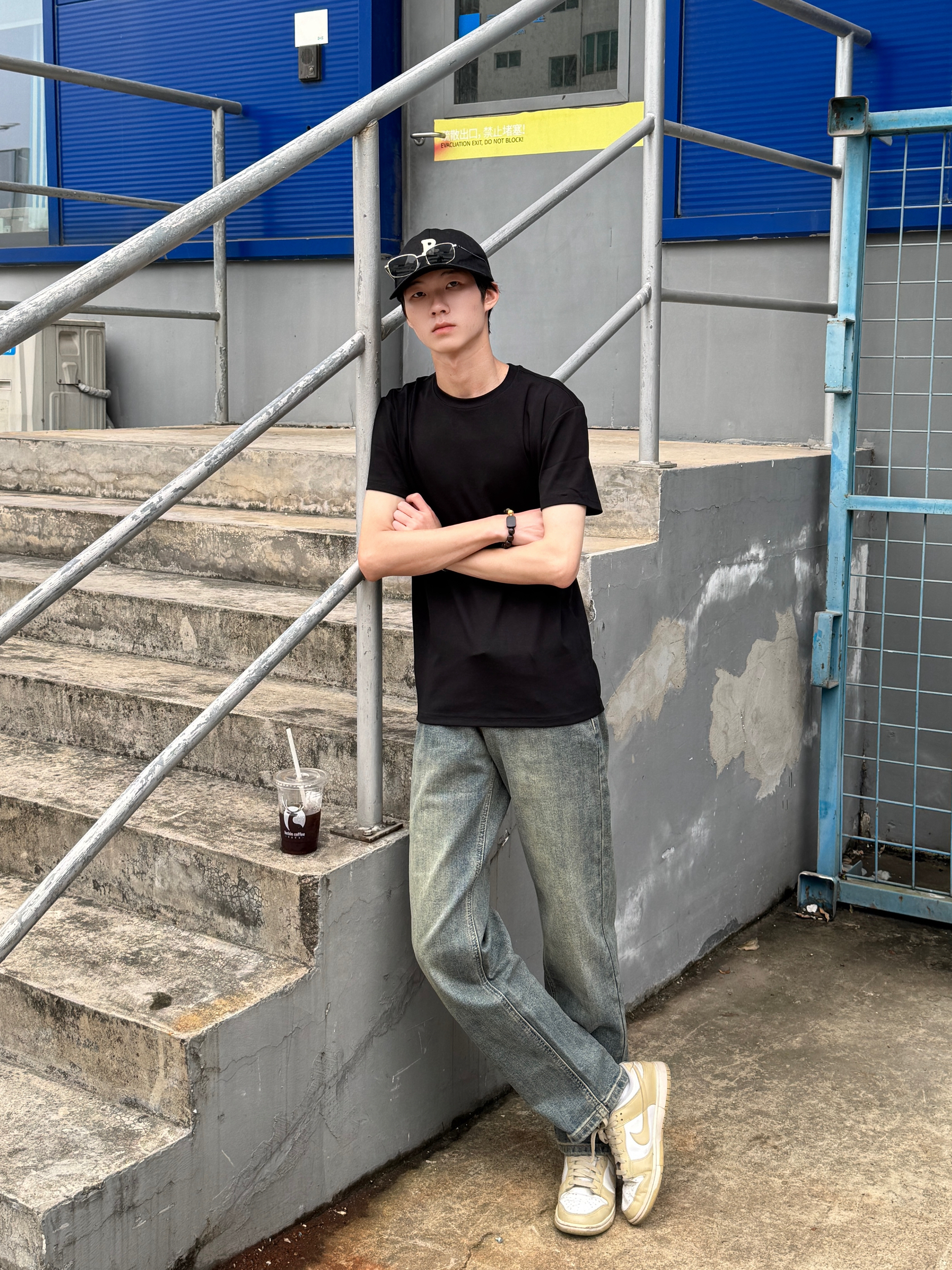 基础款黑T是穿搭界的万能钥匙,搭配做旧水洗直筒牛仔裤,用最简约的组合打造干净利落的少年感。 黑棒球帽+做旧板鞋,细节拉满松弛氛围,手持冰美式,在工业风街头随性出片。 不费力的日常穿搭,通勤出街都适配,轻松拿捏永不过时的休闲风。