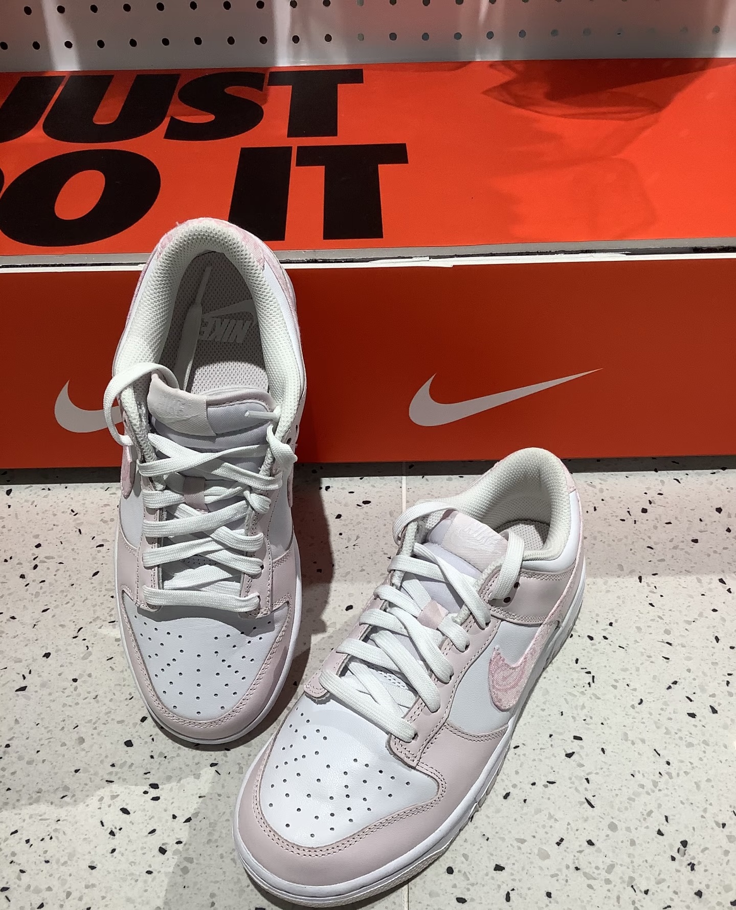 宝子们!Nike这双粉白腰果花Dunk直接戳中少女心 💘奶乎乎的浅粉+纯净白,鞋侧勾子上的粉色腰果花精致到尖叫, 复古鞋型还特显脚小~春天穿它出门回头率直接拉满,感觉空气都变甜啦✨ #NikeDunk #粉白腰果花 #甜妹必备鞋款 #穿耐克萬事全对