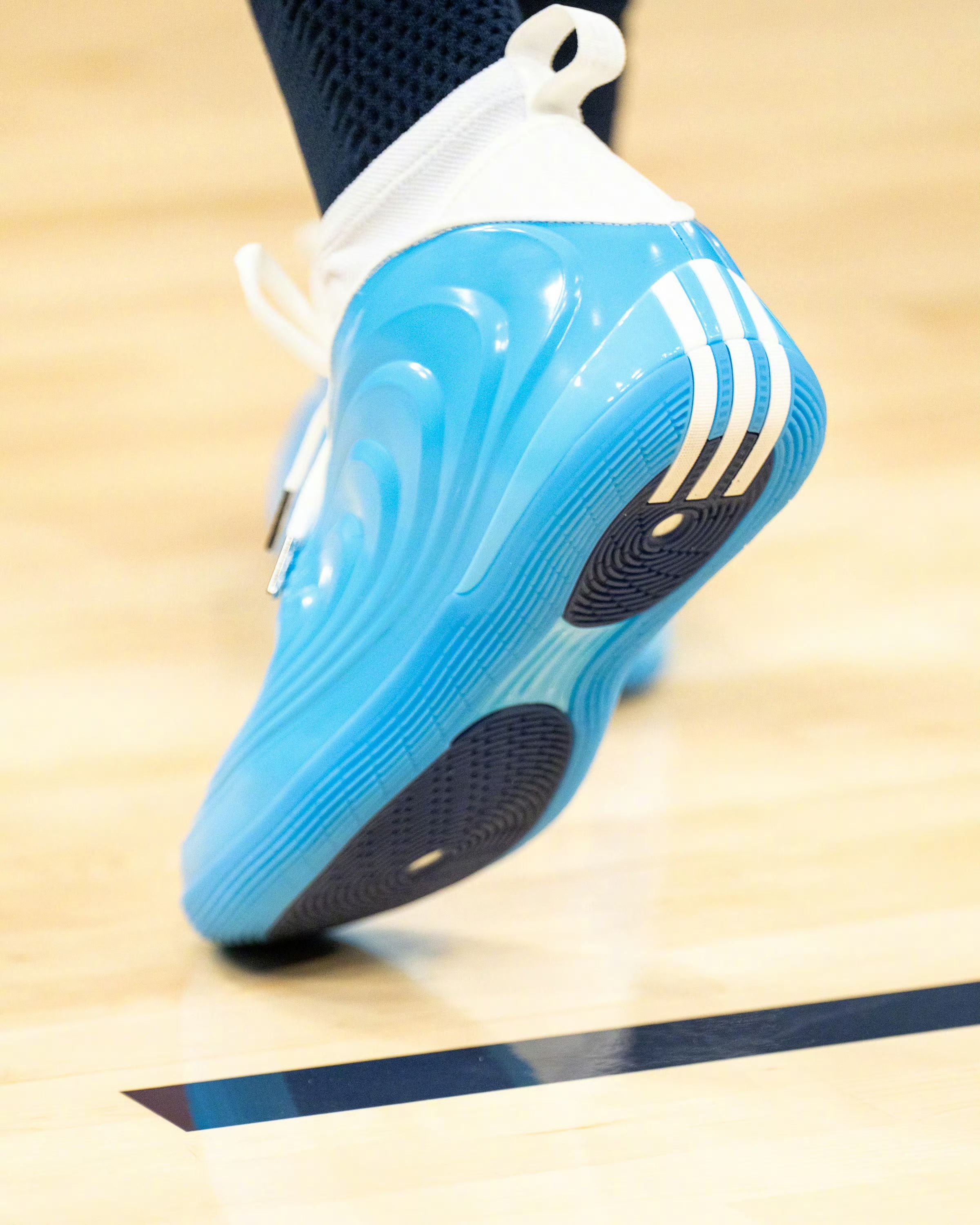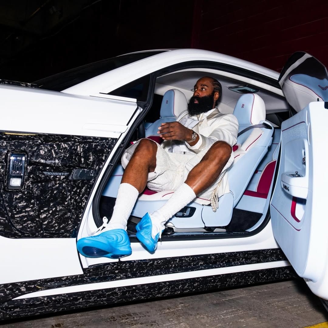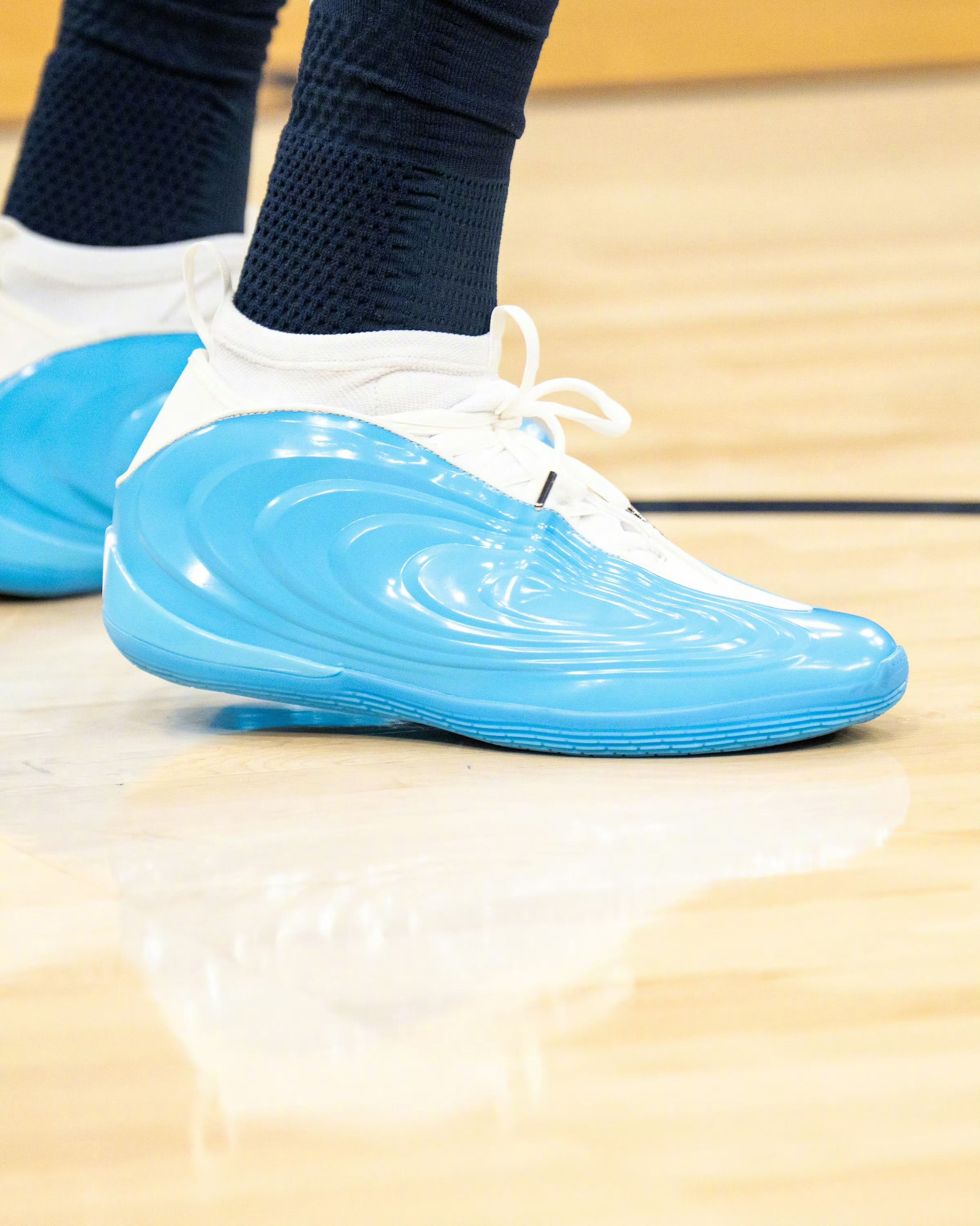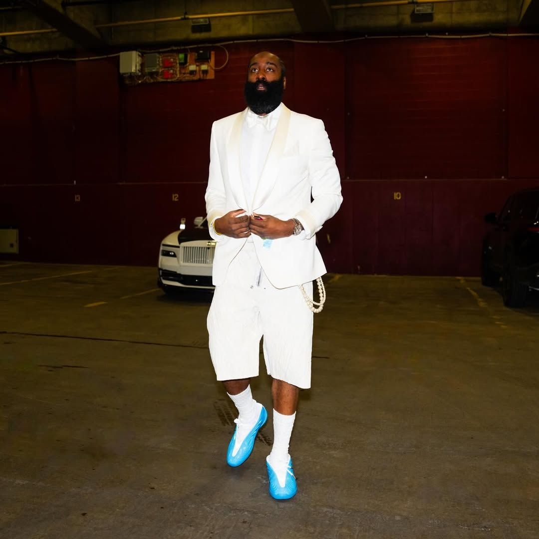 致敬哈登的季后赛生涯 这个配色是为了纪念哈登连续17次参加NBA季后赛的传奇历程,鞋款的淡蓝色主调搭配白色细节,象征着他漫长且稳定的季后赛征程,也呼应了他赛前乘坐的定制劳斯莱斯闪灵的浅蓝色内饰与细节,形成了“鞋车同色”的仪式感。 鞋面采用亮面天蓝色材质,搭配白色鞋舌与后跟细节,整体视觉干净又充满活力;搭载全掌LIGHTBOOST缓震科技,兼顾了实战性能与造型辨识度。 这个配色和致敬Nipsey...