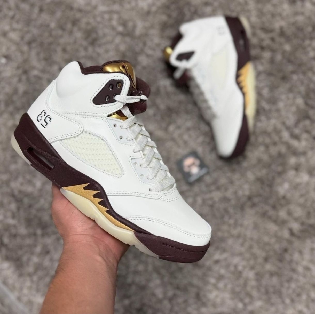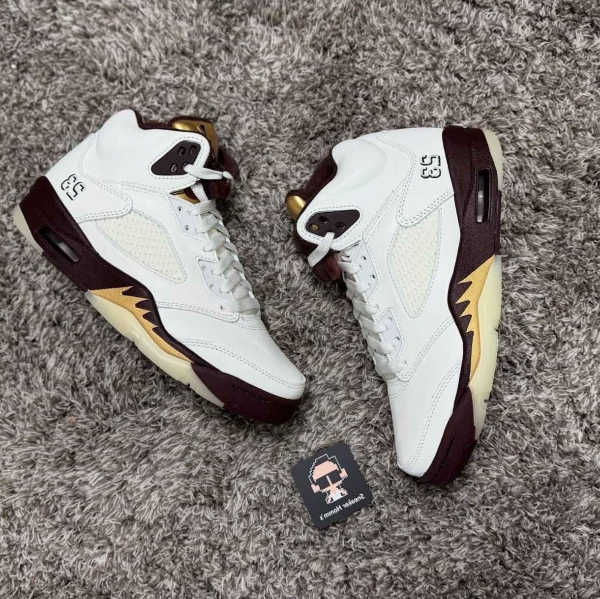 这双AJ5真的长在我的审美点上!米白+深棕+金色的配色复古感拉满,鞋身的网面设计透气又有质感,上脚脚感软糯,气垫缓震超给力。