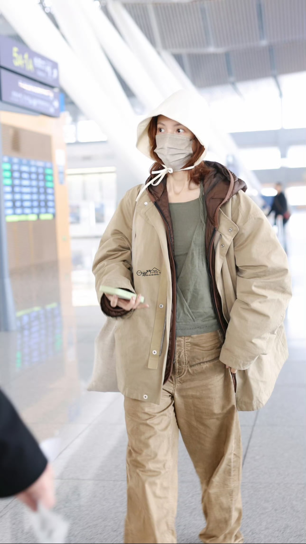 金晨分享了4月16日机场私服,卡其色外套下搭阔腿长裤,内搭性感长T恤,时髦可爱的飒宝穿搭!大喜的私服真的一种说不上来又很舒服高级的穿搭! CR:@见水印