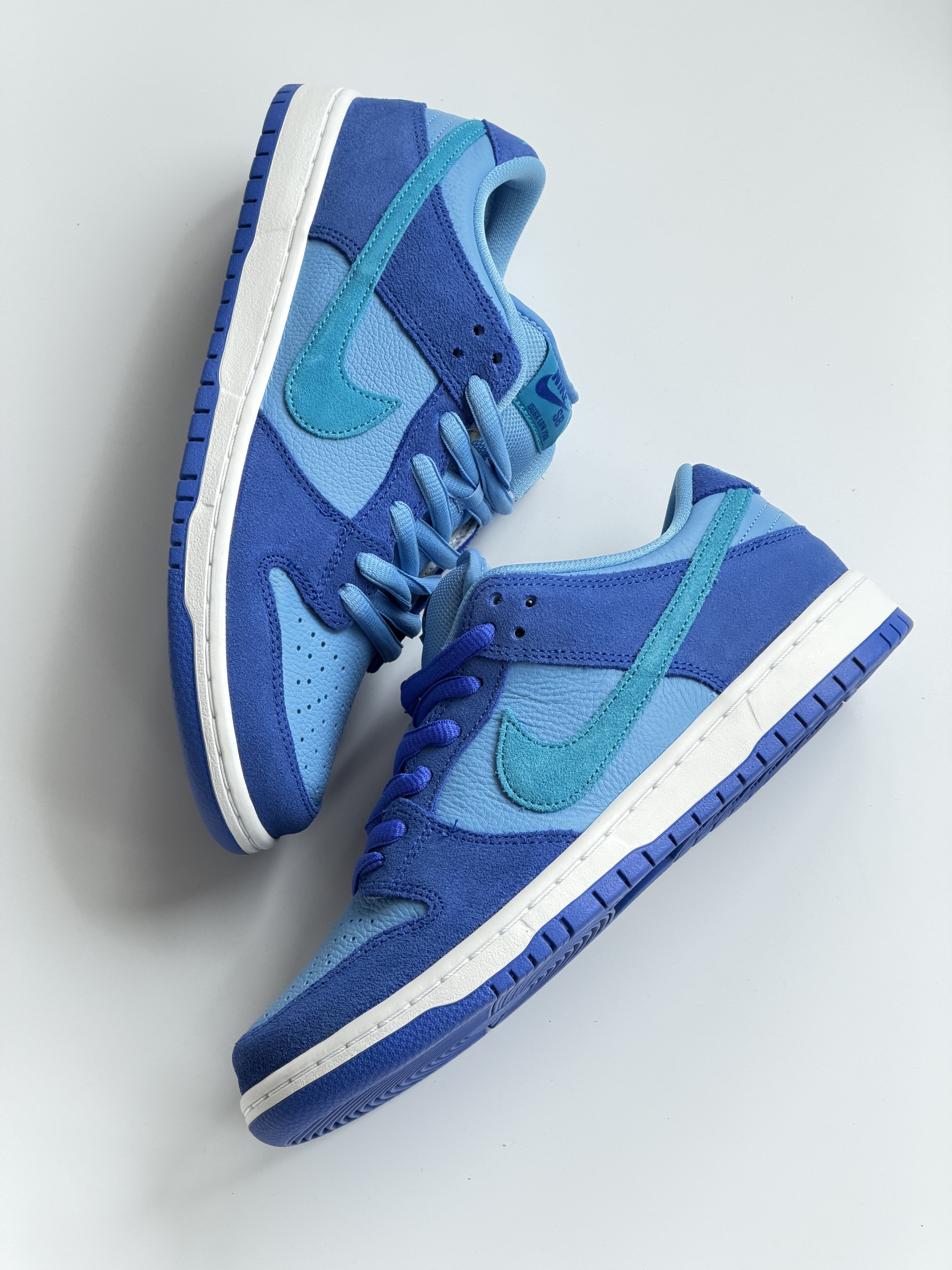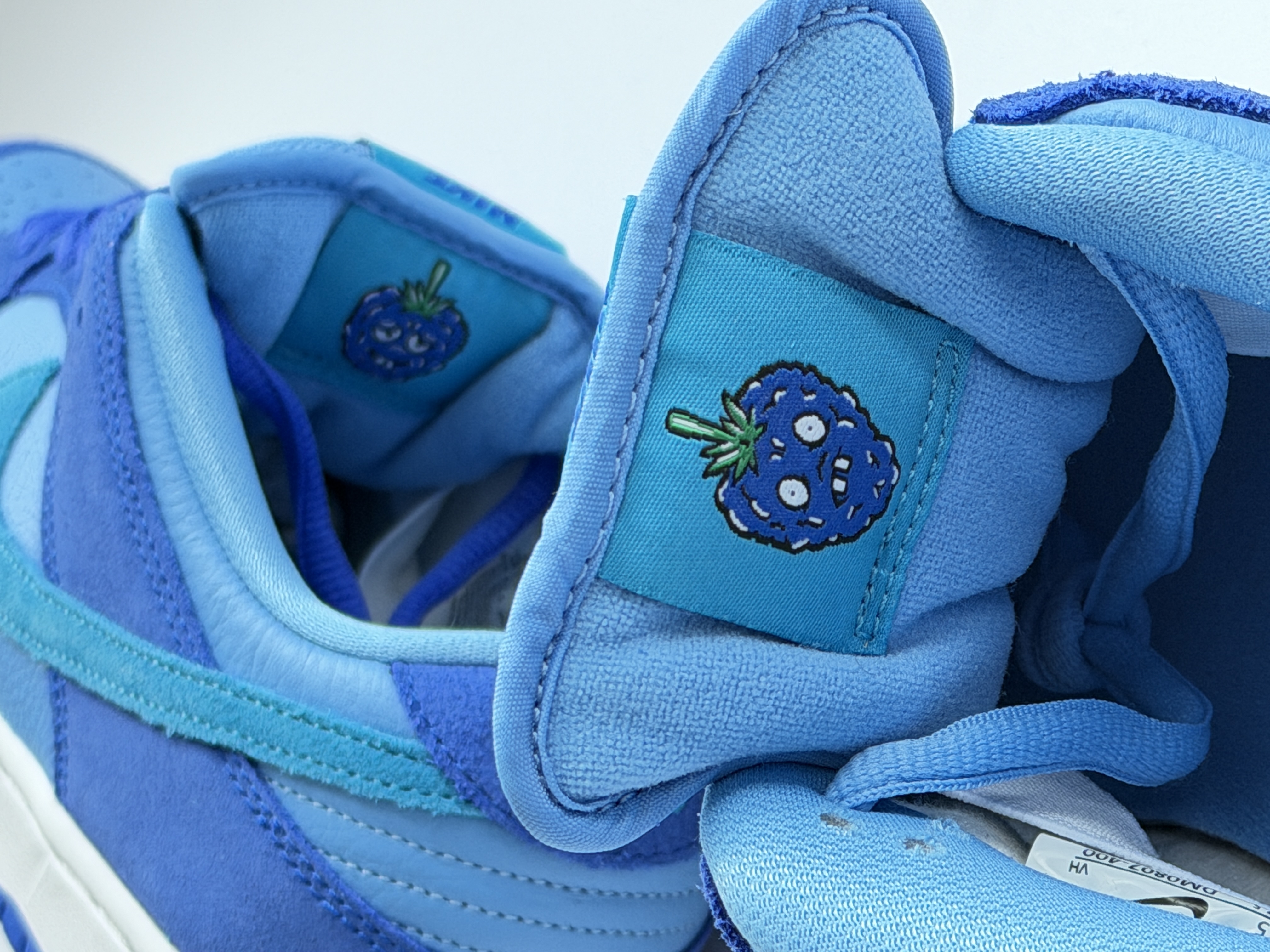 经典水果系列蓝树莓dunksb真的是春夏季最好搭配的颜色,荔枝皮与麂皮拼接皮质很好,最有特色的蓝树莓图案蛮搞怪的。脚感舒适配色比较好搭!