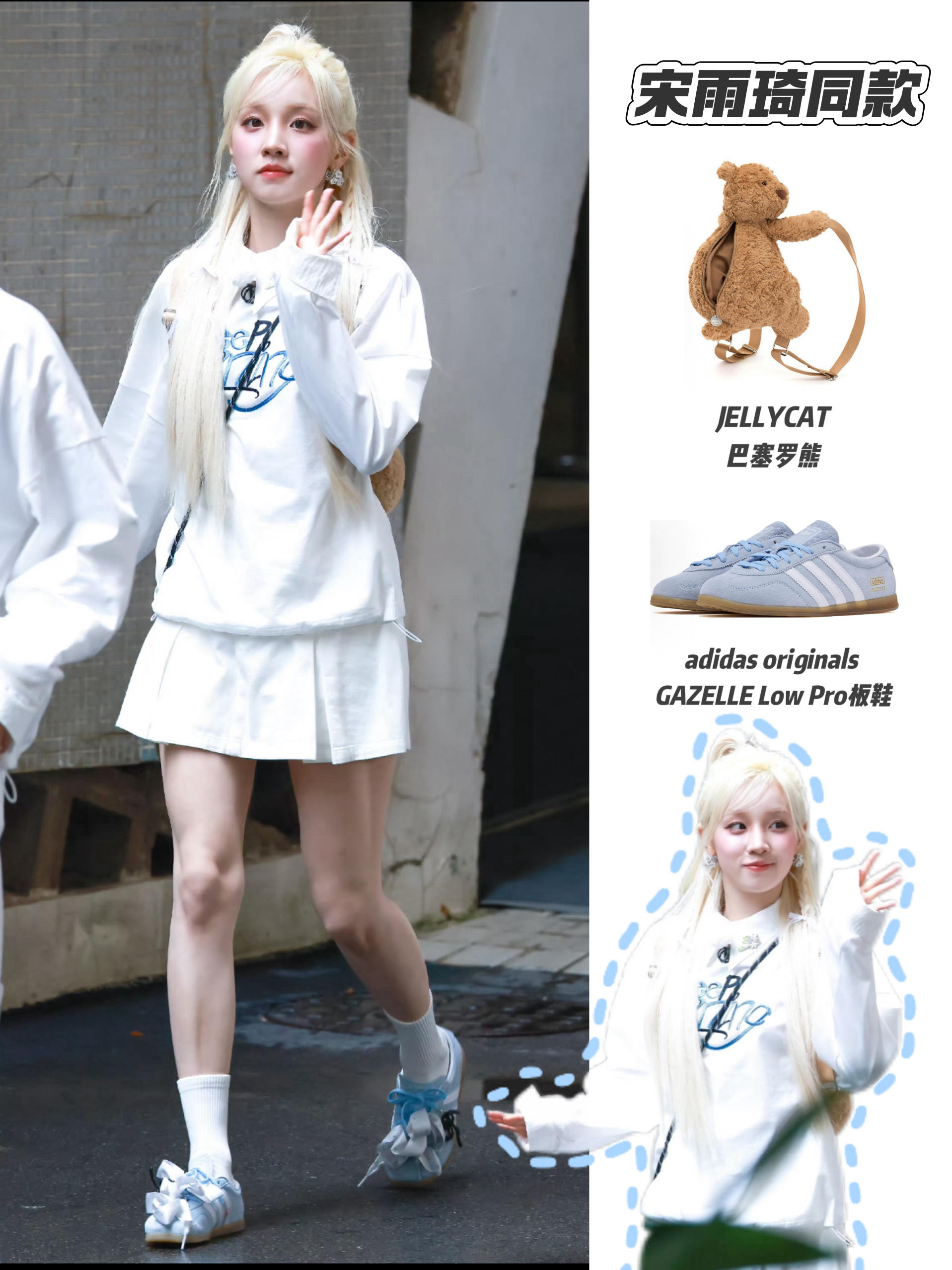 宋雨琦这套奶白穿搭也太甜了!宽松卫衣搭百褶短裙,清爽又元气,直接把少女感拉满! 最绝的是这双改造款adidas德训鞋,浅蓝配色温柔到犯规,蝴蝶结装饰甜妹感拉满,和整套穿搭完美适配,上脚显嫩又显腿长,甜妹穿搭直接抄作业!