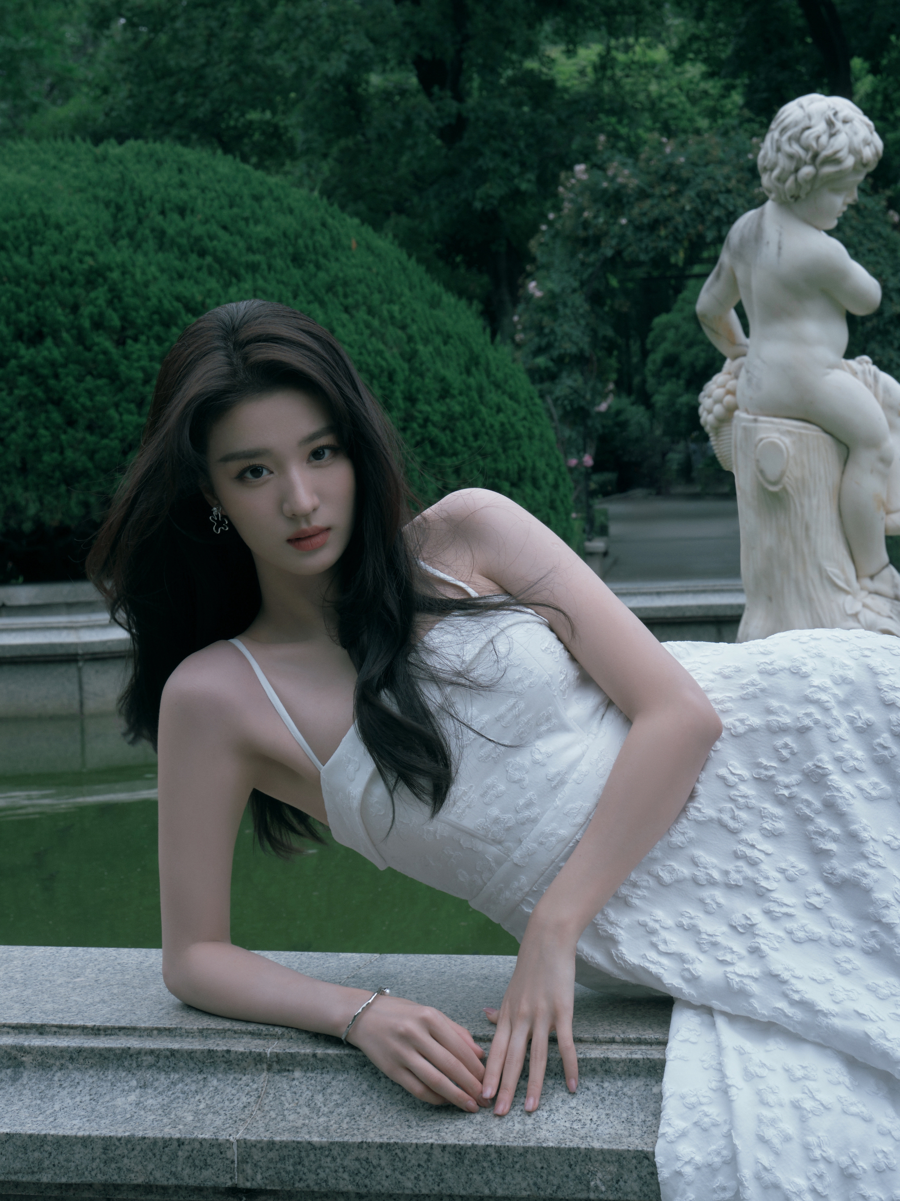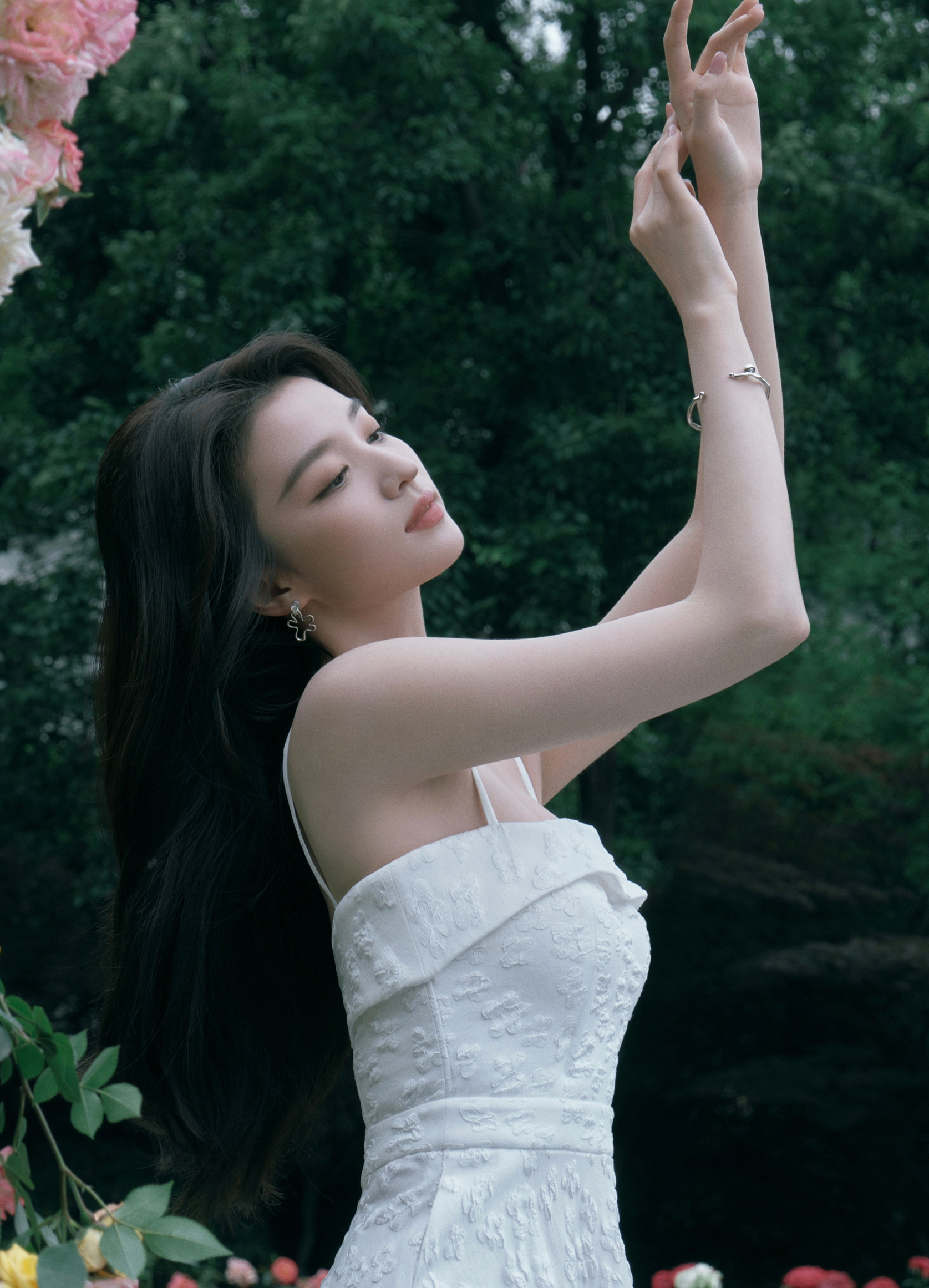 王楚然这身白月光穿搭太戳了! 白色提花吊带裙温柔又显气质,把清冷感和优雅感拿捏得死死的。花朵耳环灵动点睛,甜酷感拉满,细节感十足。整体造型干净纯粹,氛围感拉满,妥妥的人间白月光,美到犯规!