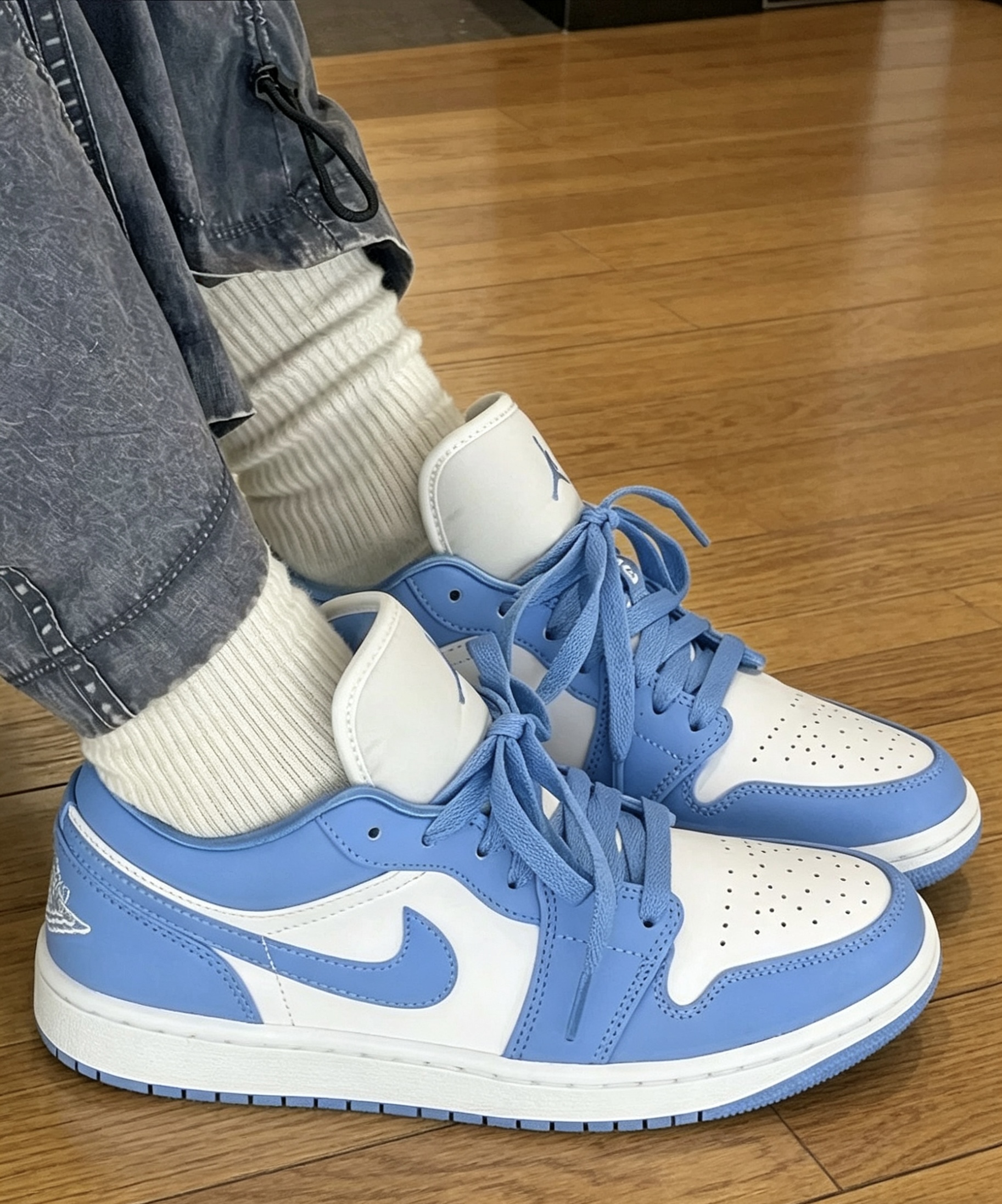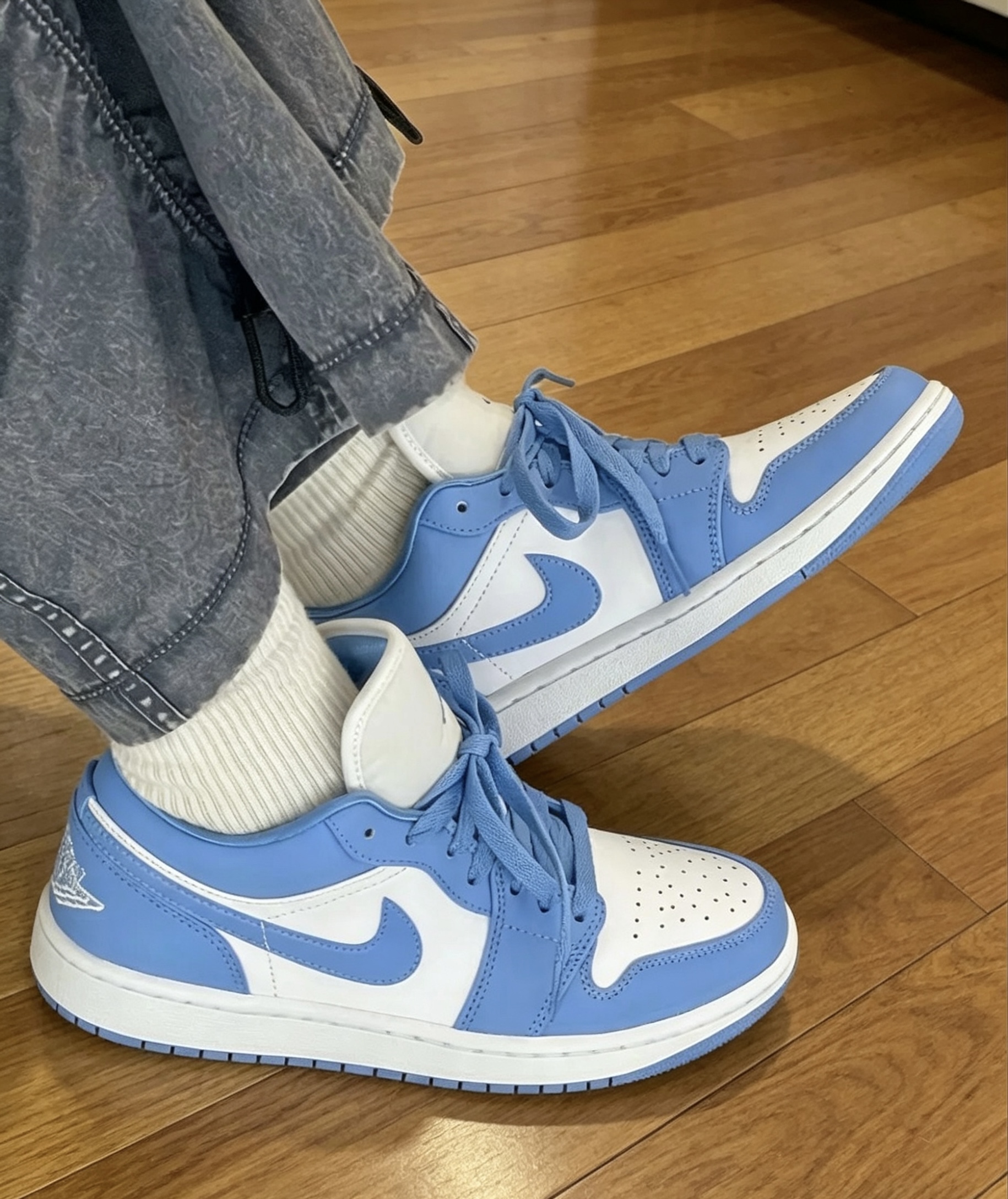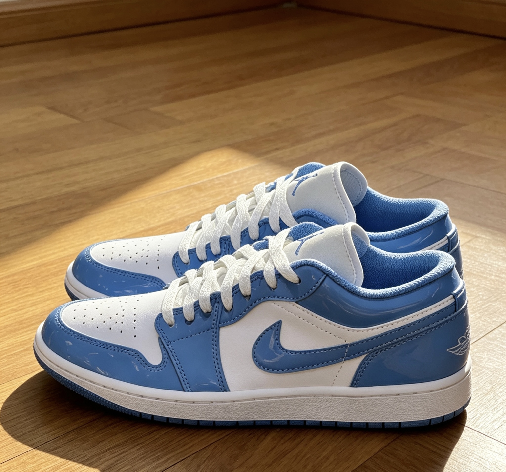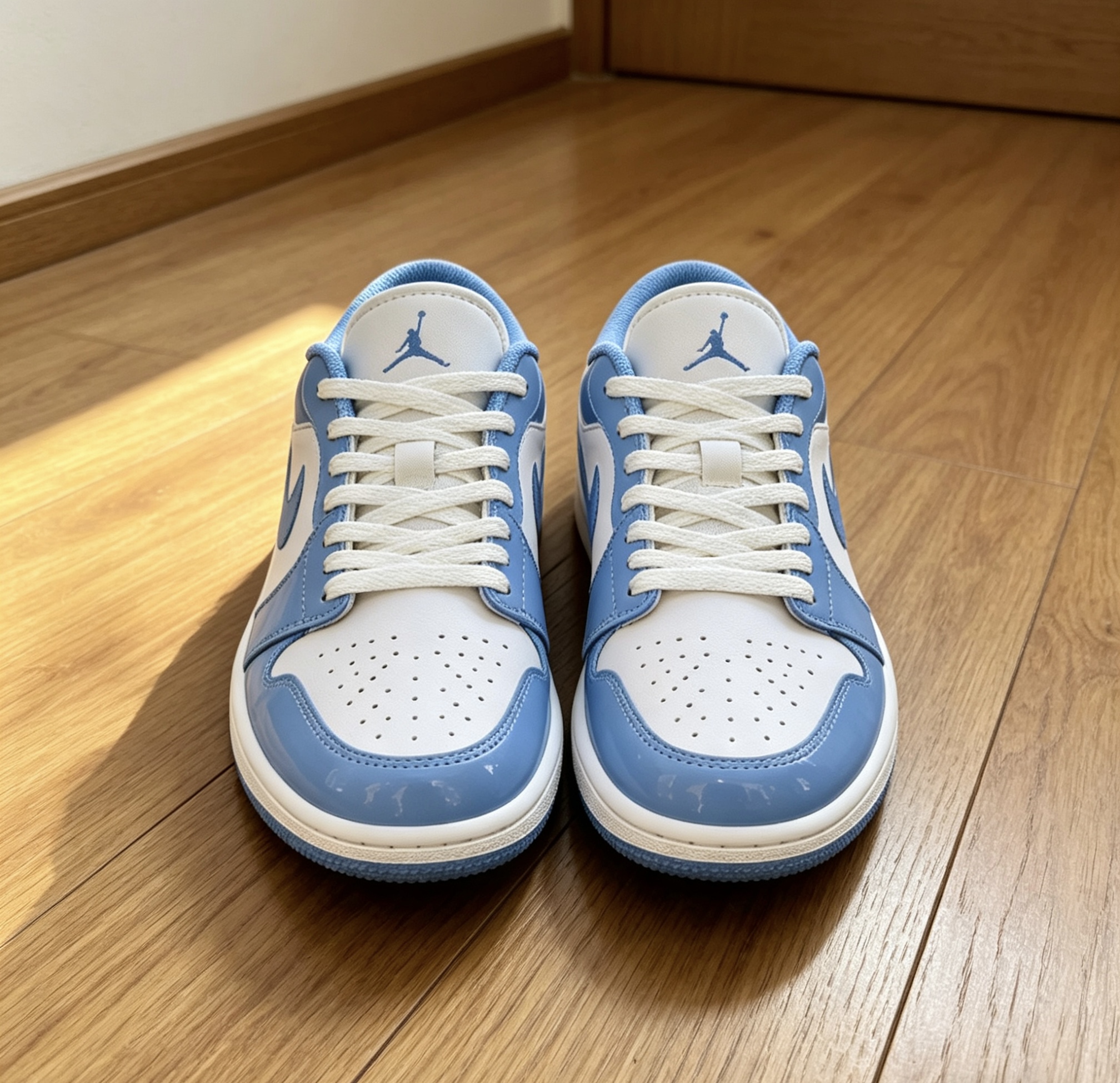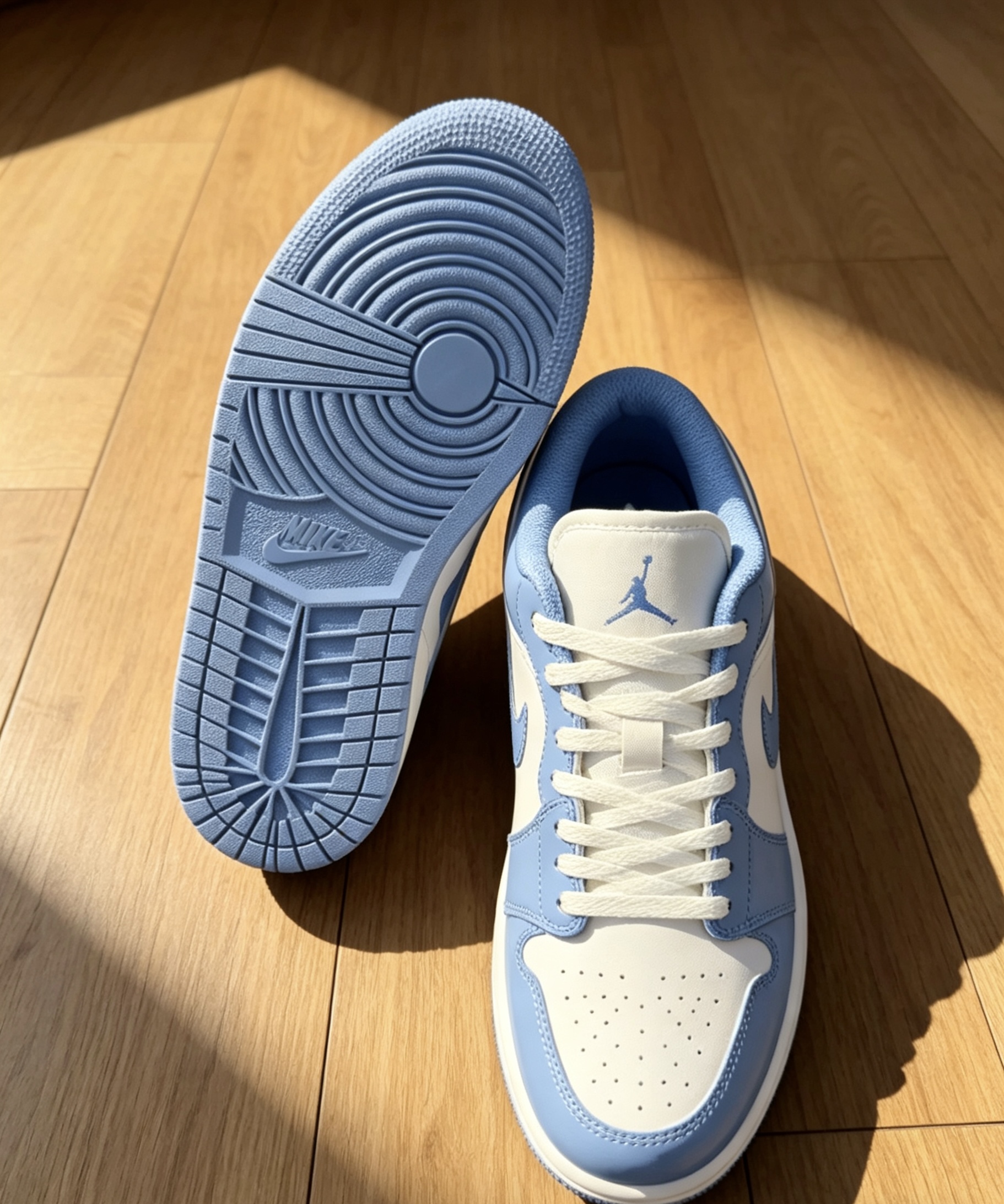 AJ1 Low北卡蓝实测|这3点一定要知道! ✅ 颜值:经典UNC配色,白蓝拼接干净高级,漆皮鞋身自带光泽,辨识度拉满 ✅ 穿搭:低帮露脚踝神器,搭直筒裤、工装裙都不违和,情侣同穿超有氛围感 ✅ 脚感:Ortholite鞋垫+Air Sole气垫,日常通勤软弹不板脚,比高帮舒服太多 细节控看过来,后跟飞翼刺绣、鞋舌Jumpman Logo都在线,性价比直接拉满💯 #AJ1测评 #球鞋干货 #北卡蓝...