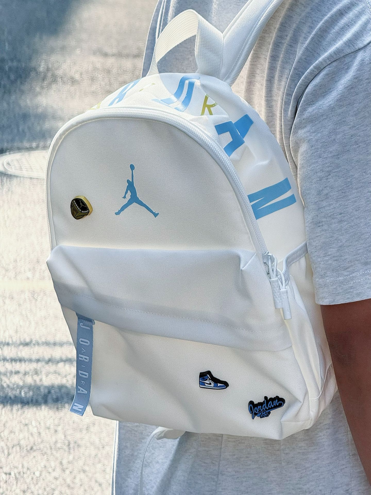 本篇笔记关联了Jordan 中号情侣款品牌Logo简约大容量聚酯纤维双肩包 棉花糖白 JD2623068PS-001等商品,为用户提供真实的使用体验和购买参考。