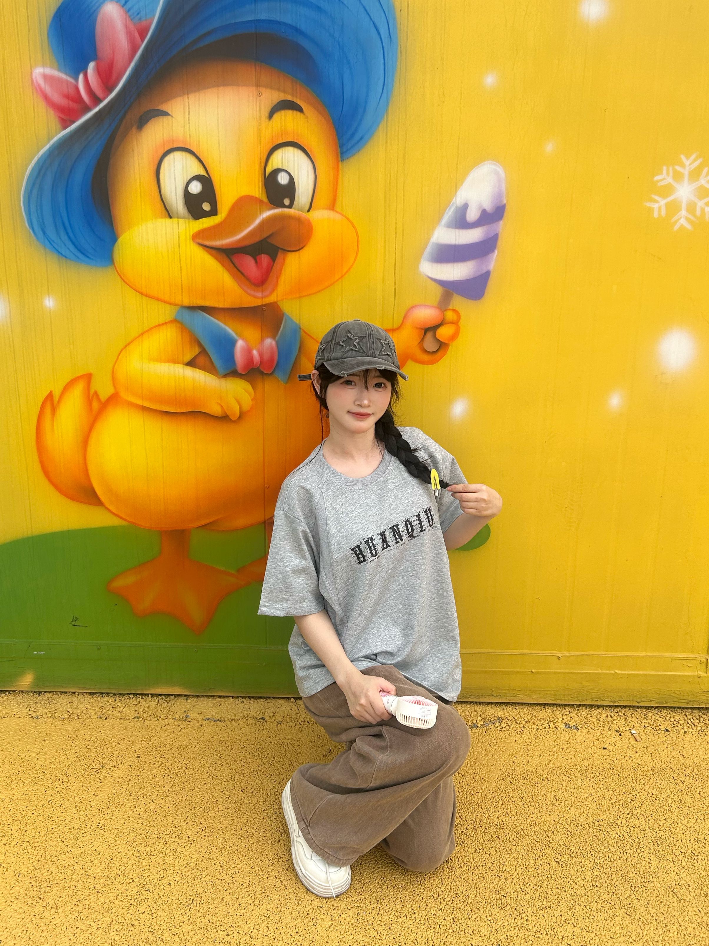 哈喽,家人们,今天的穿搭分享来啦,是一套夏天cleanfit无性别短袖穿搭分享~ 灰色正肩字母印花短袖T恤+灰色直筒牛仔裤+白色百搭鞋子 在游乐场玩跟小黄鸭合拍活力感满满~ 尺码参考: 身高、体重:160、90 衣服:m 裤子:m 鞋子:36