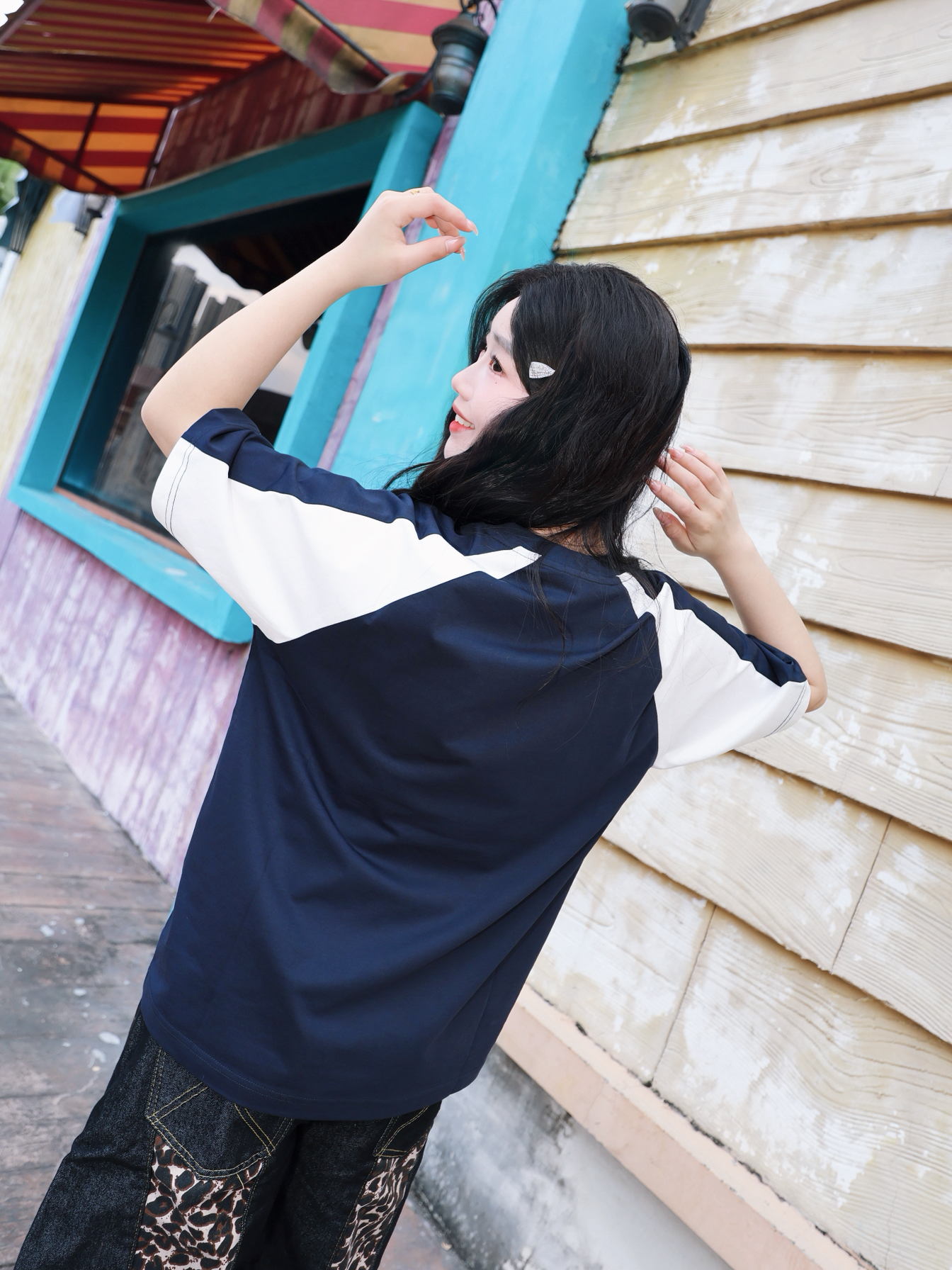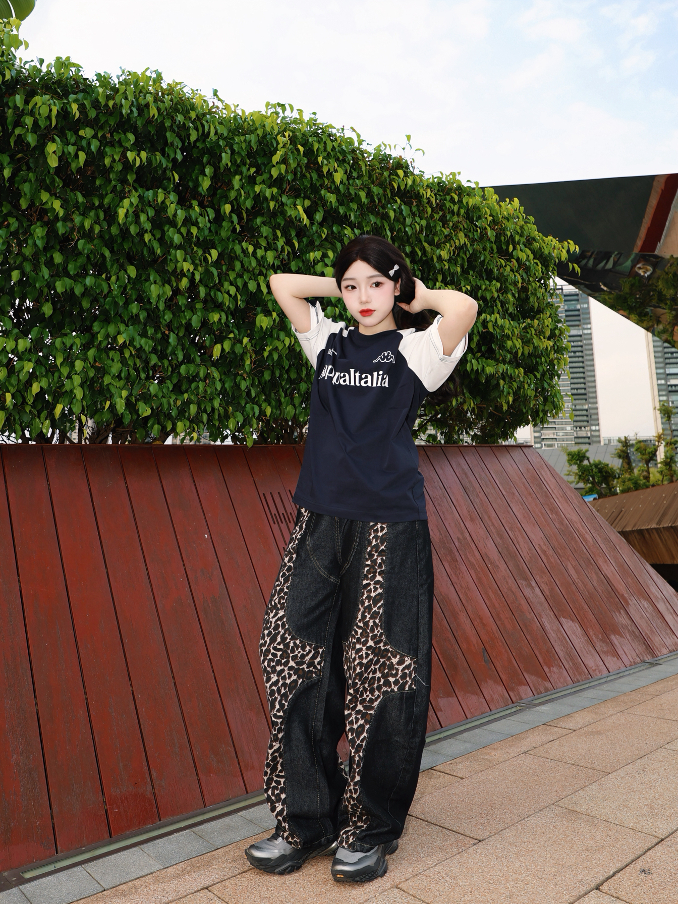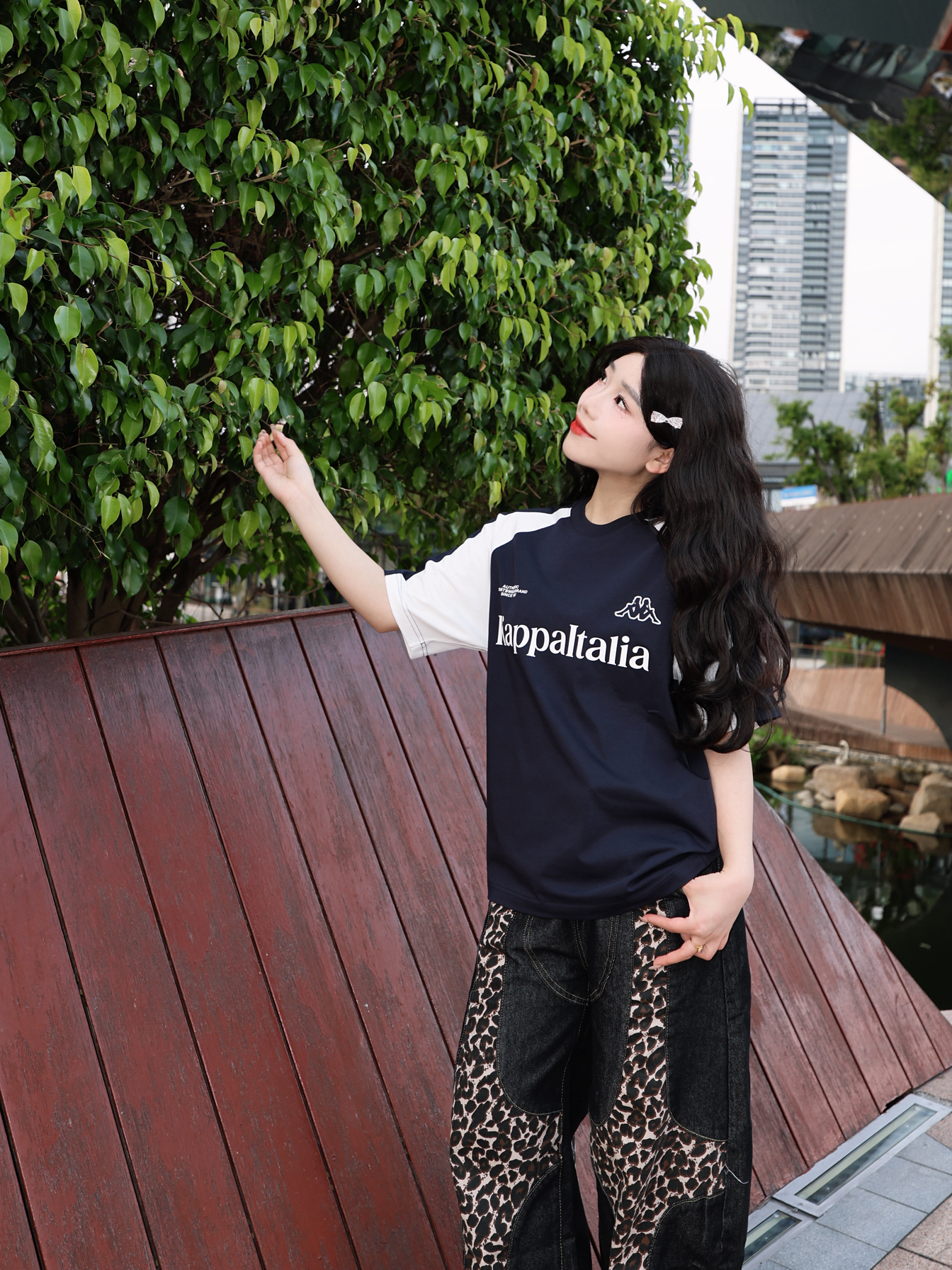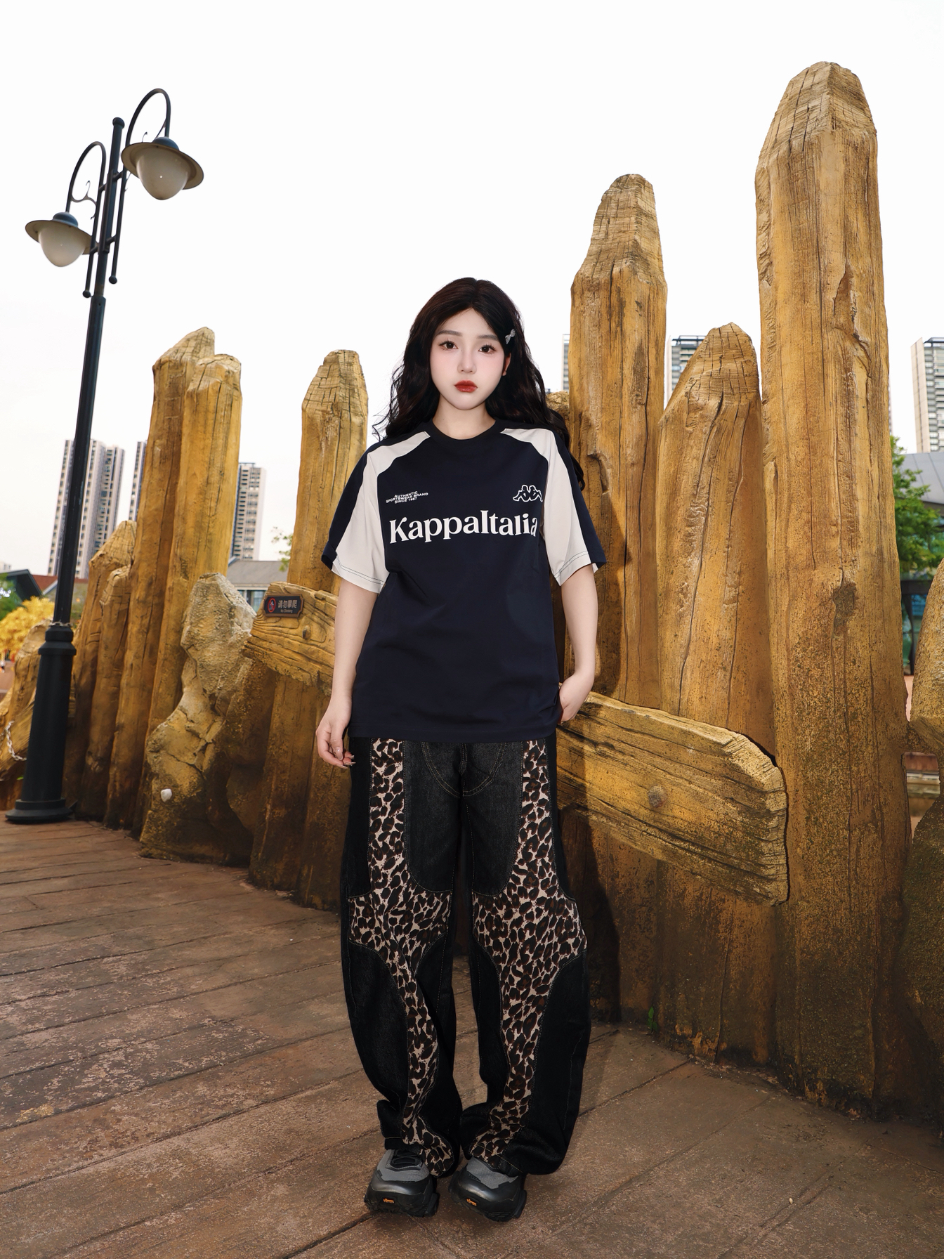 今天的主角是一一 撞色拼接款短袖 黑白撞色经典不过时 美式宽松版型 Kappa 胖瘦都能驾驭住 胸口的印花为整体的层次感增色不少 搭配一条竖状纹路长裤 人物比例一下子协调很多 这样穿出去还蛮青春!