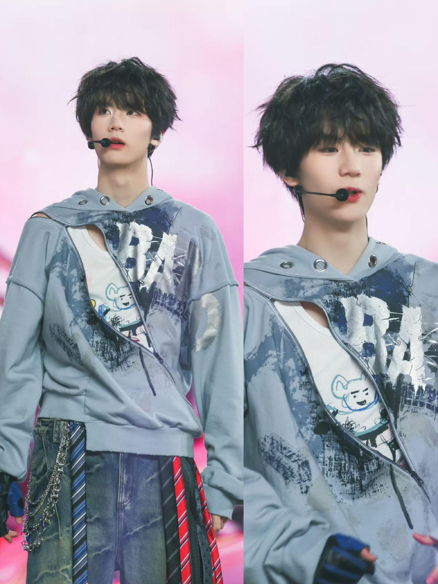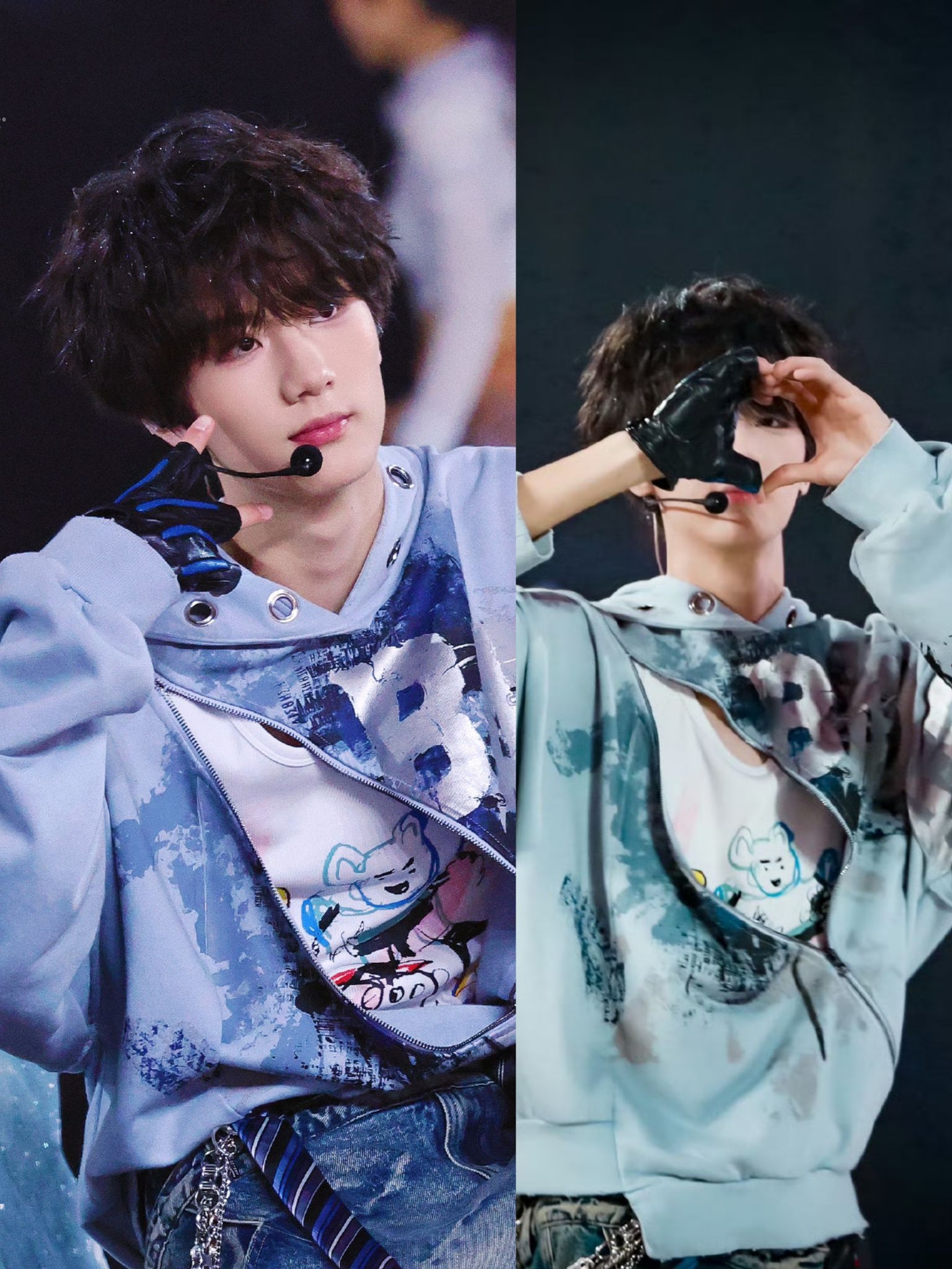 🎉浅蓝涂鸦卫衣+卷毛造型,直接把又乖又野的反差感拉满!镜头里的眼神又清又冷,搭配这件自带破碎感的卫衣,少年的锋芒和温柔直接戳中我心巴!