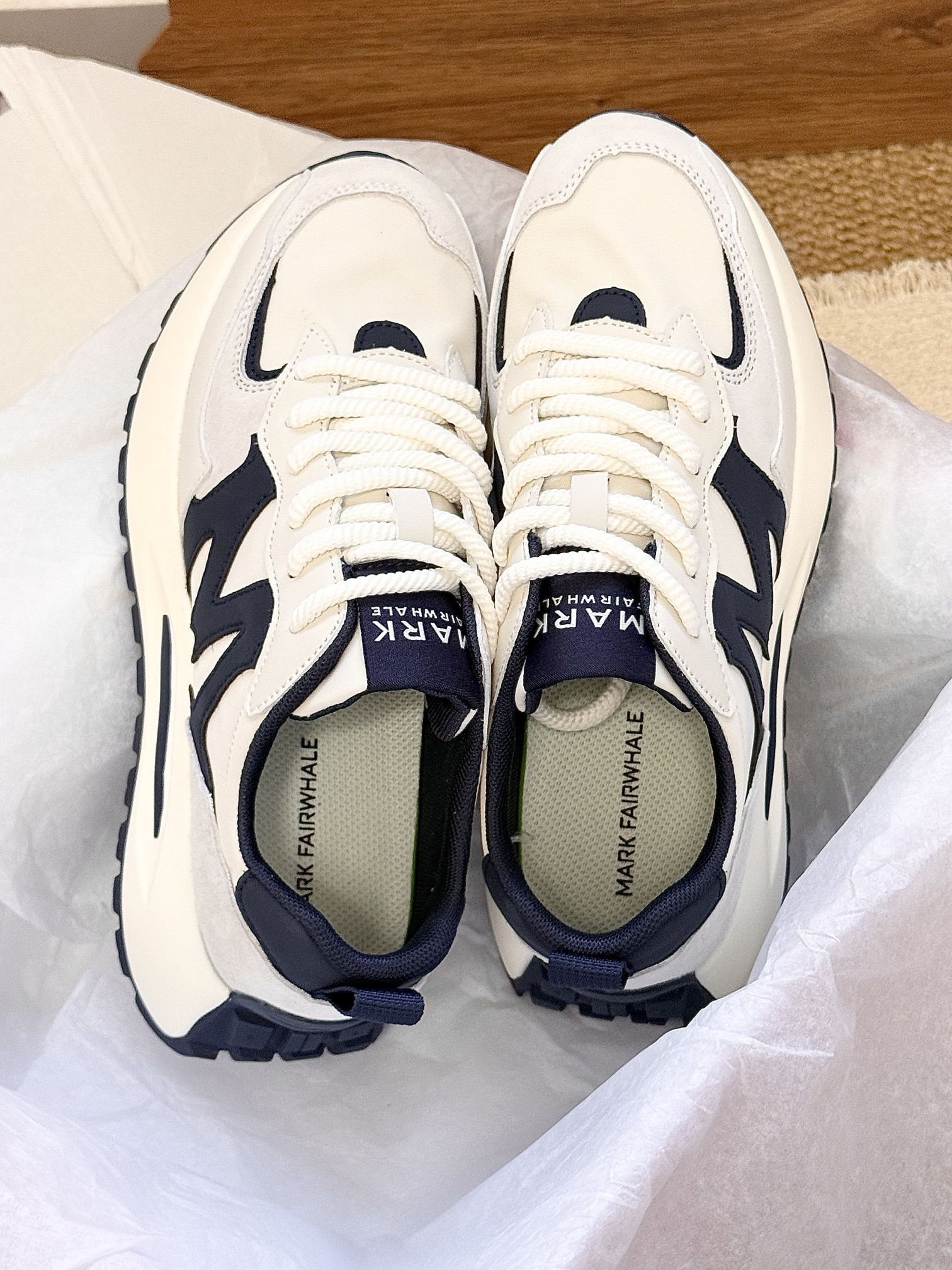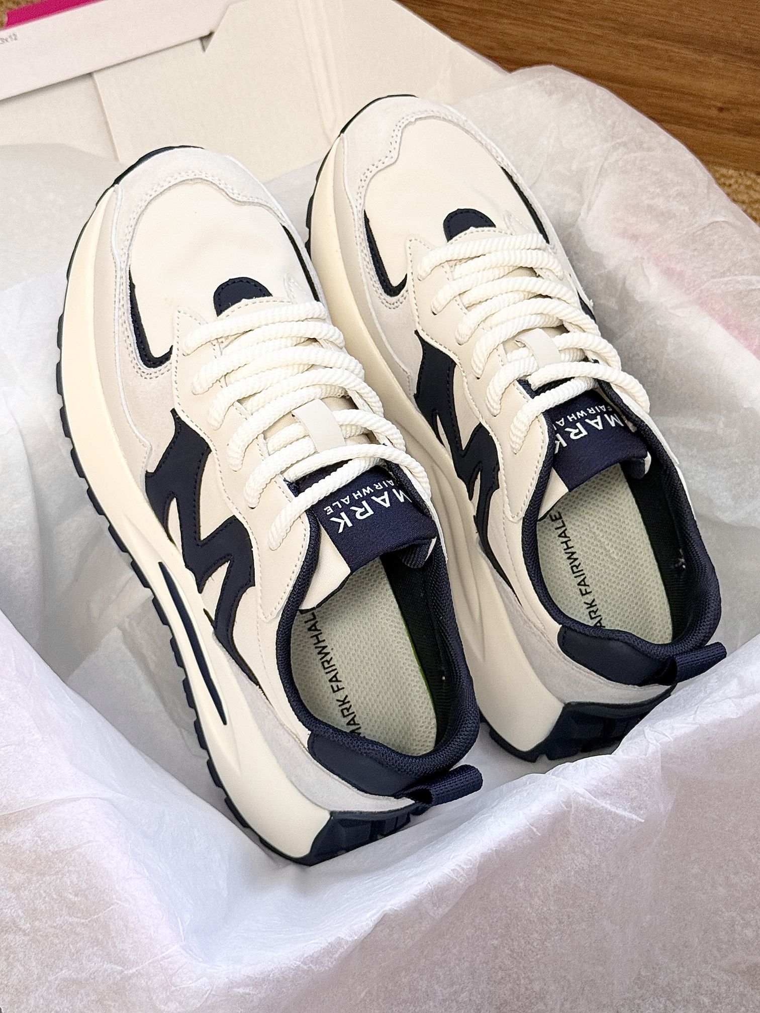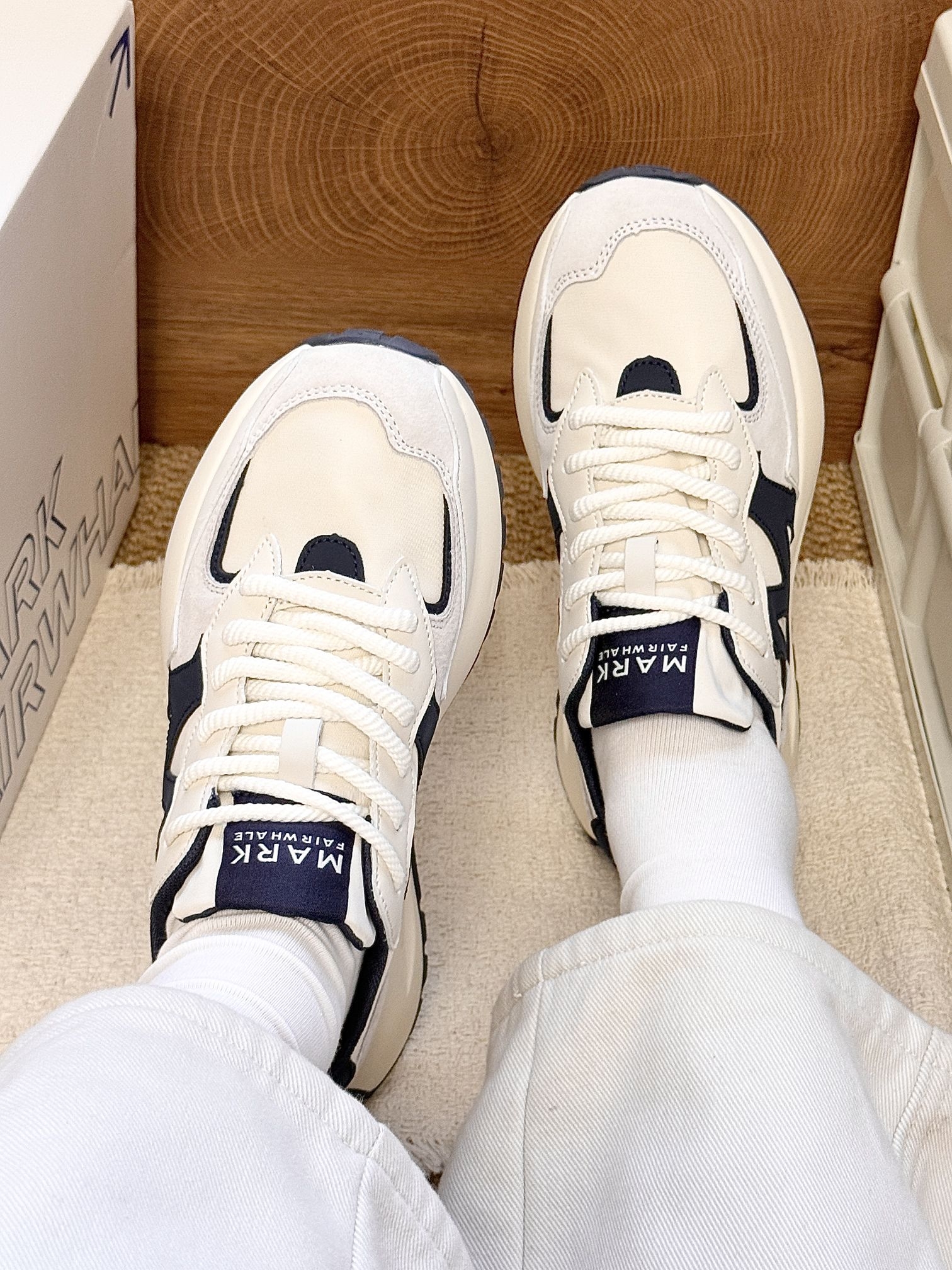 马克华菲这双复古阿甘鞋直接戳中我的心巴😭 奶fufu的米白+藏青撞色,温柔又清爽,自带韩系松弛感,像把春日的海盐汽水穿在了脚上!翻毛皮拼接的质感软乎乎的,鞋型超修饰脚型,对宽脚肉脚友好,上脚秒变漫画腿~鞋底是软乎乎的厚底,悄悄增高3cm,腿长直接拉满!网面材质透气不闷脚,暴走一天都不累,搭配牛仔裤、运动裤、百褶裙都超有少年感,春夏百搭款锁死!