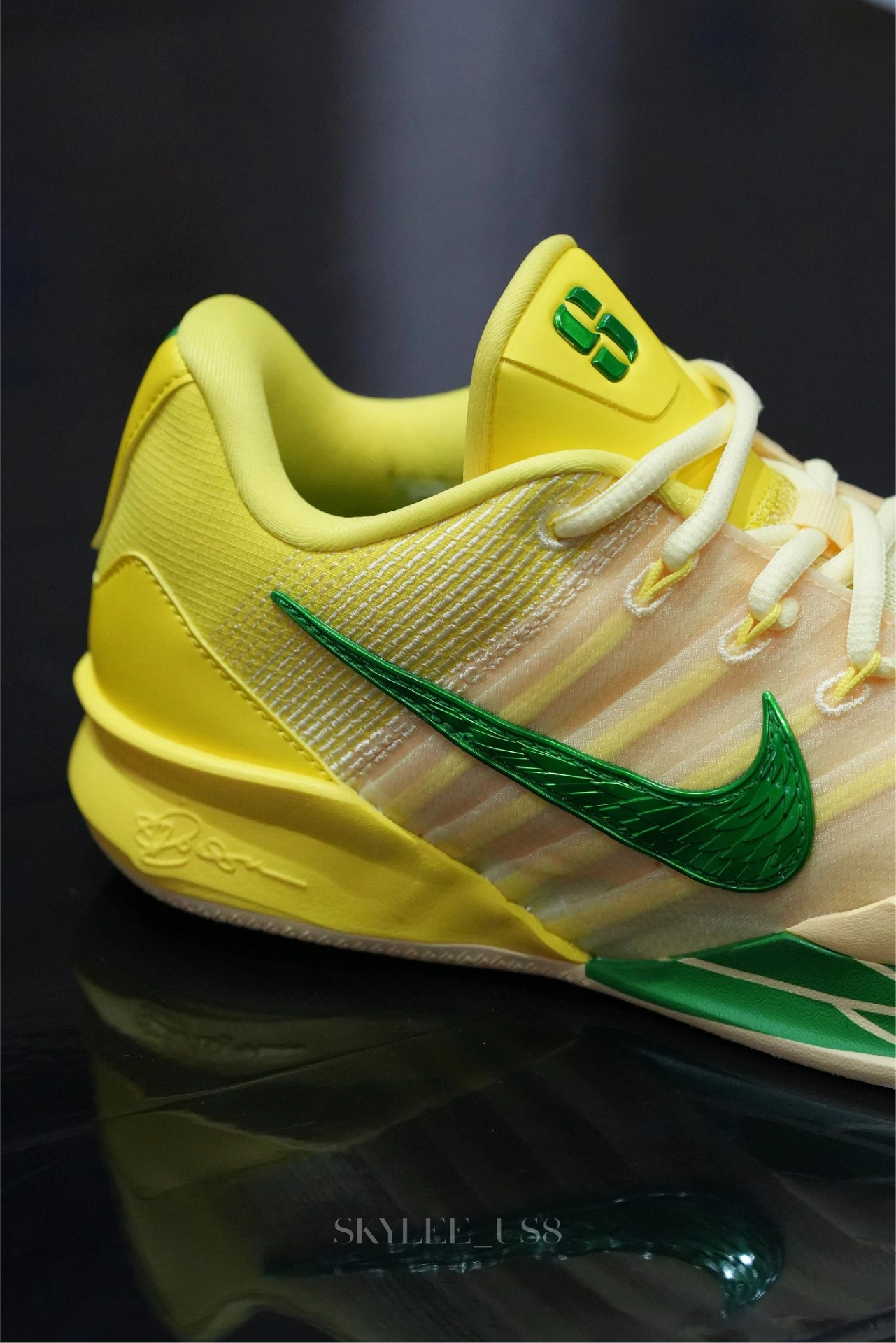 俄勒冈应该是所有玩鞋的老炮们都无法拒绝的配色了吧,目前市售的所有俄勒冈配色里,Sabrina3的细节应该是我看到过比较丰富的了,尤其是Swoosh的质感和防侧翻角上的花纹,很难不冲一双啊🫣