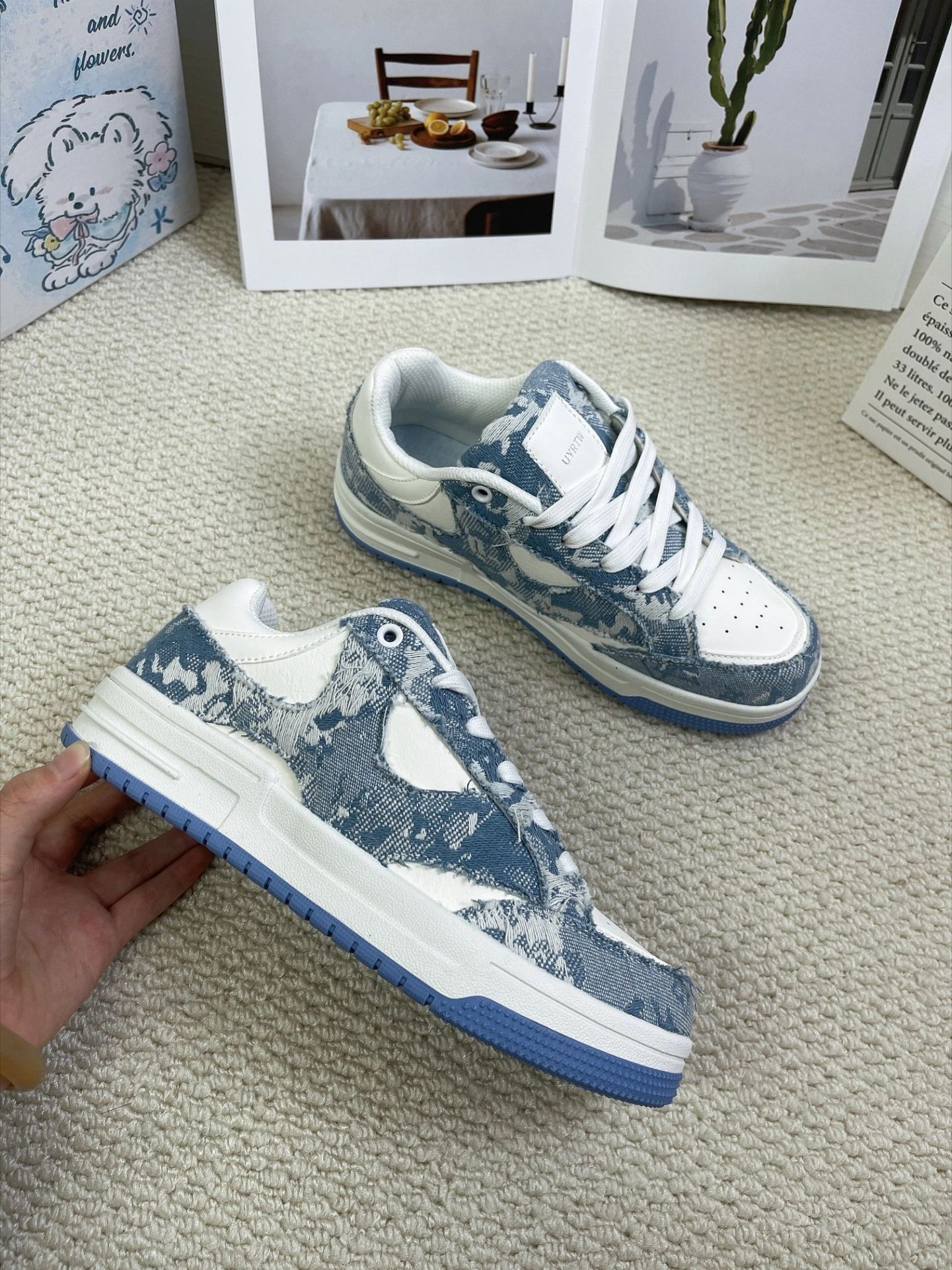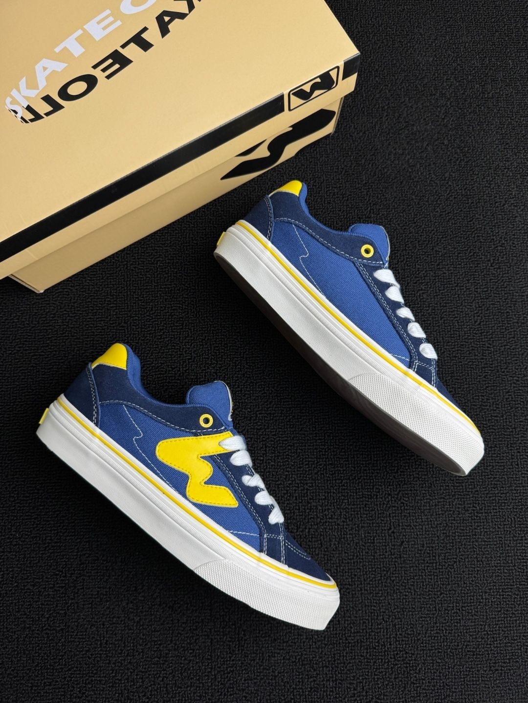 一开始是冲着“蓝黄配色”种草的,拿到手真的忍不住哇塞——颜色又亮又正,鞋带还配了黄白两种,可以随时换风格!侧面的字母设计一点都不呆板,超有美式街头那味儿~穿出门绝对不会撞款! 脚感也很轻,走路完全不板脚,搭配牛仔裤或者工装裤都超级飒🛹