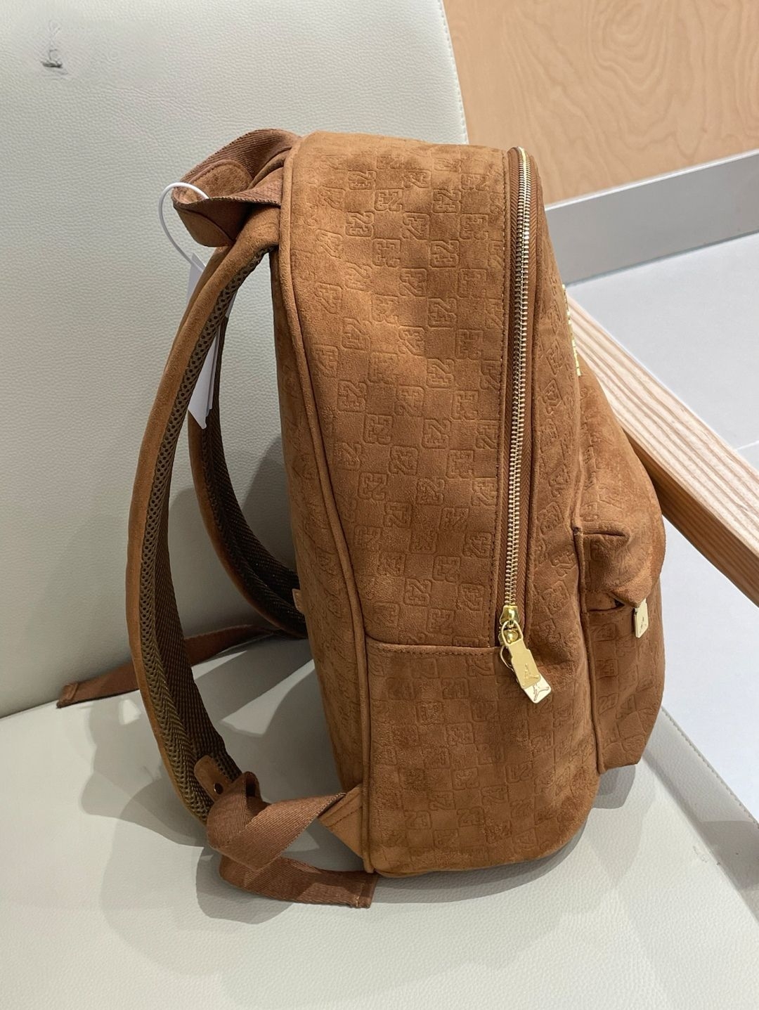 嘻嘻 这复古包看着就很有质感 包包面料摸起来是软乎乎滴 颜色是那种很耐看的焦糖棕 不挑人 上面压满了“23”的暗纹 挺特别滴 肩带和背板是透气的网布 背起来很舒服 容量挺大滴 日常出门用大小也合适 我觉得对通勤党很友好