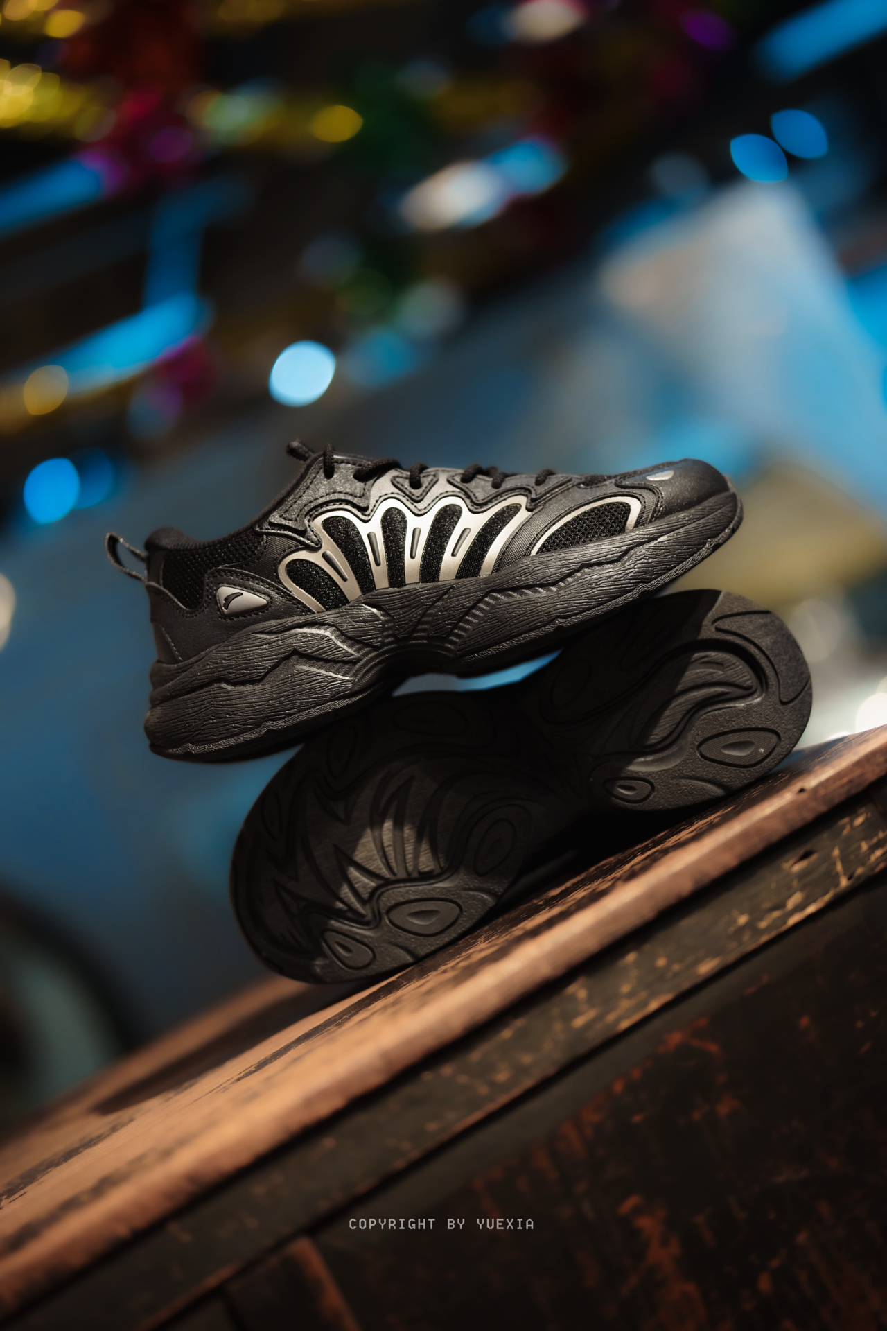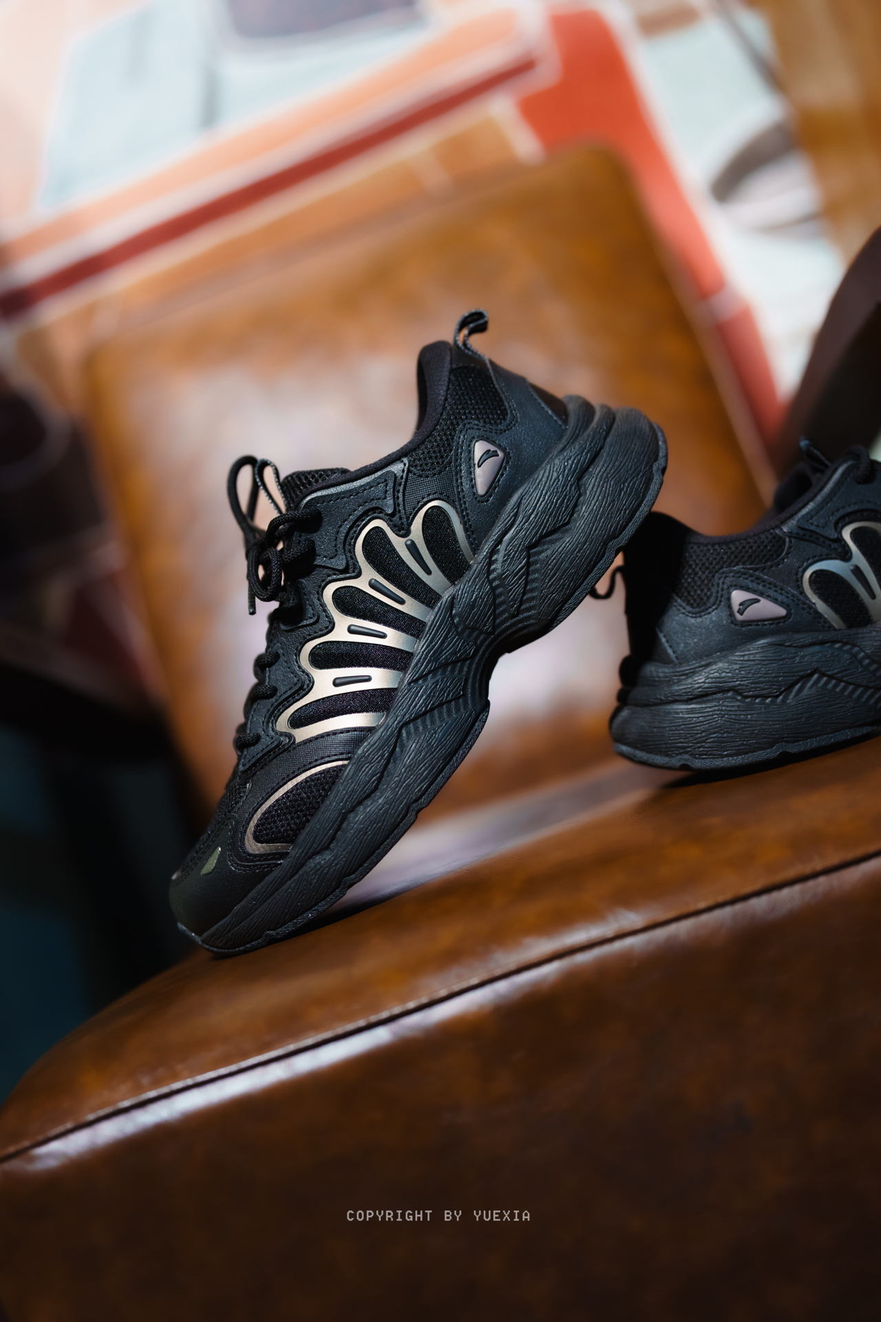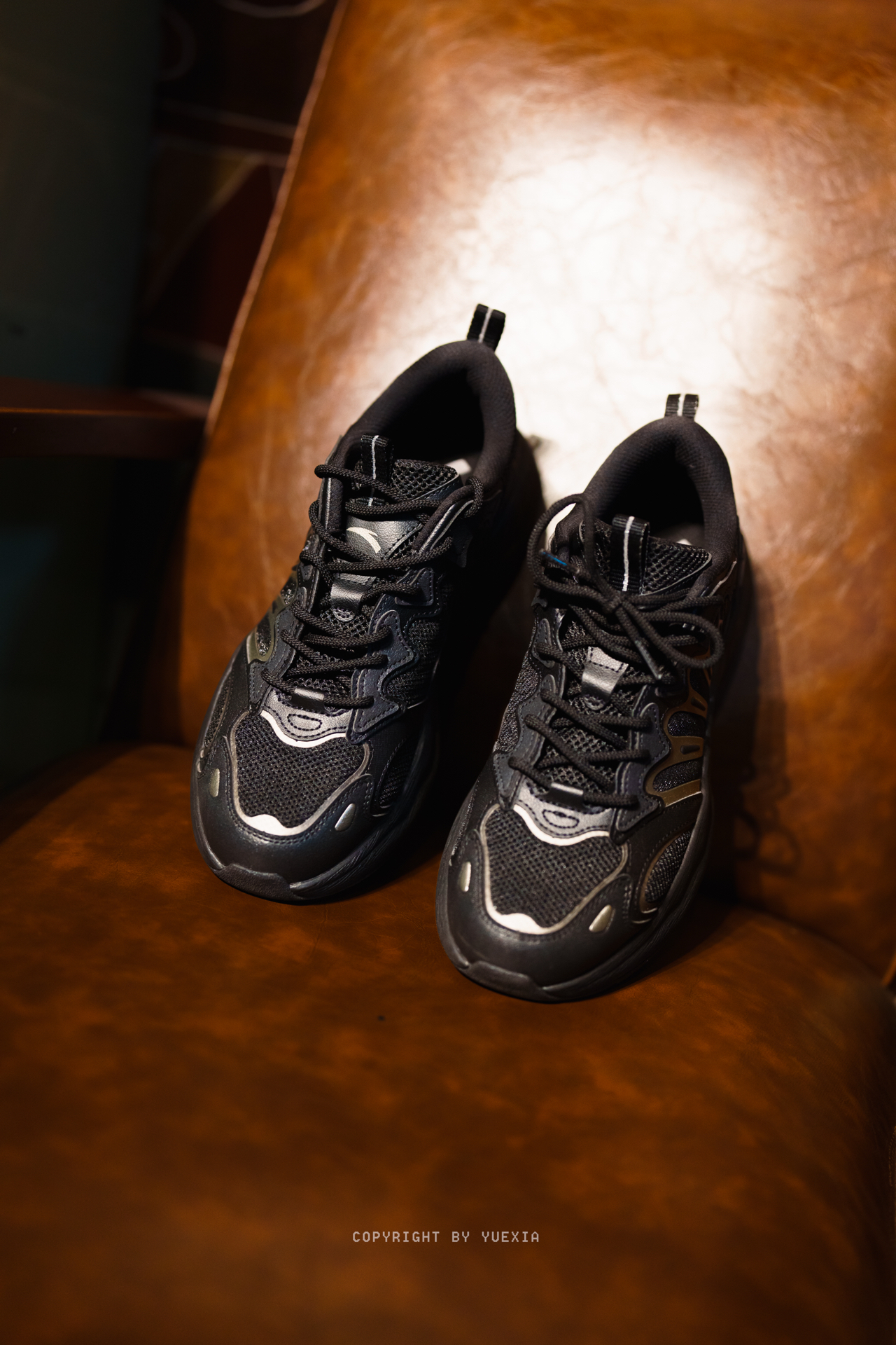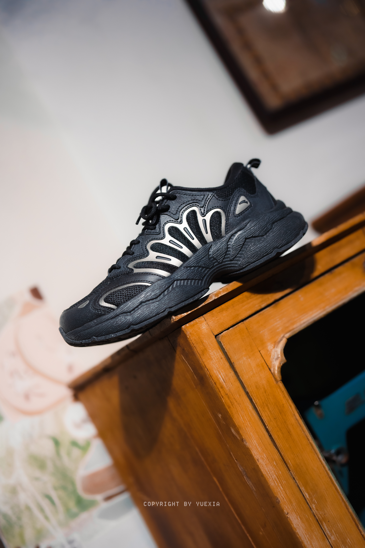 最近发现了一双宝藏老爹鞋,就是这双安踏的陨石3。整体造型复古中带有一点现代感。尤其喜欢侧边的银色线条图案,给整体黑色增加了不少层次感。 整款鞋子低调耐看,还特别耐脏,穿出门基本不用操心打理。上脚之后的脚感也很舒服,鞋底软硬适中,走路时间长了也不会累。日常上班、逛街或者简单运动都能穿,搭配起来也很轻松,一条工装裤或者牛仔裤就能出门。