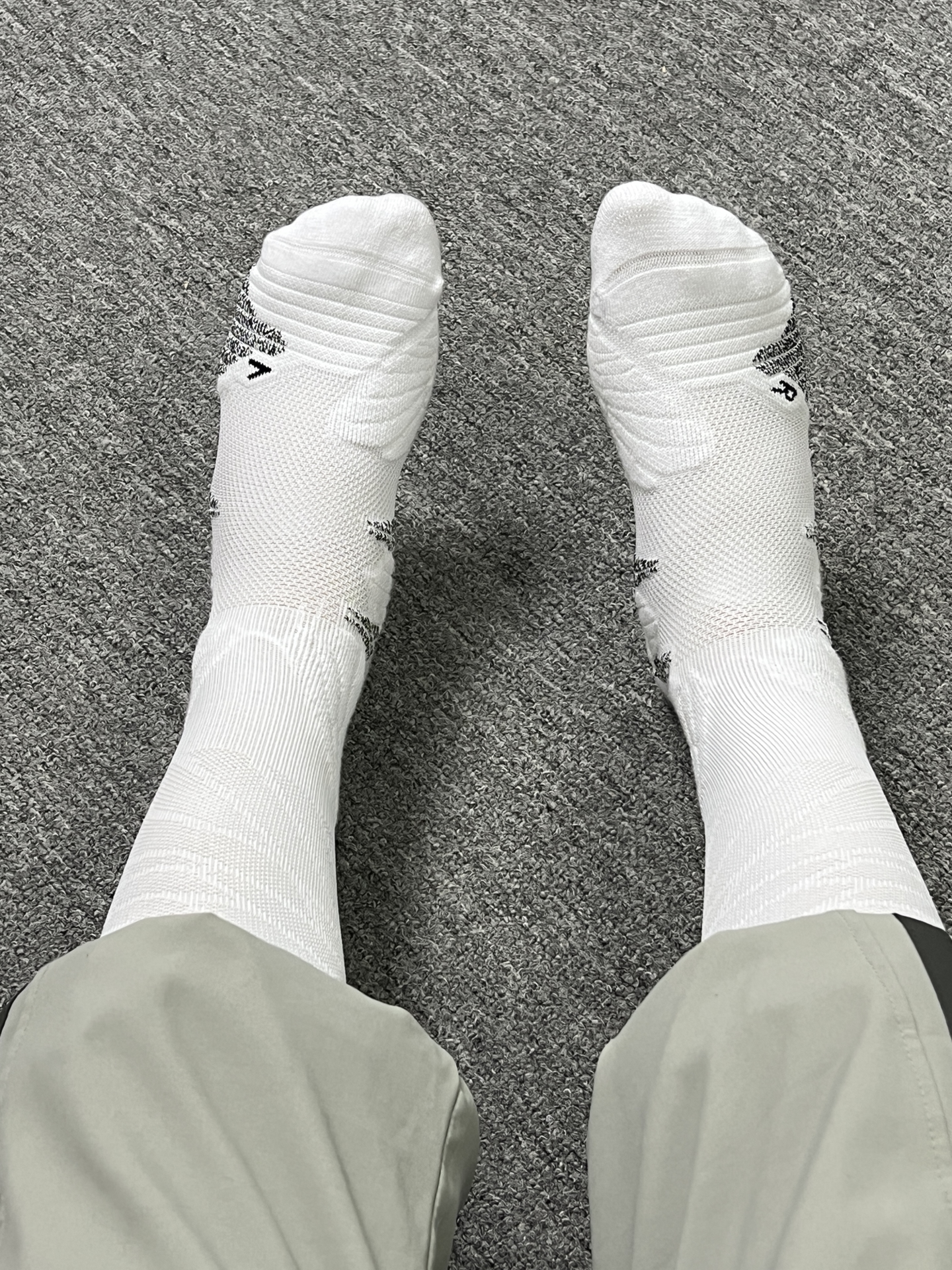 我穿维动蝉翼2.0打球有段时间了,整体很贴合日常实战。 我觉得它轻薄不闷脚,夏天长时间打羽毛球、篮球也不会捂汗,透气做得很到位。 我很喜欢毛巾底的质感,脚底防滑稳,急停变向脚不打滑。 我穿它跑动多了也不磨脚趾和后跟,耐磨度在线。 高筒包裹刚好护住脚踝,不勒腿,我日常打球穿很舒服,性价比挺高,是我常穿的实战袜。 @App