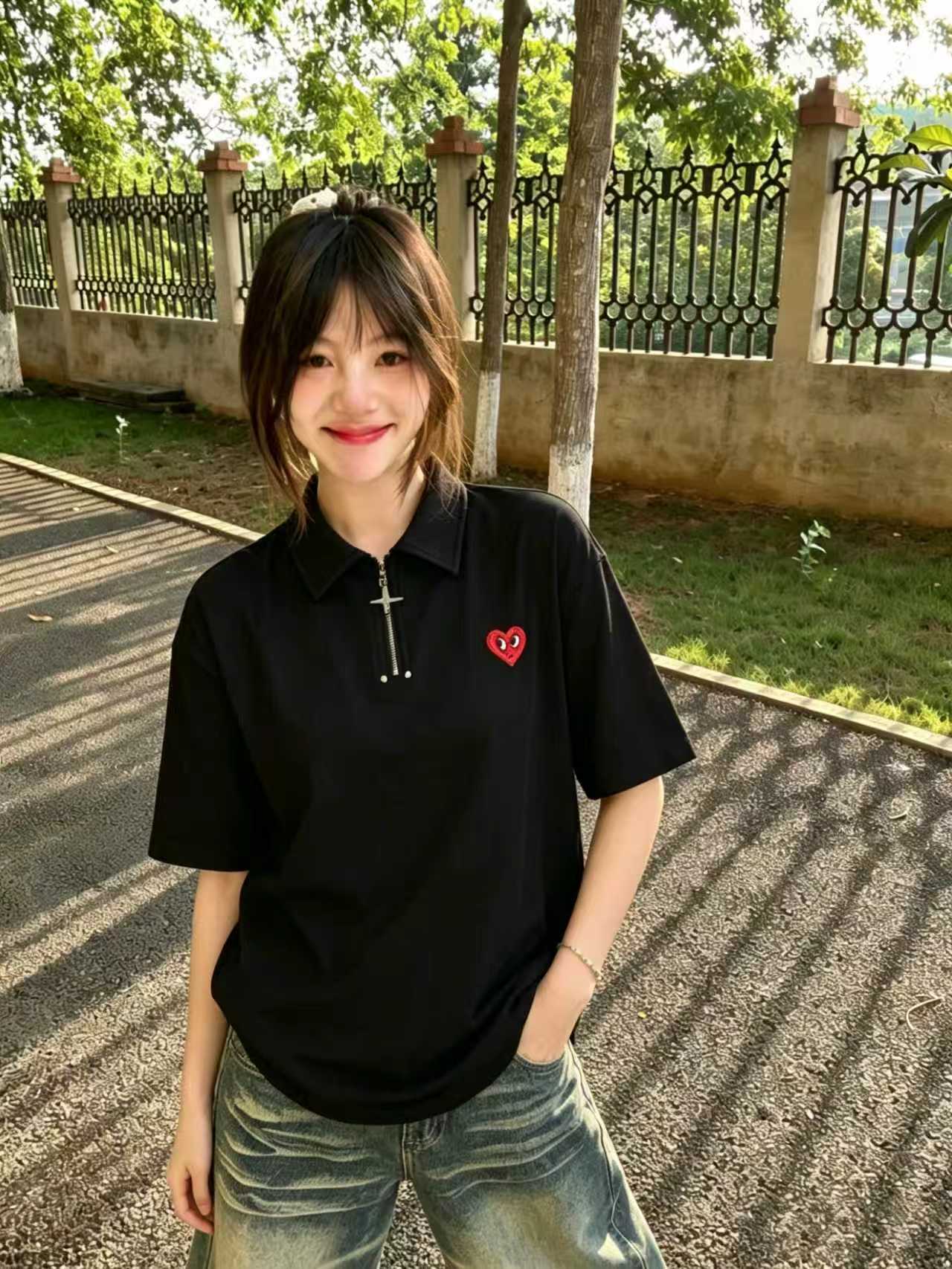 本篇笔记关联了查尔斯桃心 美式半开拉链学院风少年感爱心刺绣翻领短袖POLO衫 JTCH253639 黑等商品,为用户提供真实的使用体验和购买参考。