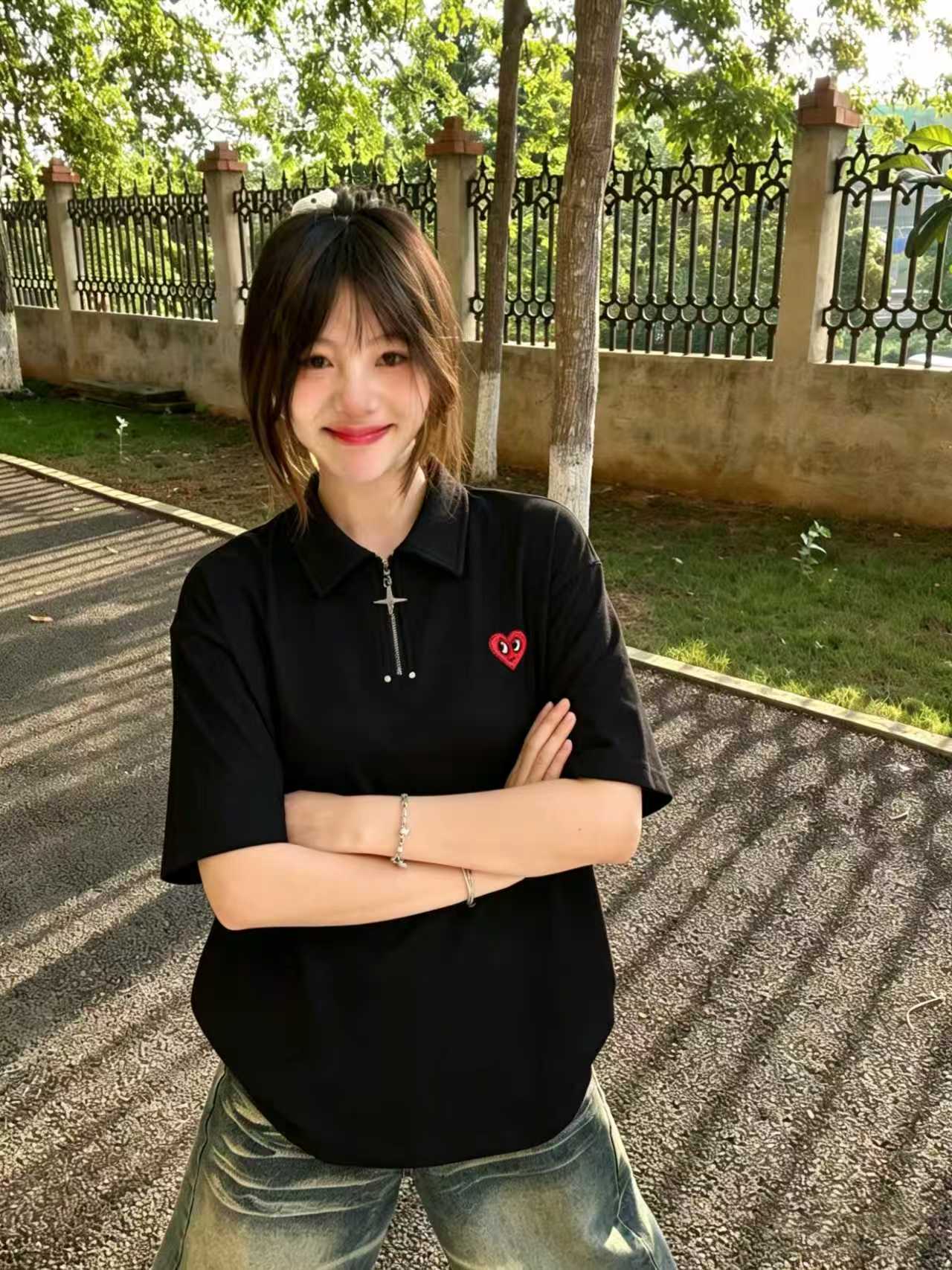 T 恤质感超棒,简约大气又显气质。纽扣设计精致耐看,领口挺括有型,比普通 T 恤更有细节感。面料柔软亲肤,透气性好,夏天穿清爽不闷汗。版型合身不紧绷,显瘦又百搭,日常通勤休闲都合适。做工精细,走线工整,整体质感在线,性价比很高,十分推荐。