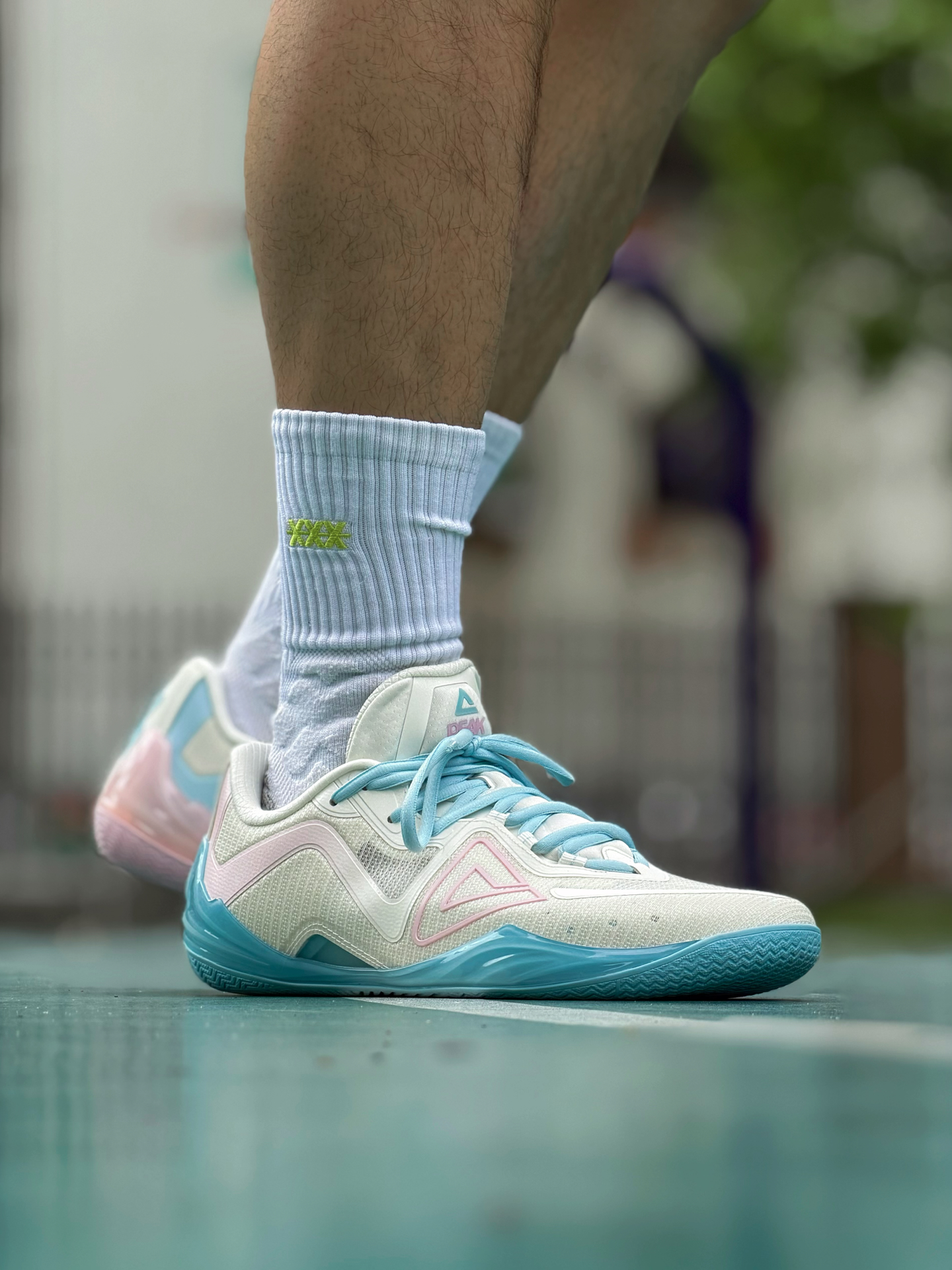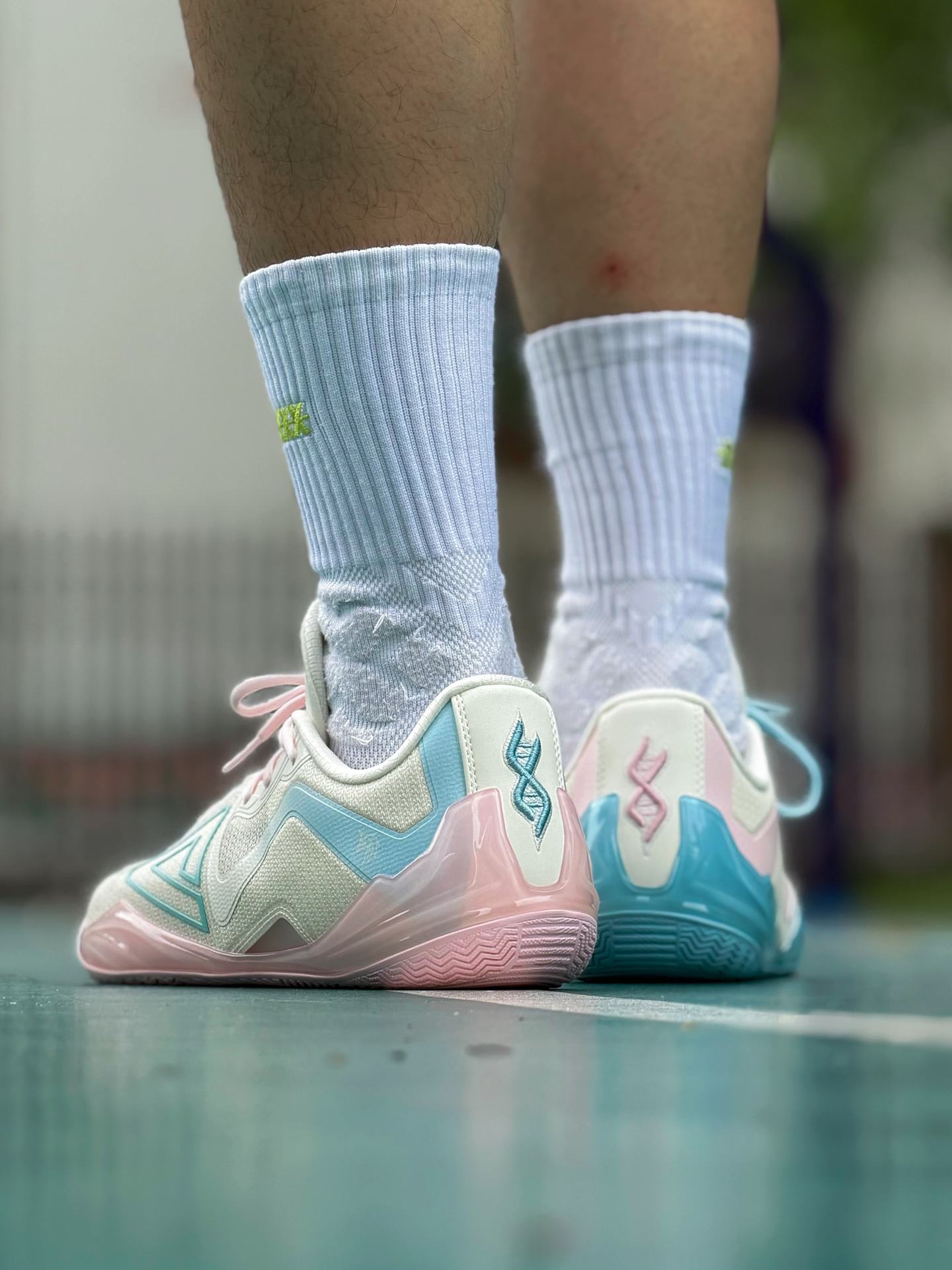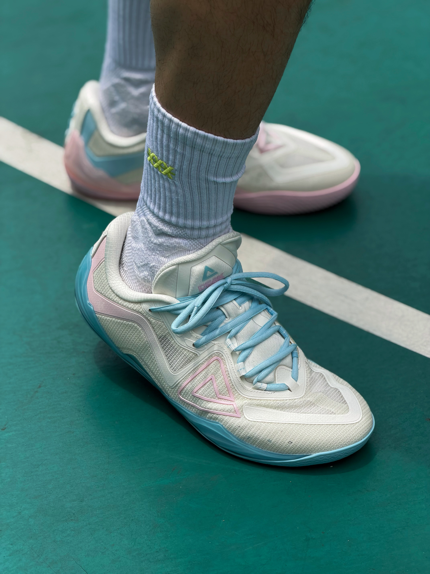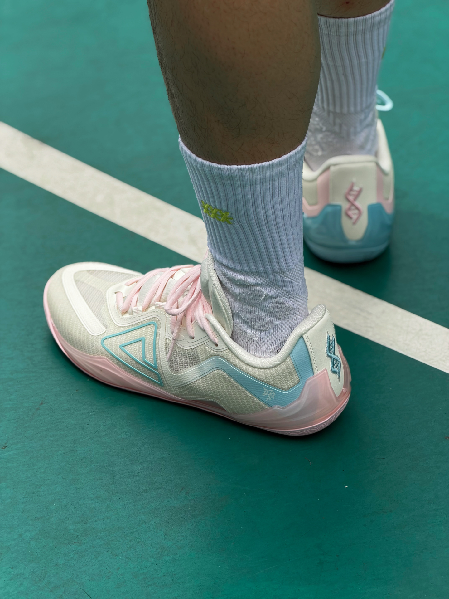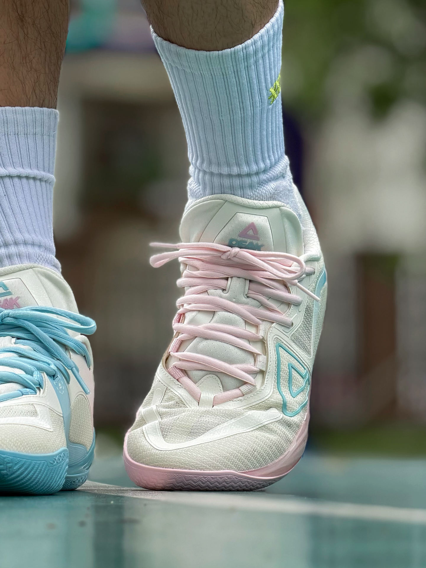 匹克无双有一双新配色 马卡龙氛围 鸳鸯淡粉淡蓝撞色清新耐看 薄底设计 兼顾贴地感与回弹 鞋仓贴合无割裂感 脚感顺滑 跑动也很灵活 适合小体重快轻灵后卫 尺码偏大 建议选小一码