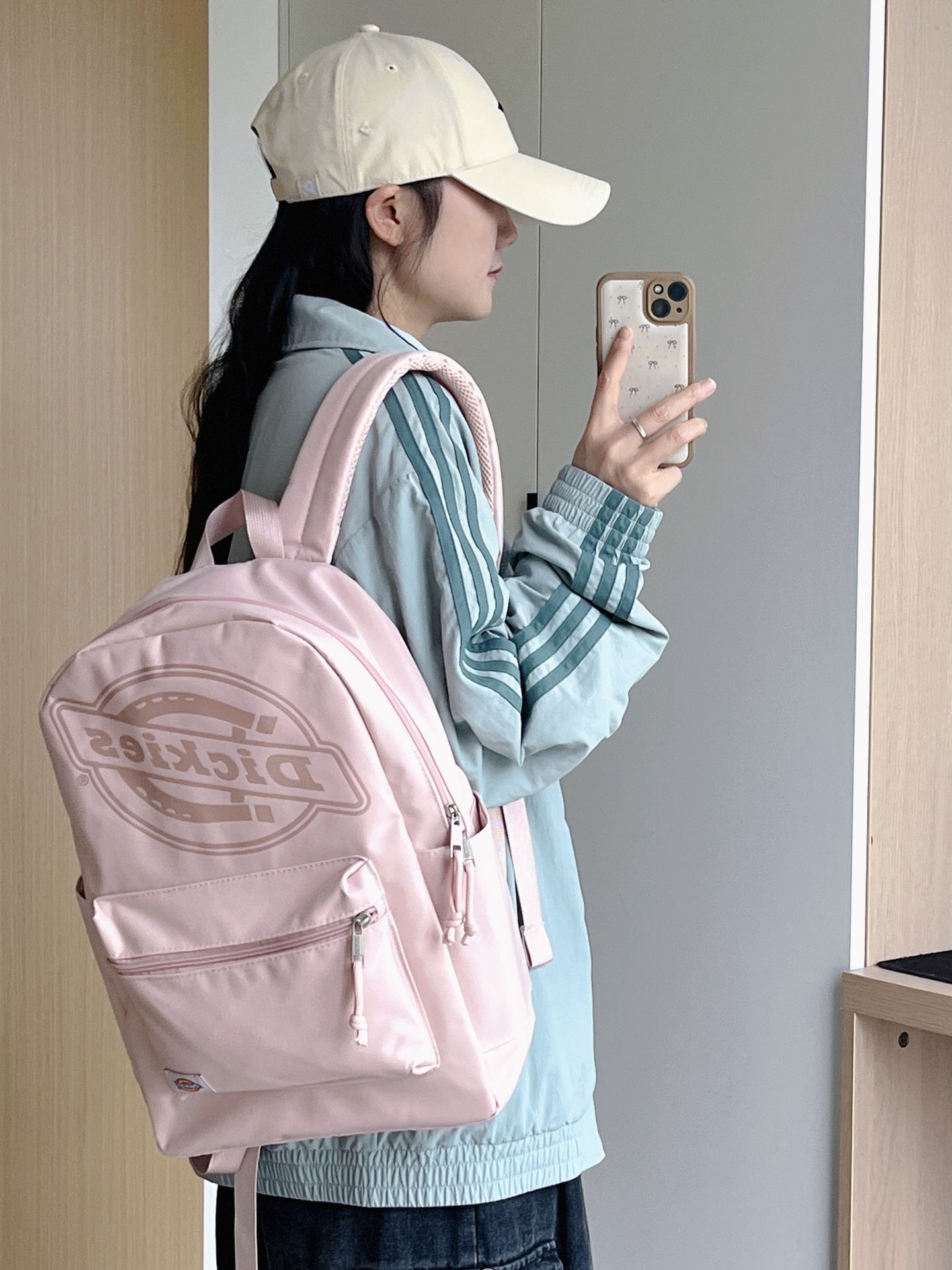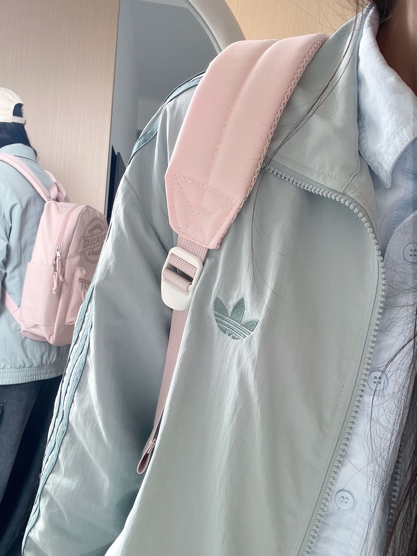 粉嘟嘟🎀的双肩包,早八人通勤搭子🥳三叶草的绿色夹克好春天吖🌱 叠穿蓝色衬衣+牛仔工装裤 适配度蛮高的🤗 越来越喜欢背书包出门啦,因为实用又能搭配✌🏻️ Dickies的双肩包粉嘟嘟的好可爱哟 既能当书包也能当旅游包~ 这质感杠杠滴👍🏻 160小个子的我背它也不压身高 大小刚刚好😎 这容量放笔记本电脑💻绰绰有余,侧边还可以放水杯雨伞☂️ 🧐🧐 搭配我今天这套OOTD 就hin有活力感啦~~ 迫...