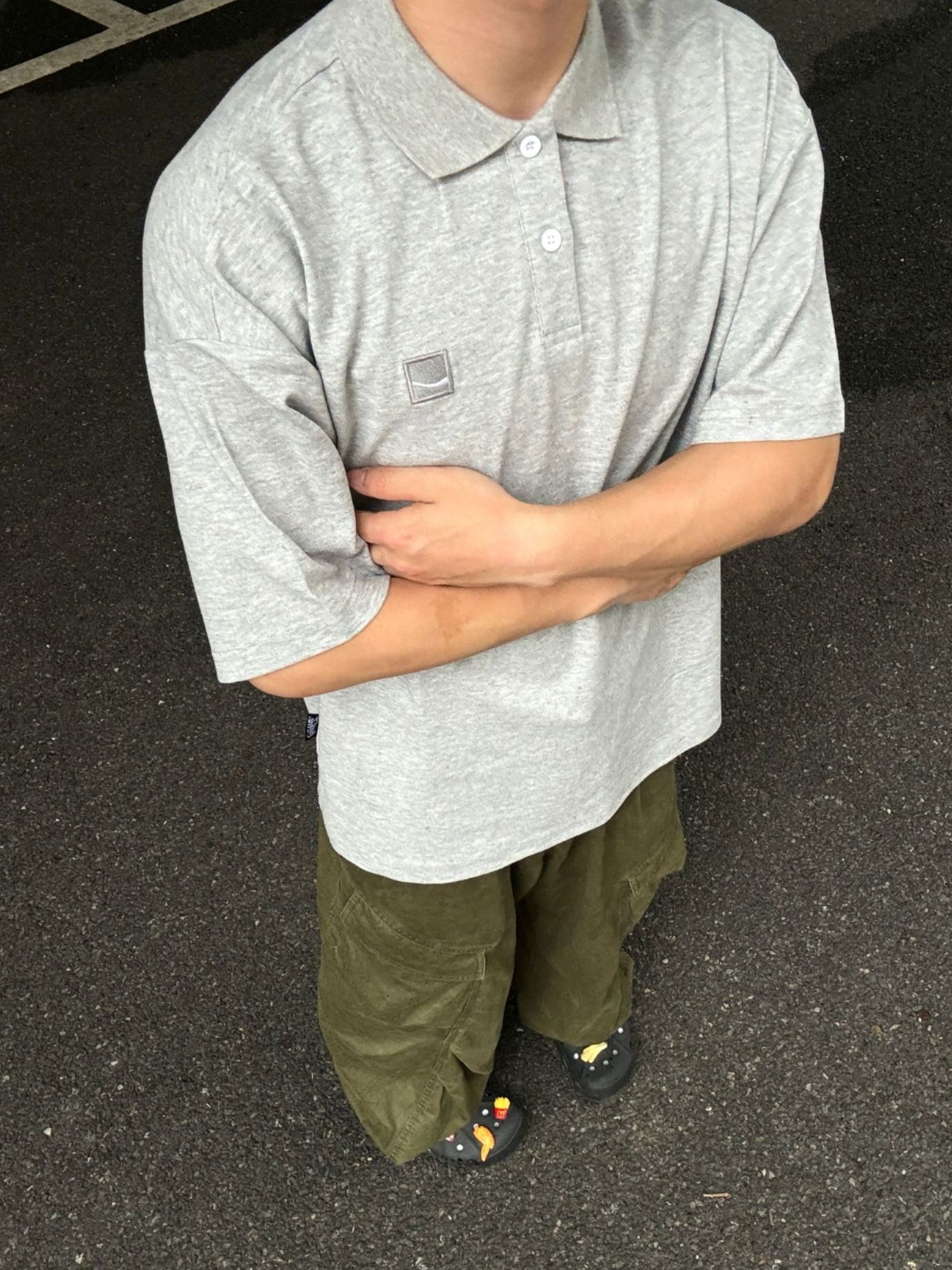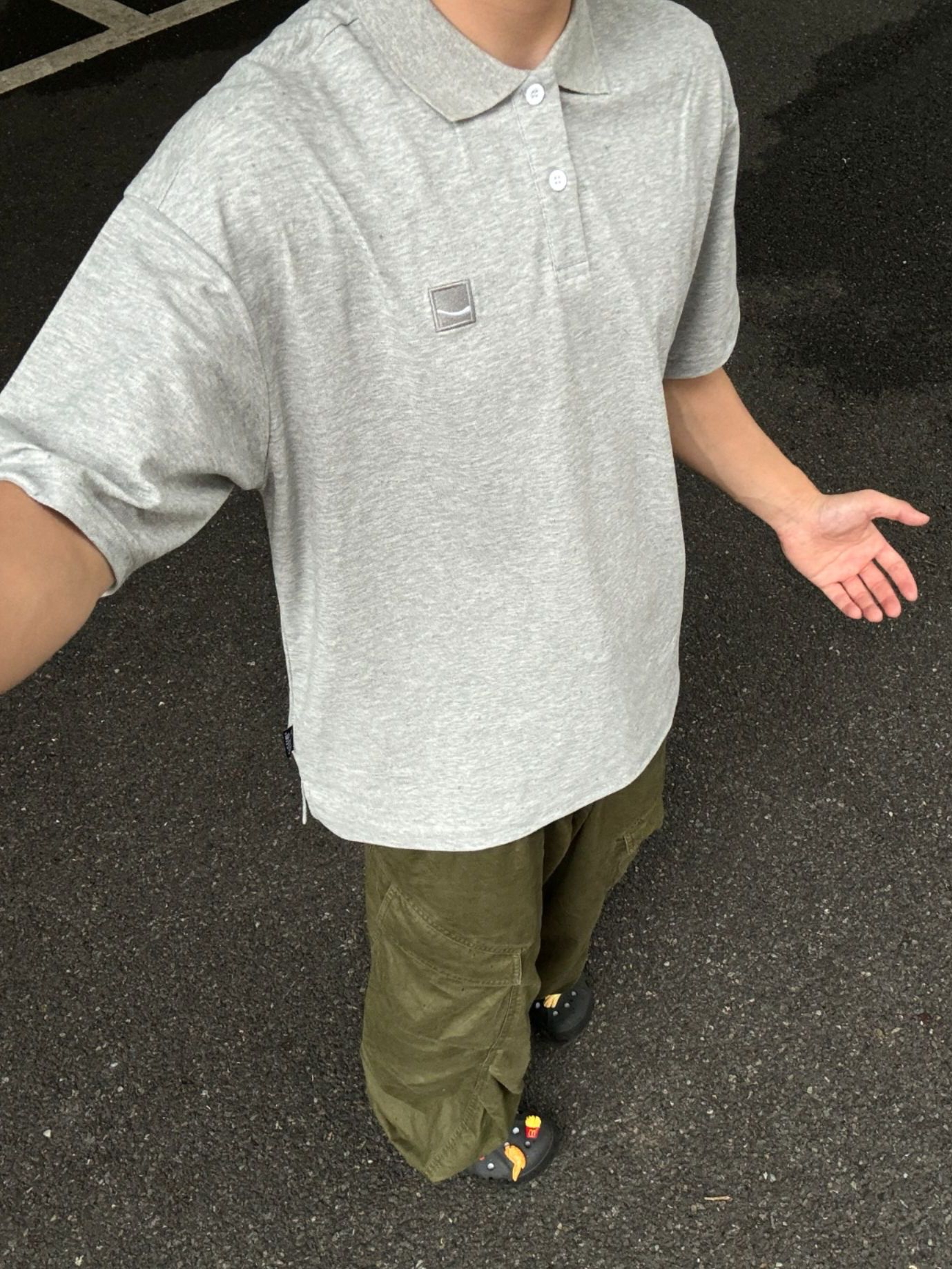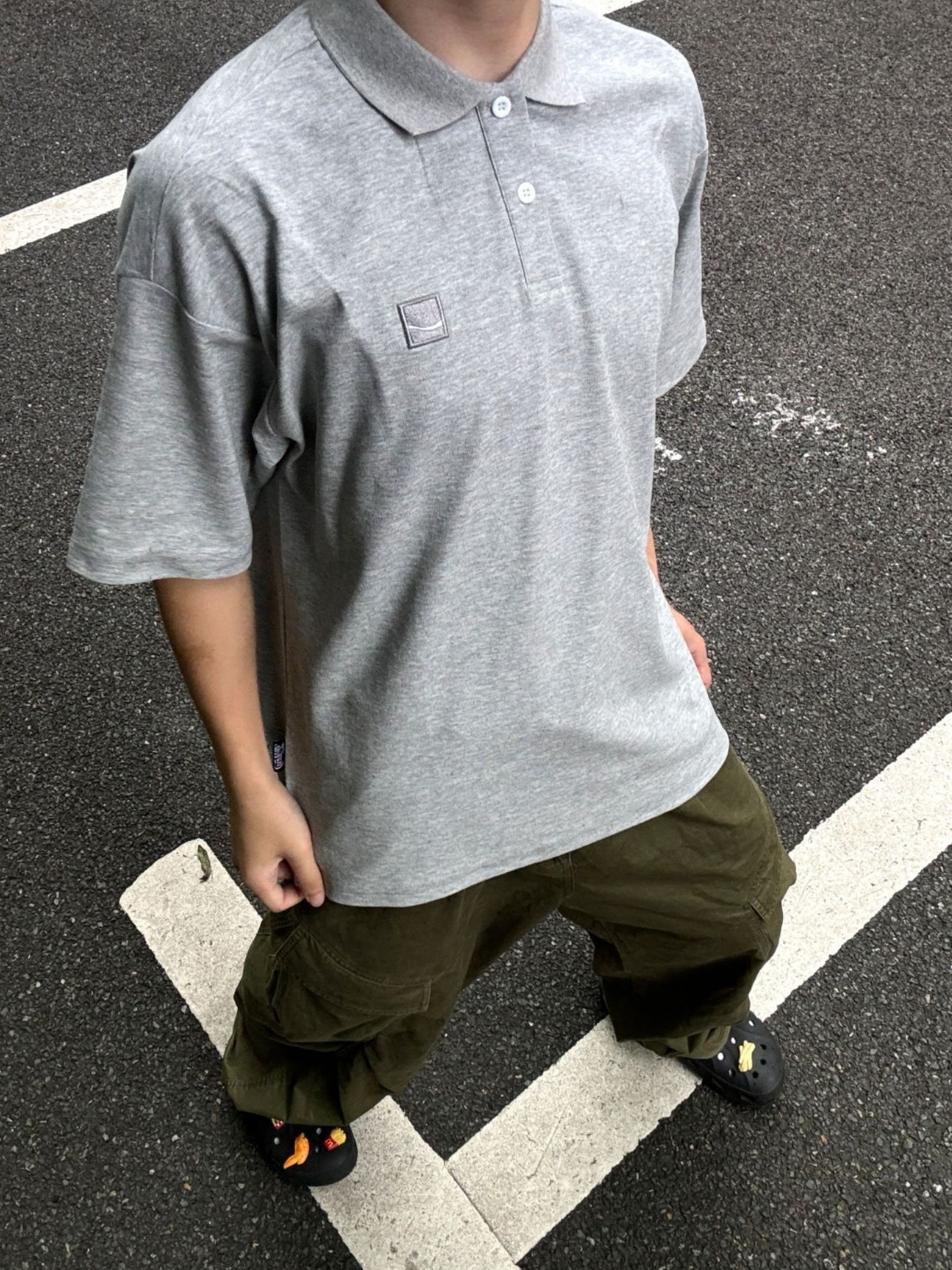 夏天真的太爱这种不费力的松弛感穿搭了 浅灰色POLO衫+军绿工装裤 简单的低饱和配色,干净又耐看 oversize的版型对身材包容度超高 不用刻意凹造型,走在街头随便拍都很有味道 是属于男生的清爽日系感没错了✨