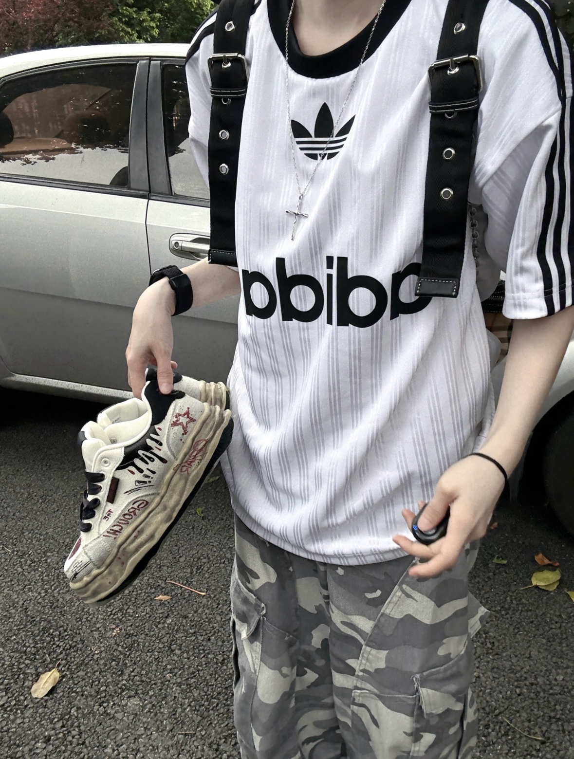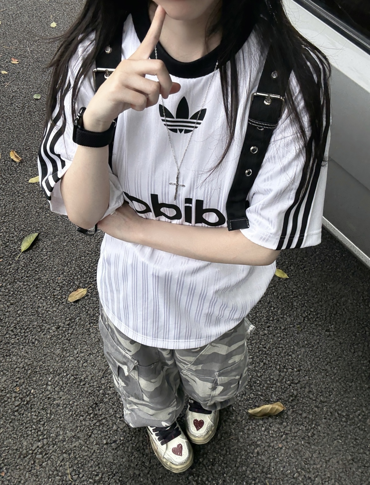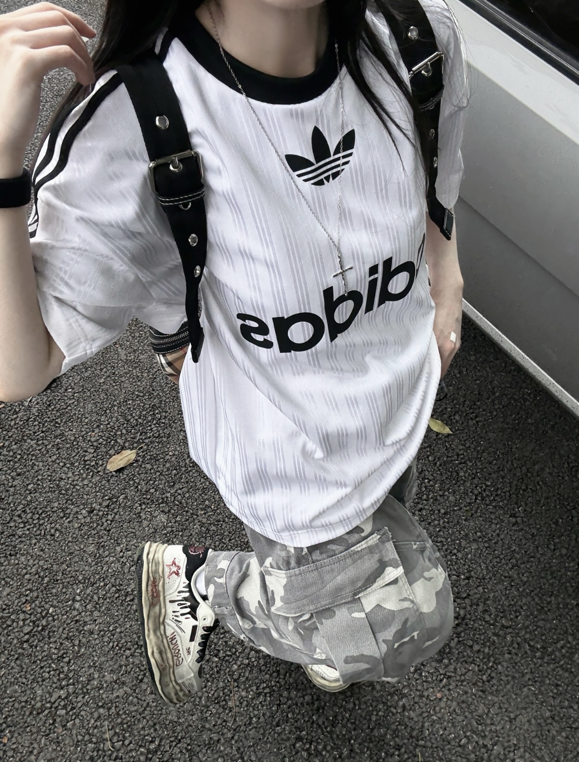 黑白撞色三叶草T真的是美式复古的神! 自带肌理感的面料+经典三条杠设计,搭配灰迷彩工装裤,松弛又有街头那味儿~ 十字架项链+机能风肩带是点睛之笔,再踩上爱心做旧板鞋,细节感直接拉满! 这种不用费脑子的懒人穿搭,日常出街、探店都巨出片,拽姐氛围拿捏得死死的! #三叶草穿搭 #美式复古风 #迷彩工装裤 #街头风穿搭 #OOTD #黑白撞色穿搭 #拽姐穿搭 #日常出街穿搭 #韩系穿搭 #运动风穿搭