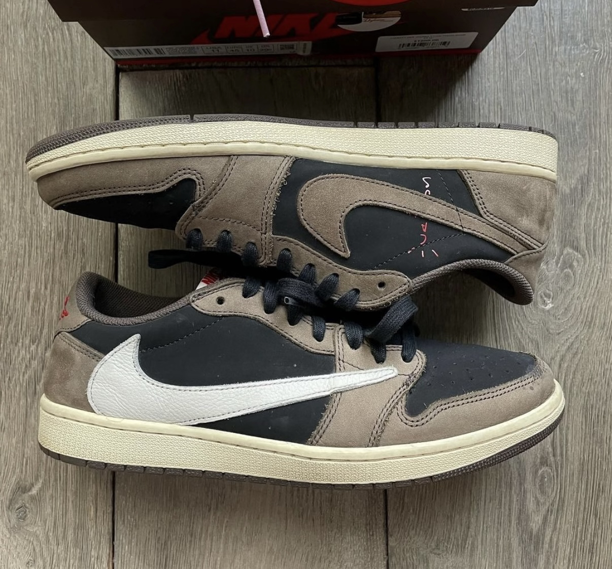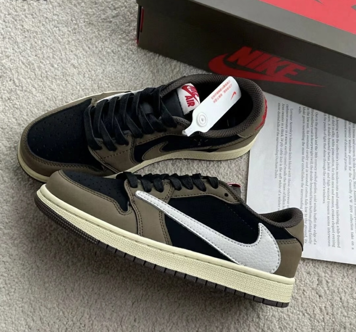 本篇笔记关联了Air Jordan 1 板鞋 运动休闲鞋 复古潮流支撑合成革 低帮/Travis Scott联名/倒钩1.0/深棕等商品,为用户提供真实的使用体验和购买参考。
