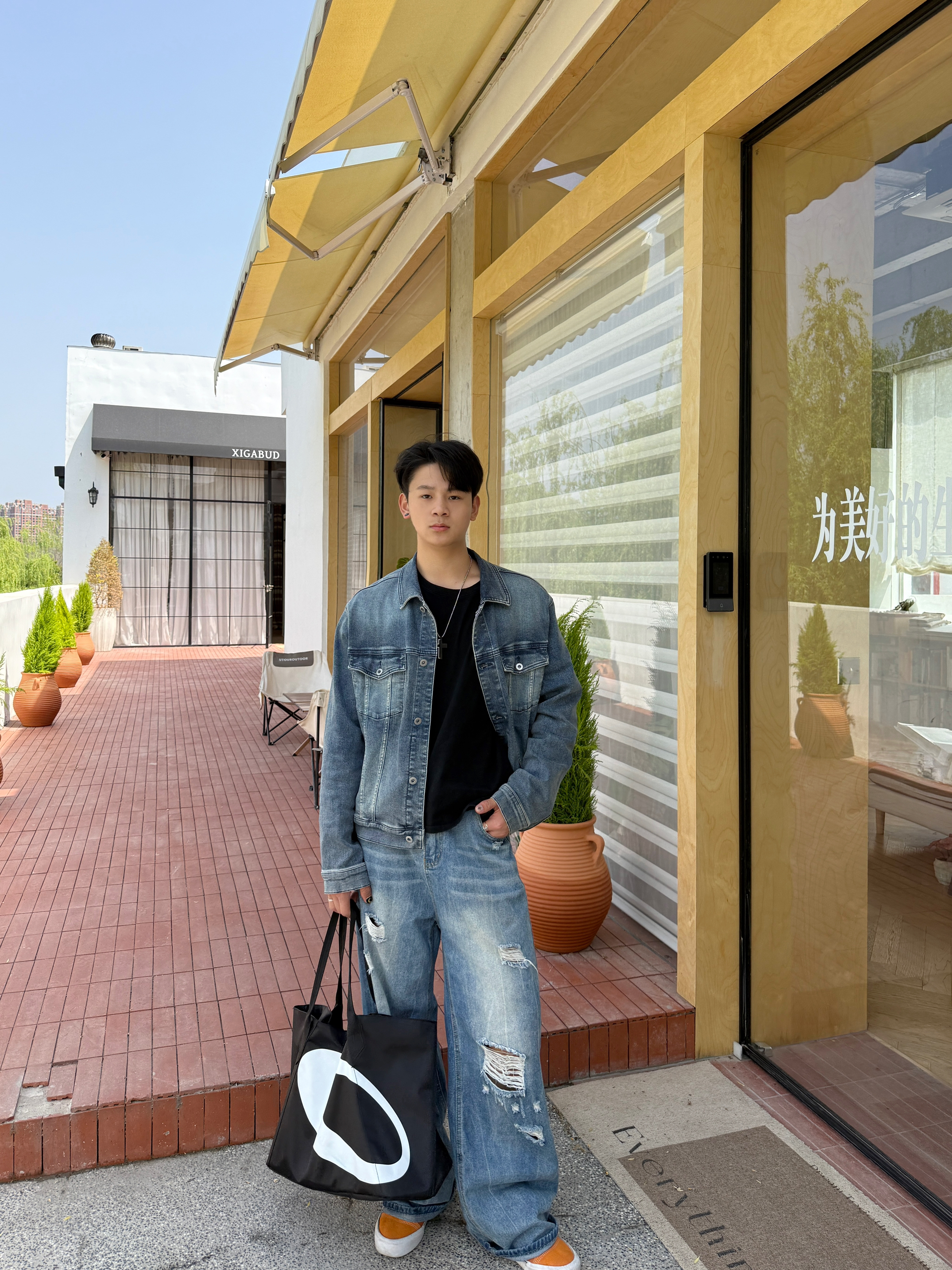 无脑穿搭牛仔外套➕牛仔裤,拿捏潮春 上衣我选择一件渐变复古牛仔外套 短款长袖的版型,上身显高还有型 裤子我搭配一条破洞牛仔裤 鞋子选择橙色板鞋,这样整体也不会很单调 你的春天会穿一身牛仔吗?
