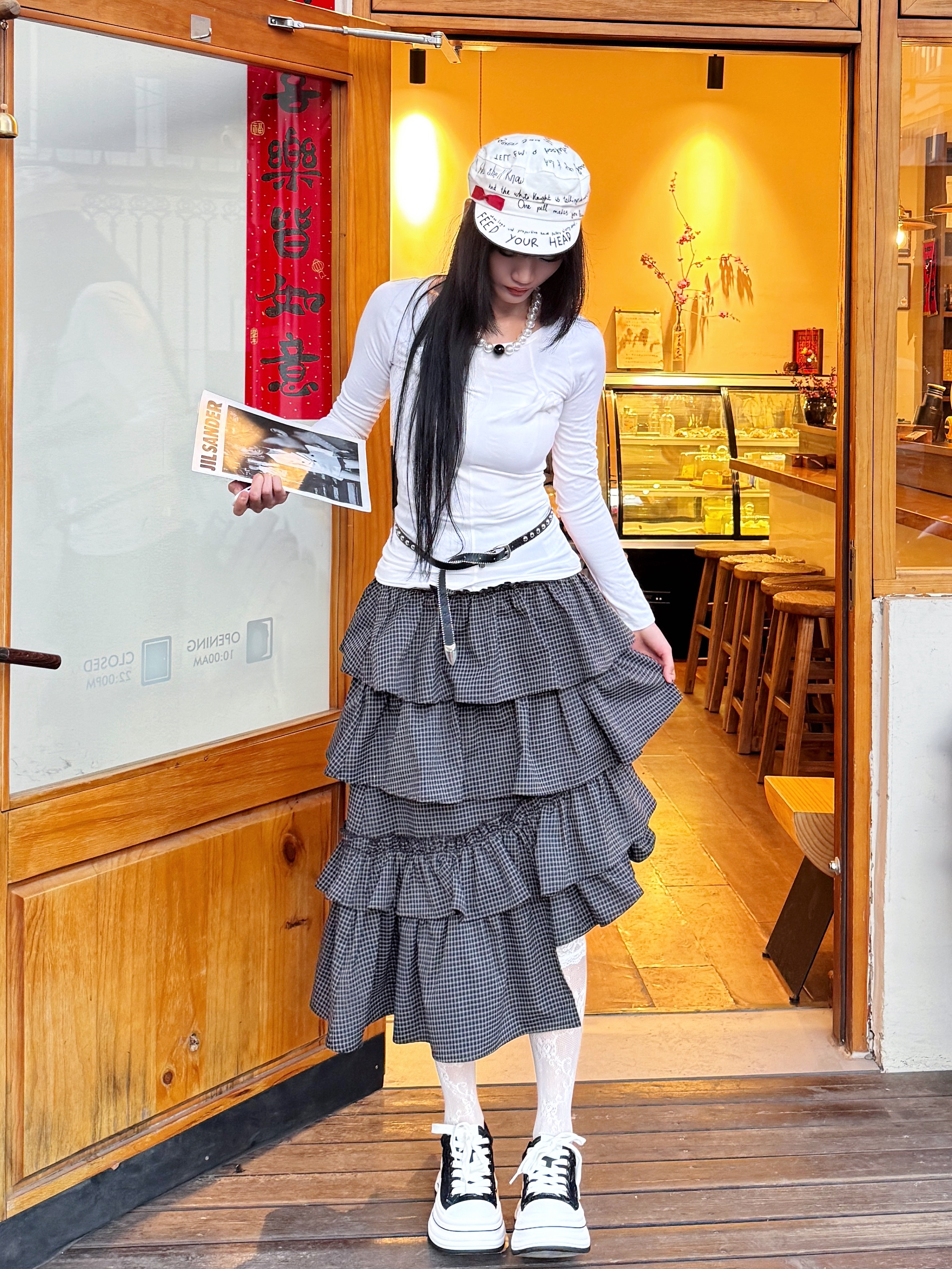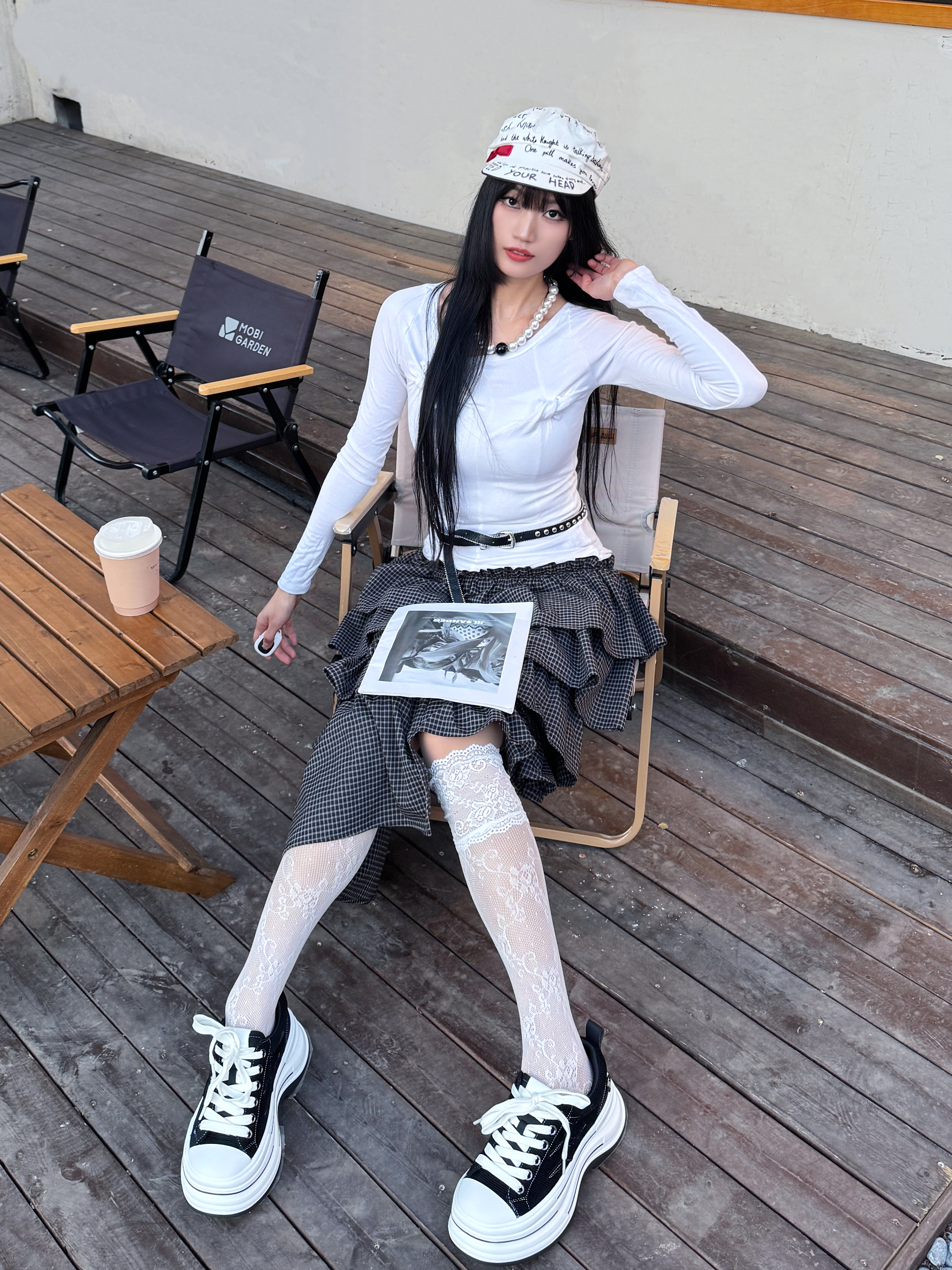 170 98的高个子女孩穿什么呢?漂亮mm总有一双黑色的增高帆布鞋,厚底的设计就很显腿长喔,明星同款,感觉搭配裙子裤子都可~ 🧾今日份穿搭分享: 白色平顶帽➕白色修身上衣➕黑色不规则蛋糕裙➕离火系列黑色帆布鞋=春日少女系黑白穿搭ootd。