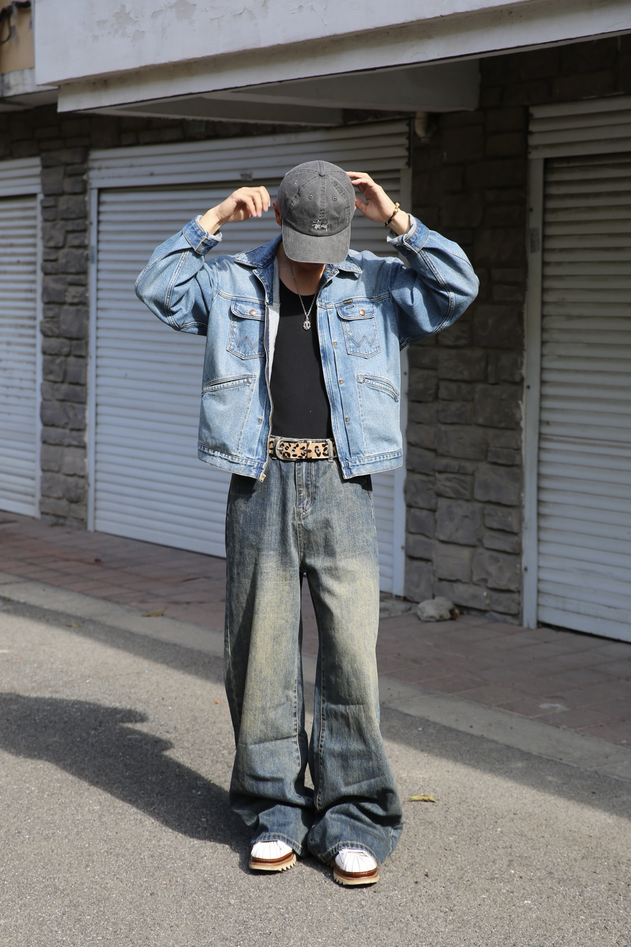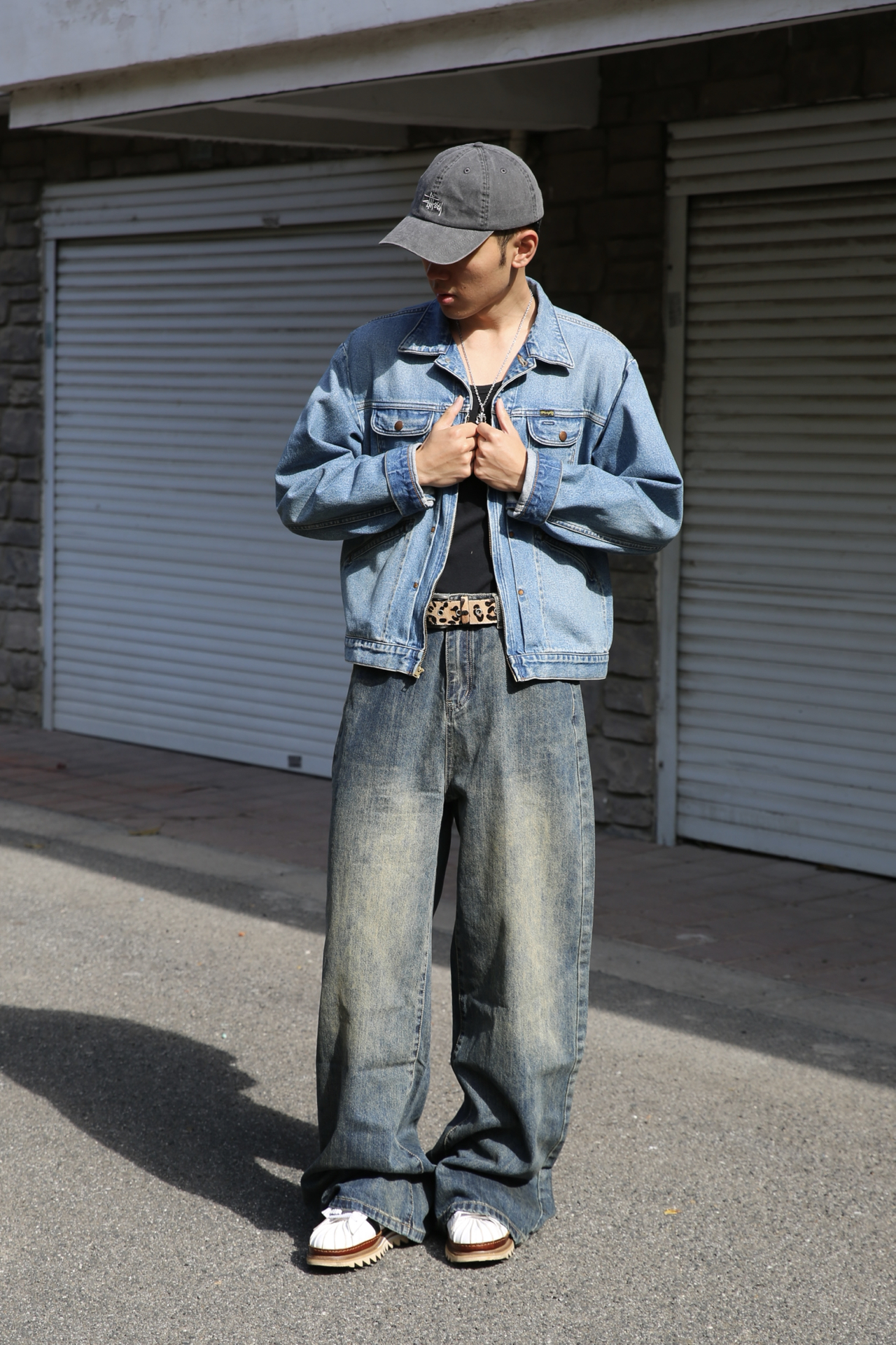 是时候从衣柜翻出牛仔了! 春天一身牛仔还是蛮合适的 黑色背心套上经典的拉链夹克 硬朗的感觉,同时又收肉突显身材 下身来一条现蛮流行的拖地牛仔裤 宽松的baggy款式可以很好遮盖腿形 盖住鞋身的同时又显腿长 这样一身上街去,酷酷的!