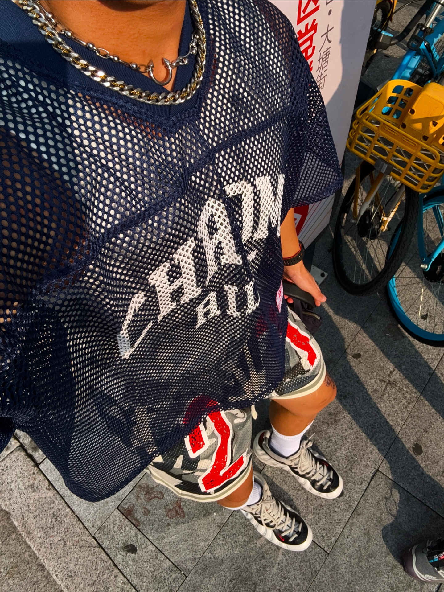 Hey bro❗这里是小熊的穿搭日记🐻❄️ 周末兄弟们喝咖啡了吗 喝咖啡的时候喜欢怎么穿 今天穿得十分美式球员风😼 👕: 最近很喜欢的藏蓝色网眼球衣,内搭白色涂鸦背心防走光同时更显层次感 🩳:搭配一条白红色系的四分篮球短裤,再搭配长白袜显腿直的同时更显腿长 👟:周末喝咖啡当然要穿黑白泡,休闲感拉满的同时 更有运动小子的张力感,反正出街基本都是黑白色系的喷泡首选,美式小子就靠喷泡加分💯...