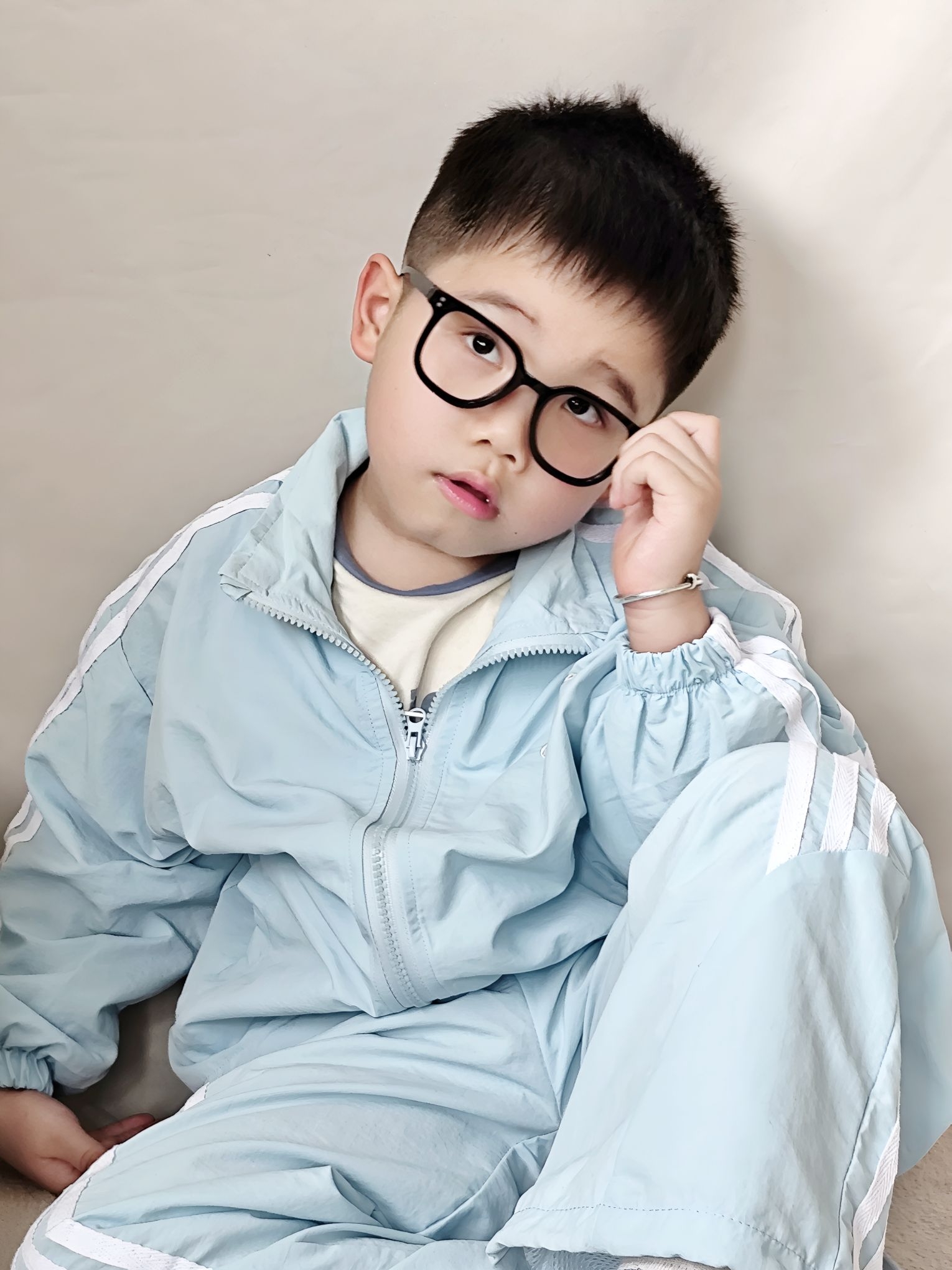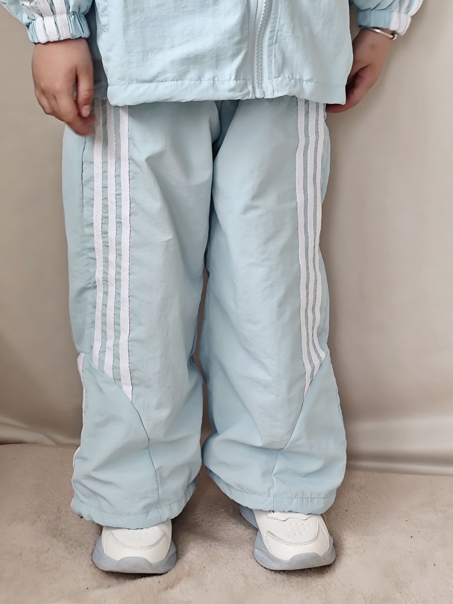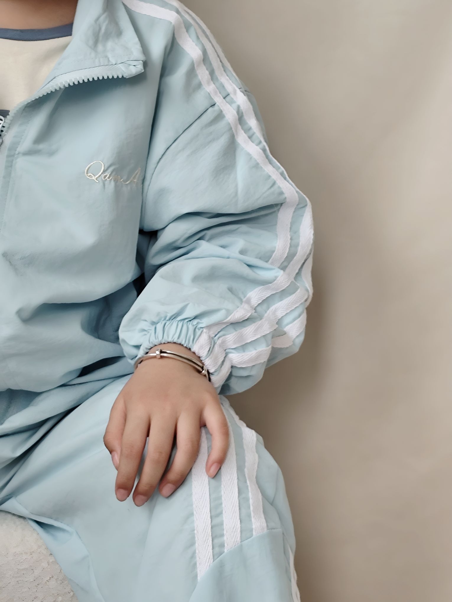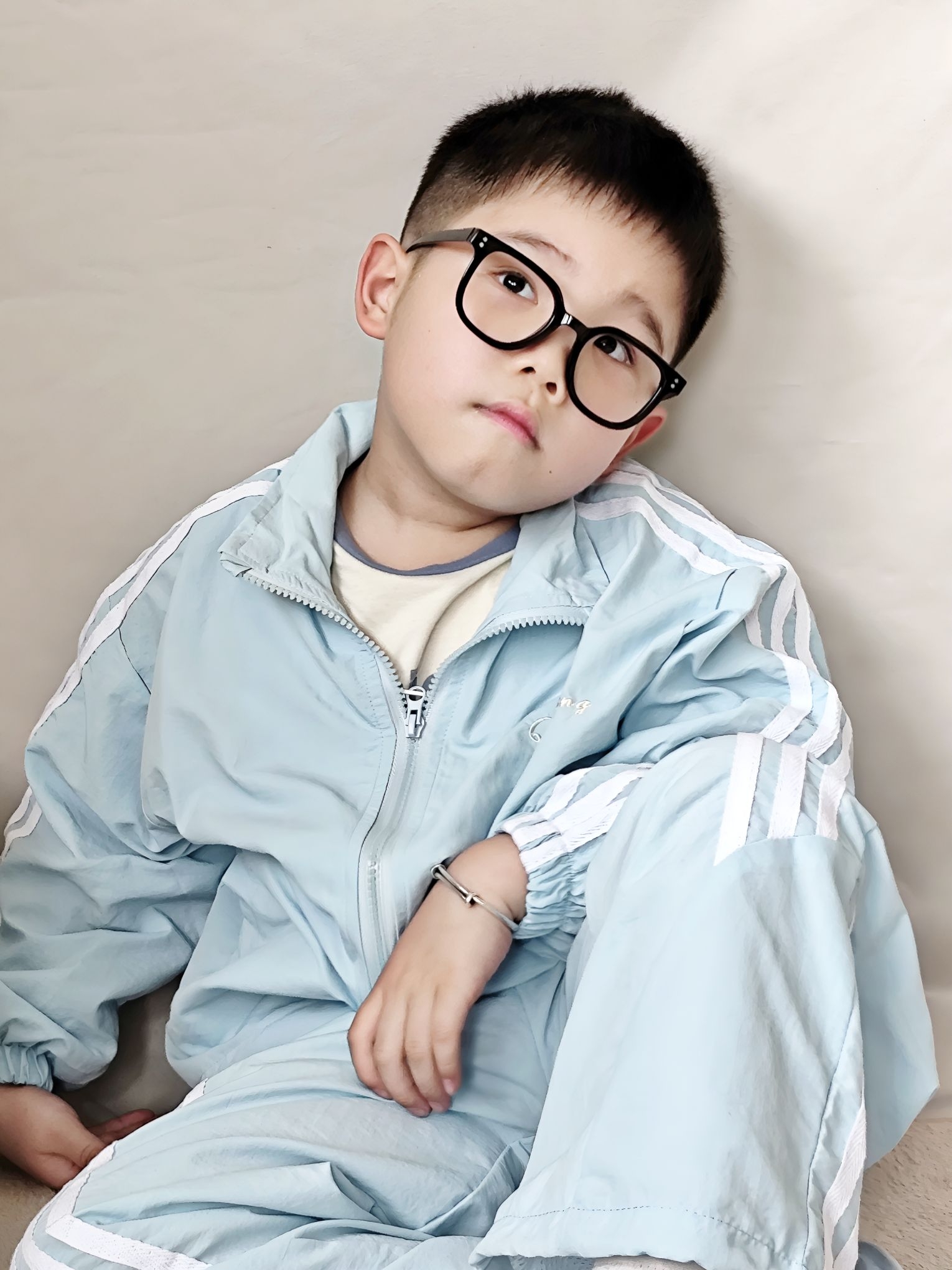 谁懂啊!宸宝这套浅蓝运动套装,真的把春日少年感焊在身上了! 作为宝妈,给男宝挑衣服真的很怕踩雷,要么款式土气,要么面料不舒服。这套我是一眼就看中了,到手真的惊喜满满! ✅ 真实穿搭感受: - 面料是那种轻薄的速干材质,摸起来滑溜溜的,夏天穿完全不闷汗,宸宝跑跳一整天后背也没湿,透气性绝了。 - 版型是宽松的运动款,不勒胳膊不勒腿,他玩滑梯、跑跳都毫无束缚感,而且落肩设计+三条杠元素,又潮又显精神,...