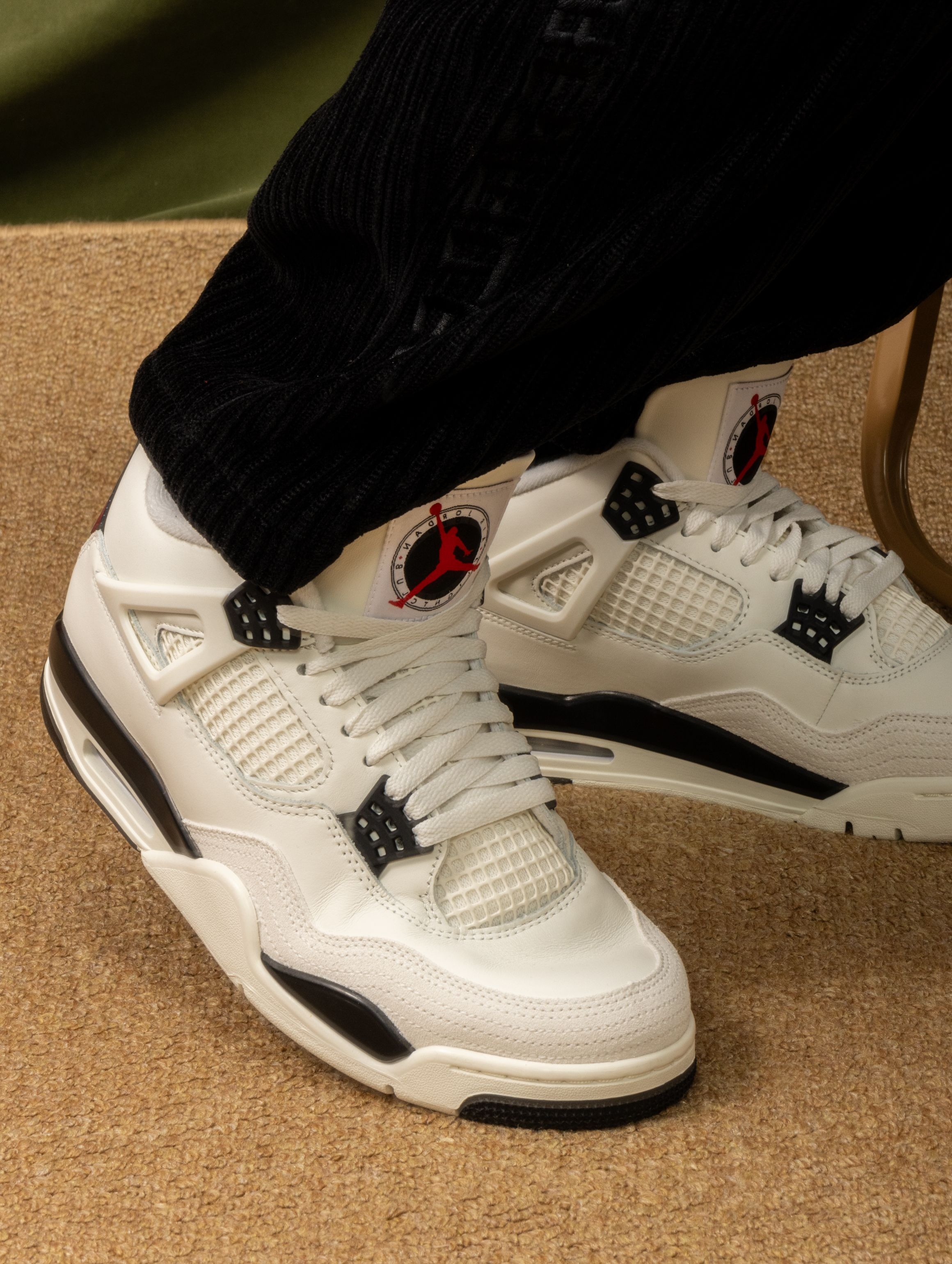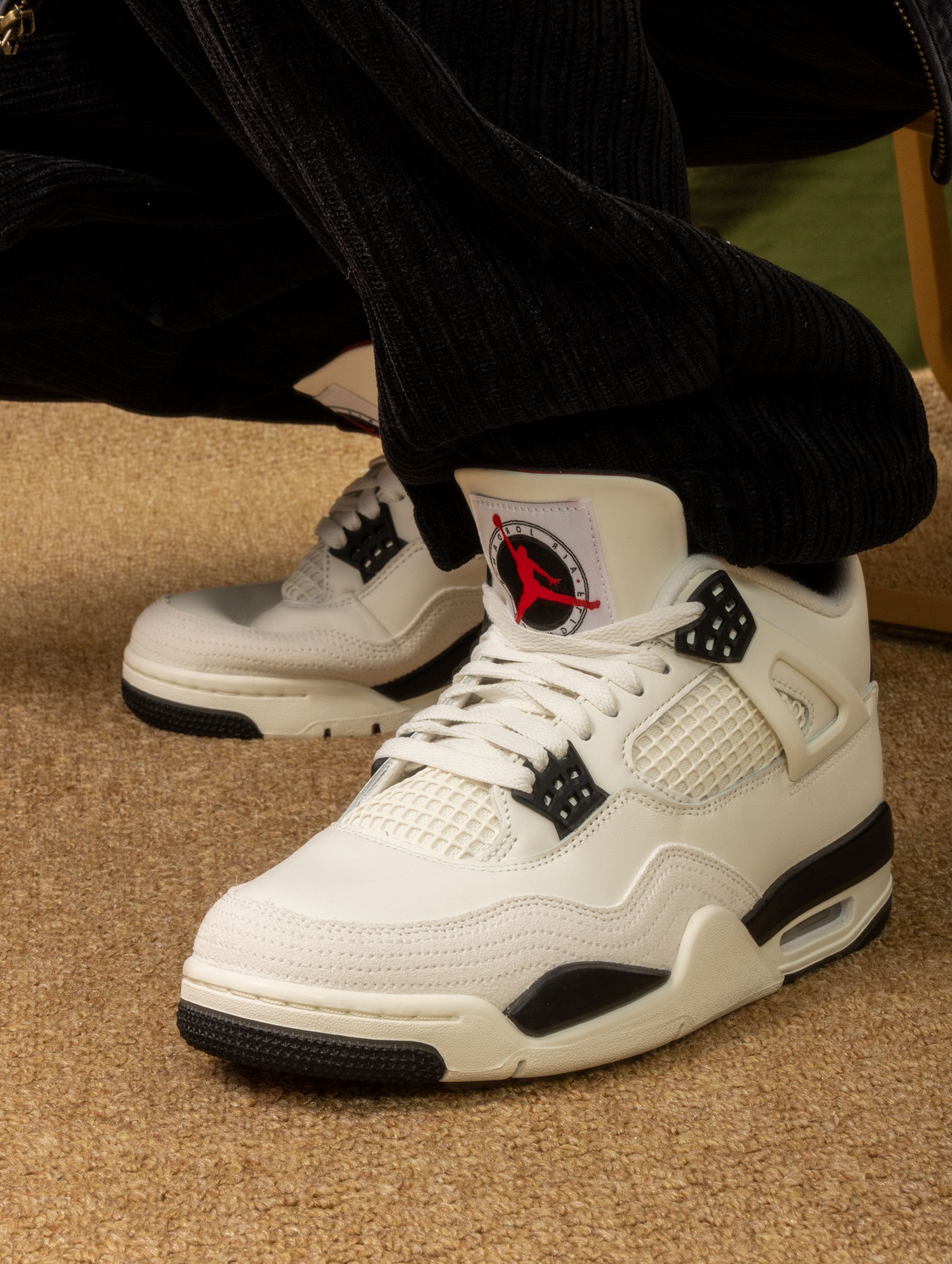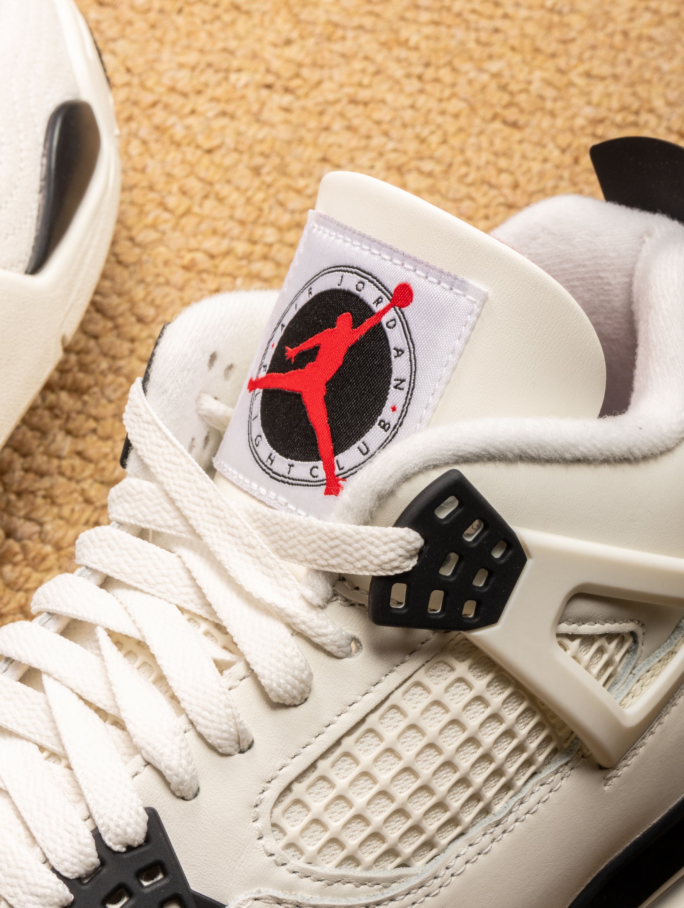 Air Jordan 4 Retro “Flight Club”,从名字到细节都是回忆杀。 白帆皮革打底,搭配黑色翅膀和中底,大学红在鞋舌Jumpman和后跟Nike Air上点睛,芝加哥公牛味儿一下就出来了。 鞋舌上的“Flight Club”专属标,致敬80年代乔丹传奇会员俱乐部,鞋垫和鞋盒还印满了乔丹年轻时的赛场瞬间拼贴画,情怀直接拉满。