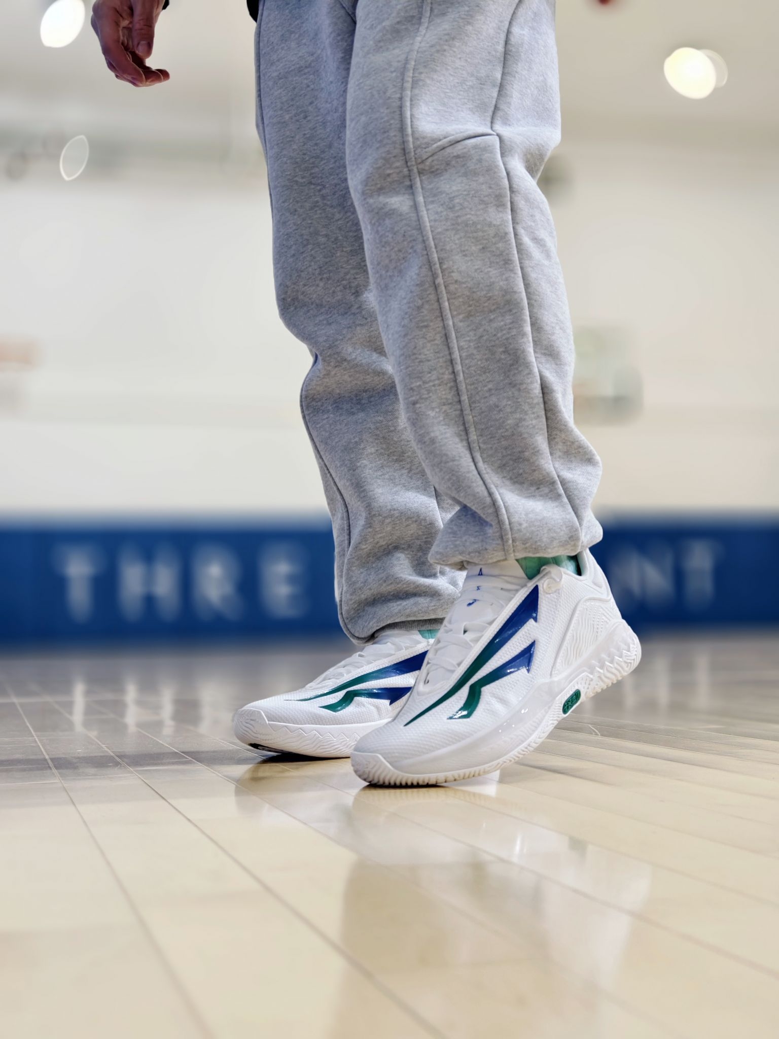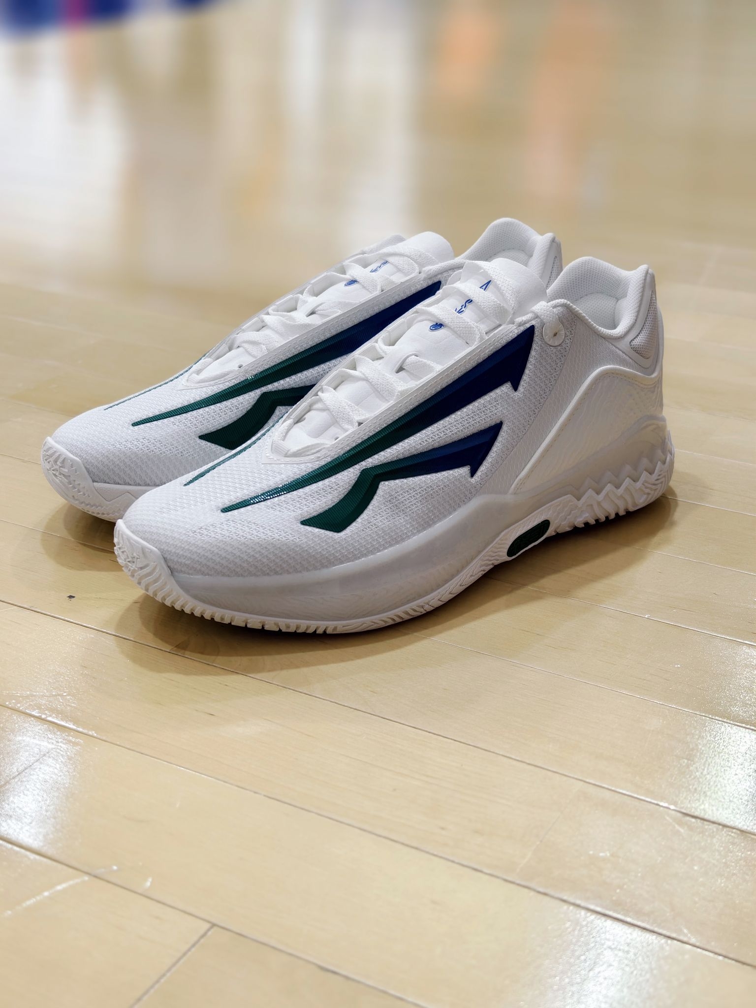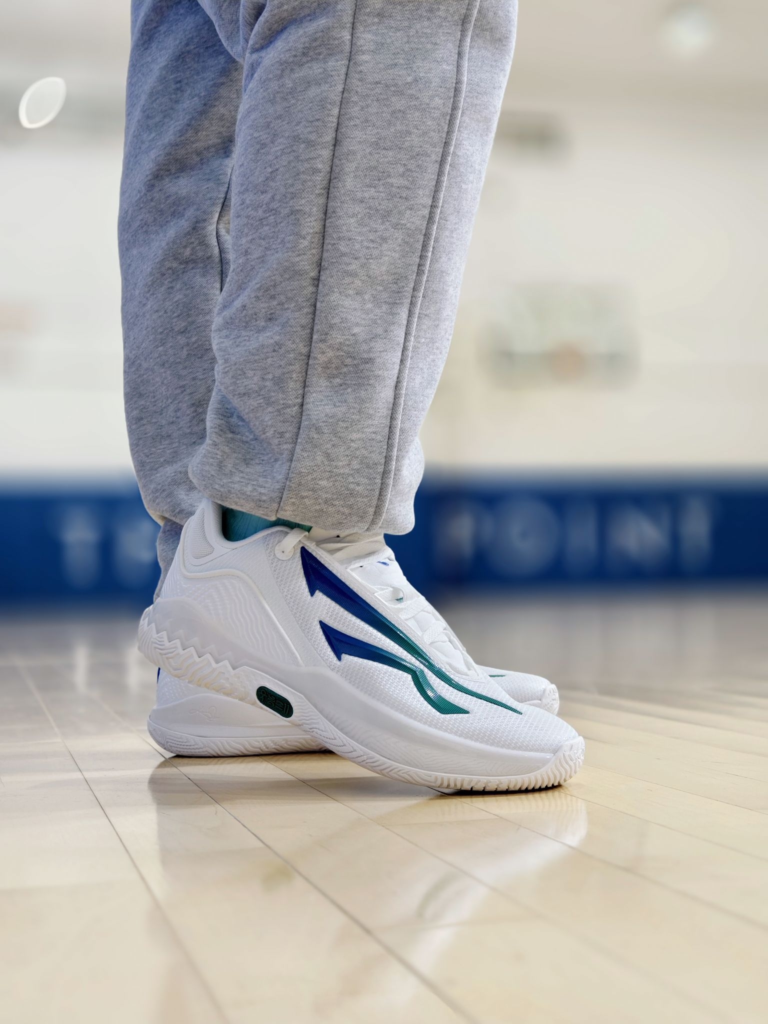 安踏为凯里·欧文推出的支线实战篮球鞋,夏季版在原版基础上做了轻量化和透气升级,非常适合夏季外场打球。 2. 设计亮点 - 配色:白底色搭配蓝绿渐变线条,灵感源自达拉斯独行侠队,清爽又有辨识度。 - 鞋面:采用更轻薄的工程网布,鞋舌和内衬也做了减薄处理,兼顾透气与支撑,解决了原版夏季闷脚的问题。 - 缓震与抓地:搭载A-SHOCK PRO中底,回弹反馈直接;波浪形橡胶外底,抓地力能应...