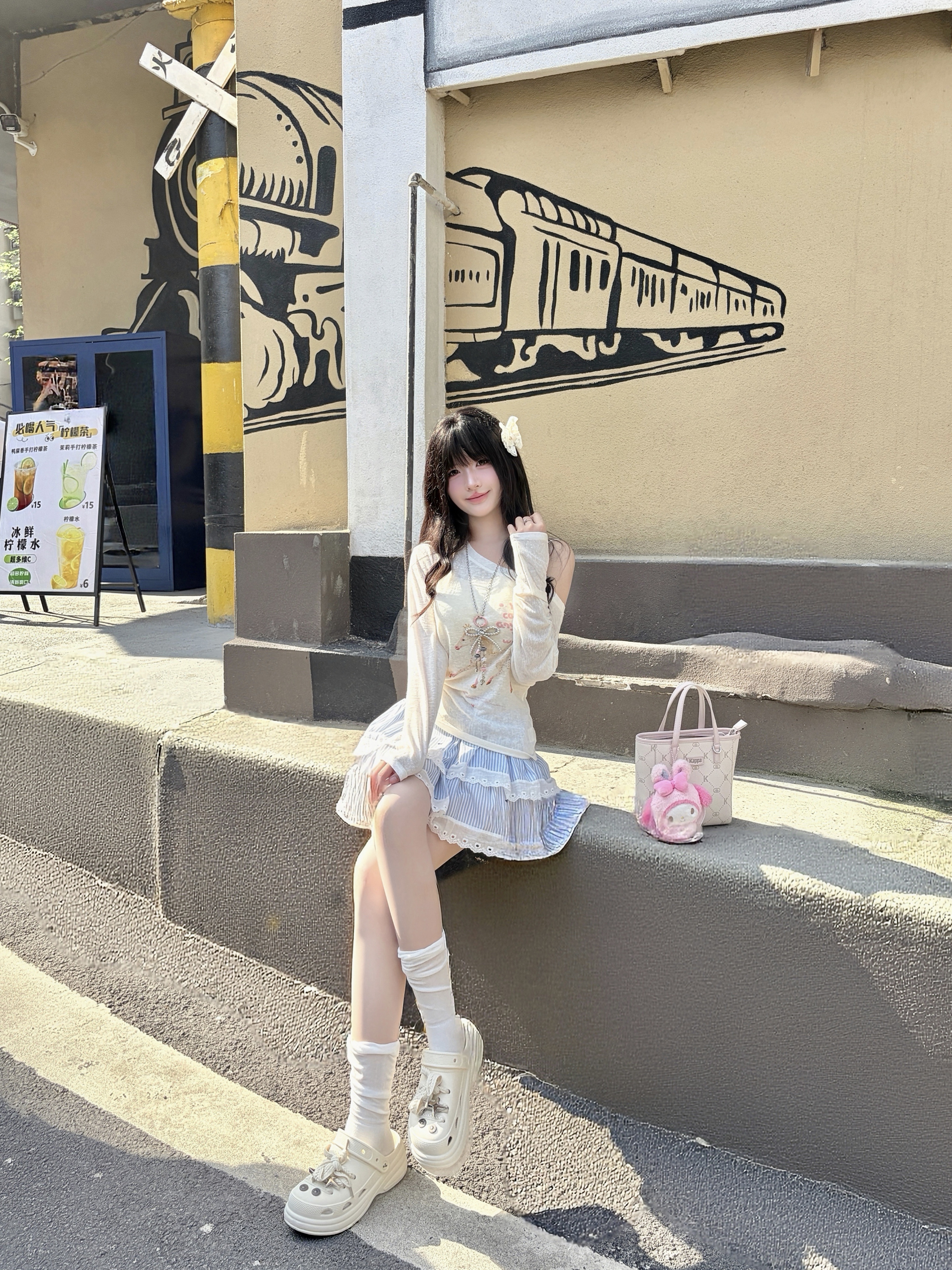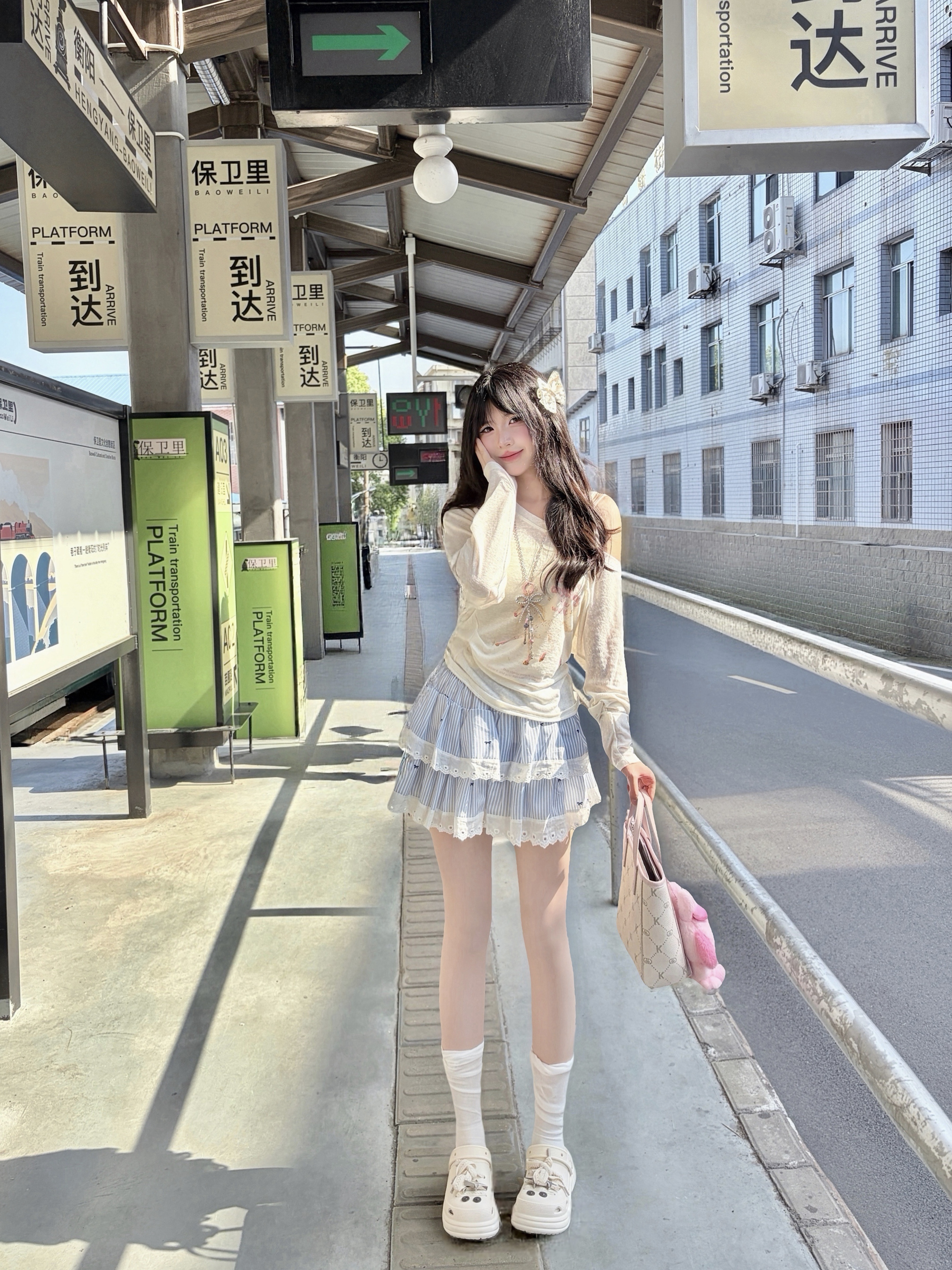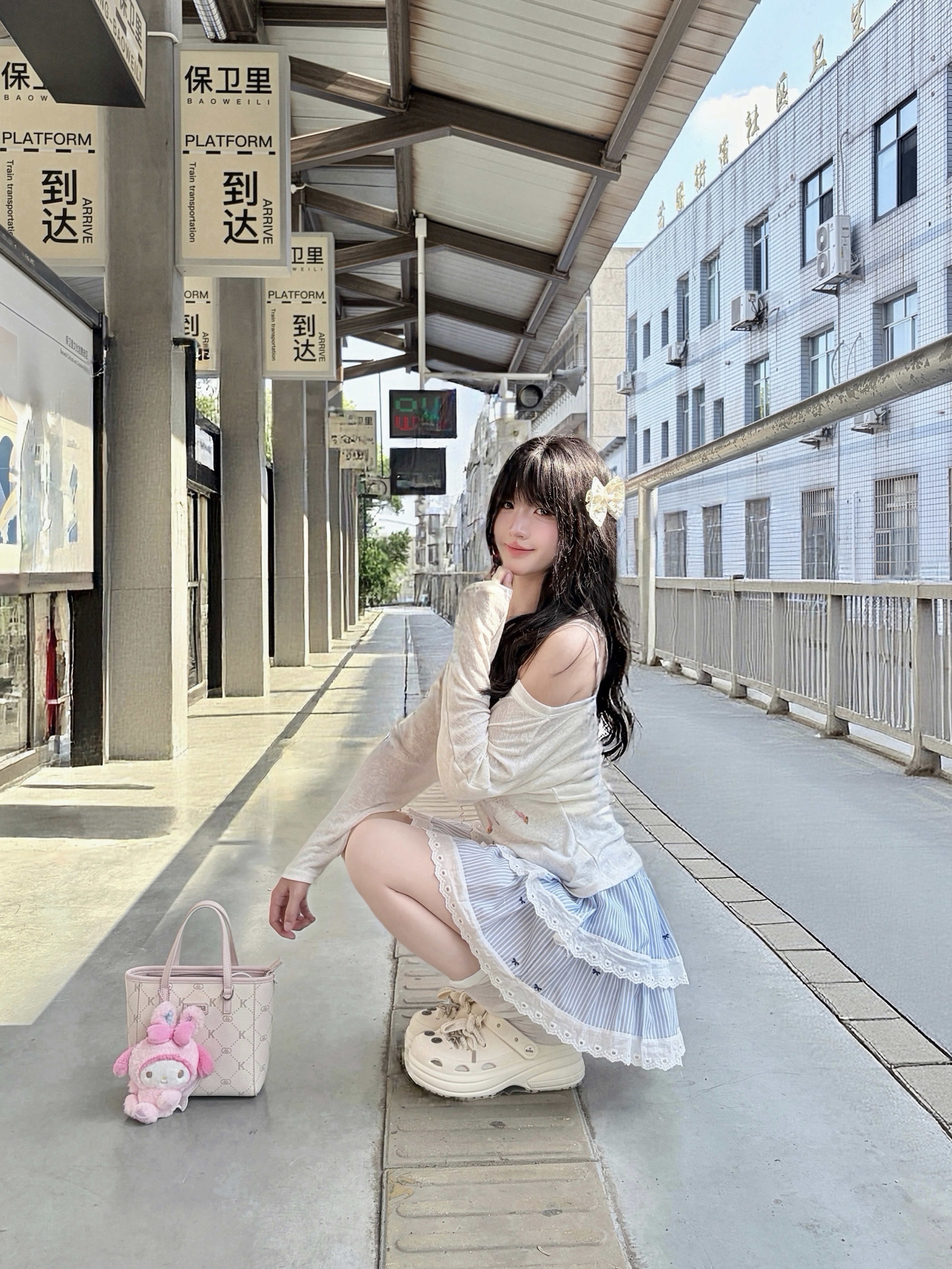 今天是甜妹💕学院风的一套Look~ 小马防晒罩衫➕蓝色蛋糕裙🧁 我搭配的是奶油色洞洞鞋~ 像我经常出汗 春夏☘️真的不能没有洞洞鞋 这双洞洞鞋穿起来软乎乎的 走久了也不会累脚🦶 搭配长裤🧩 短牛仔裤 小短裙都很可爱呀~
