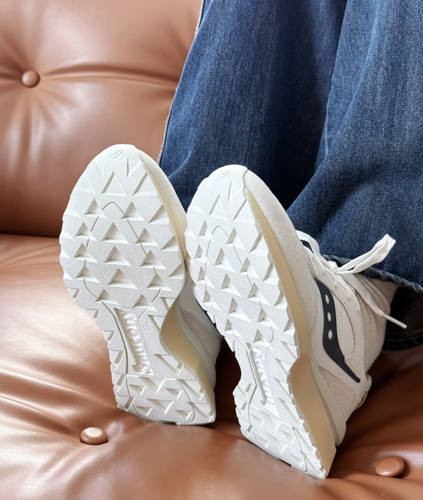 👟索康尼JAZZ RENEW V2德训鞋,复古设计+现代科技,鞋面采用哑光皮、网眼和麂皮拼接,层次感满满✨。全掌PRWRVIZI中底,脚感柔软回弹,238g超轻,长时间穿也很舒适。生胶鞋底+三角纹路,雨天防滑,3D透气系统夏天也清爽🌬️。百搭属性,通勤、逛街、旅行都能轻松驾驭,是功能与时尚兼具的运动鞋!