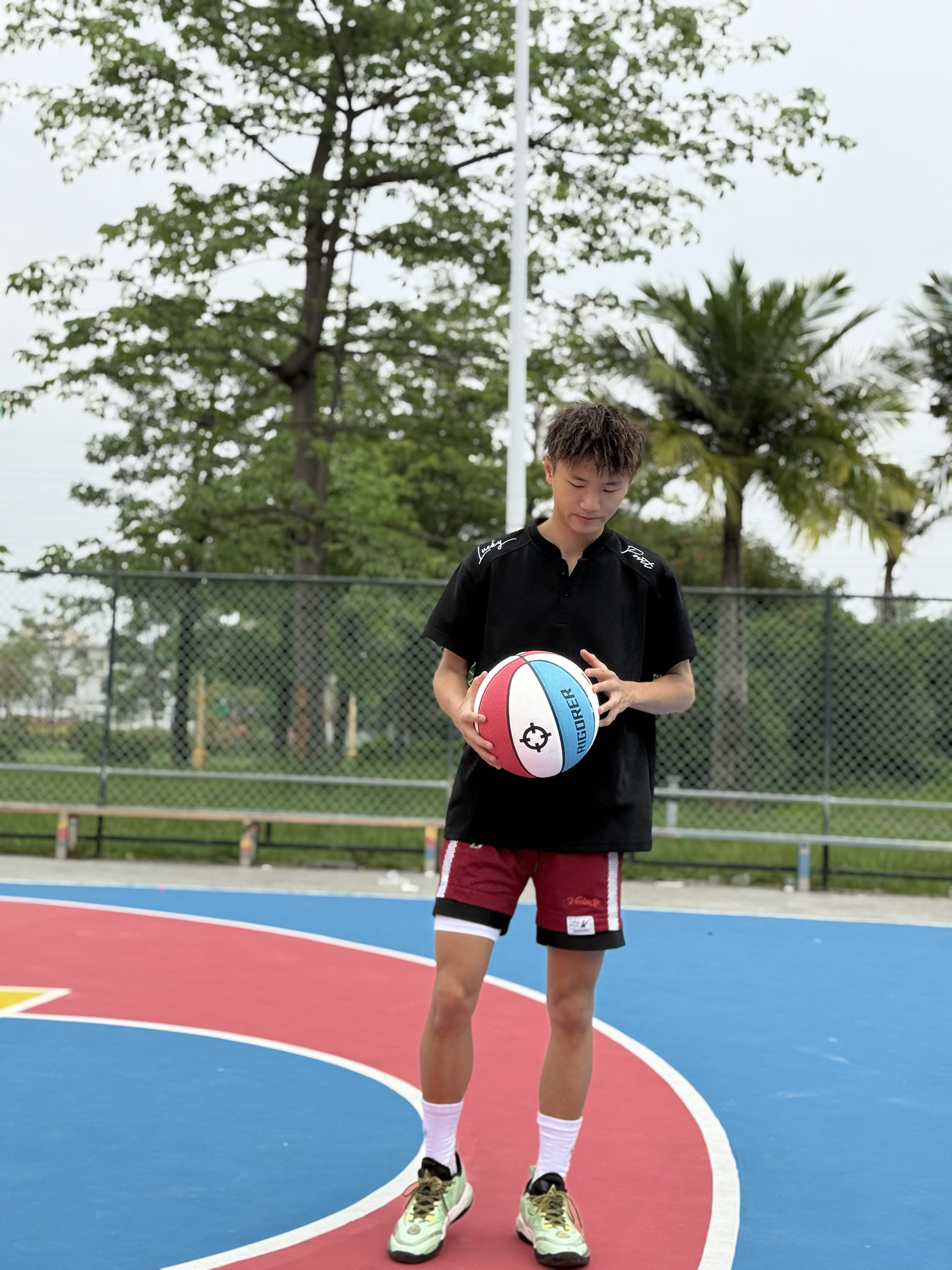 今天给大家分享一下我的篮球穿搭🥰 今天是来自 RIGORER 狙击一代篮球 红白蓝的配色,颜值非常高,手感也是挺不错的,室外场地个非常耐打! 袜子🧦是 RIGORER 实战篮球袜,毛巾底的设计很厚实,也有一定的保护性 👟 RIGORER 里夫斯二代 实战篮球袜