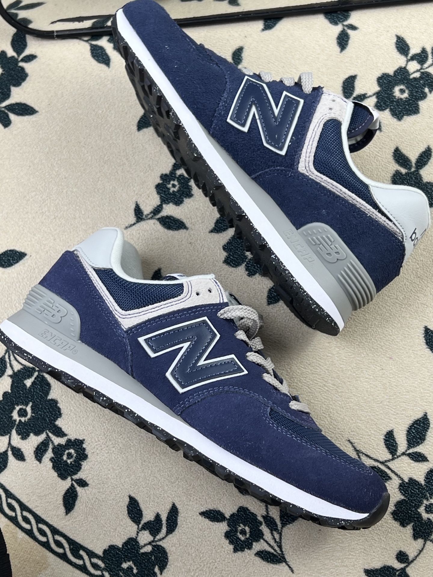谁懂啊!New Balance 574这双藏蓝灰配色直接焊在我的脚上了!深海军蓝麂皮+网面的组合,复古又有质感,上脚自带80年代美式街头感。 软乎乎的中底踩上去像踩棉花,走路带风还巨显脚小,自带一点增高效果,小个子也能轻松hold住。搭牛仔裤、运动裤、工装裤都巨适配,不管是早八通勤还是citywalk暴走,穿它舒服又耐看,真·一年四季都能穿的万能鞋款!