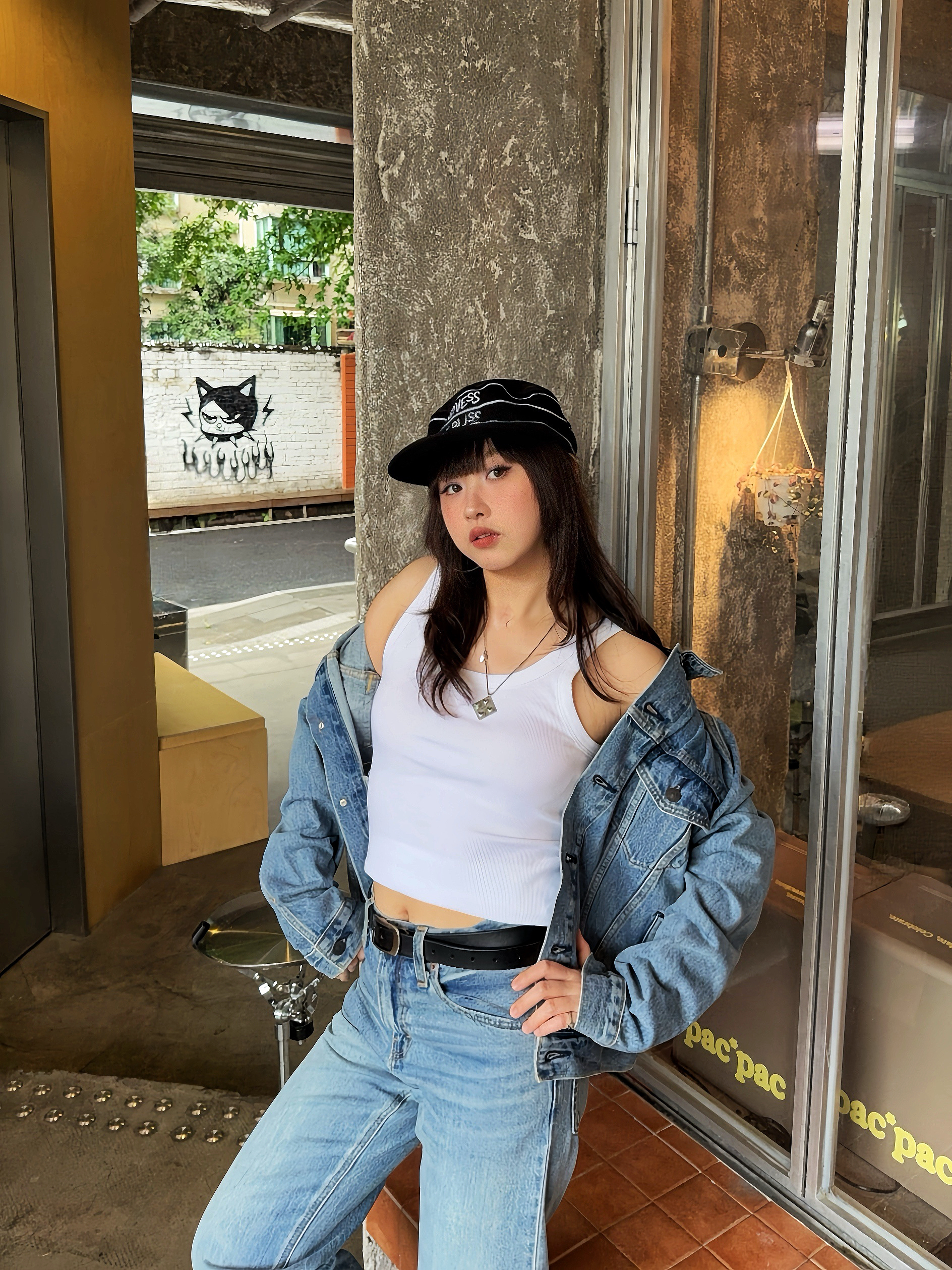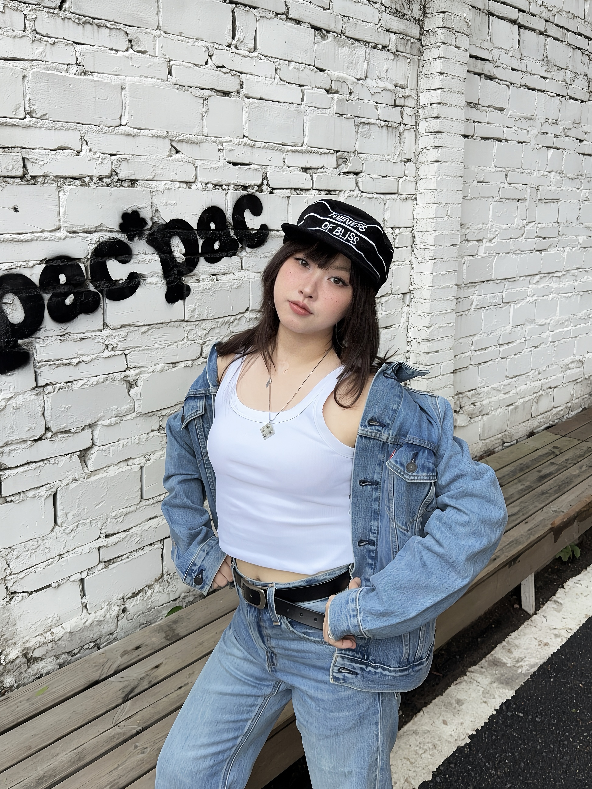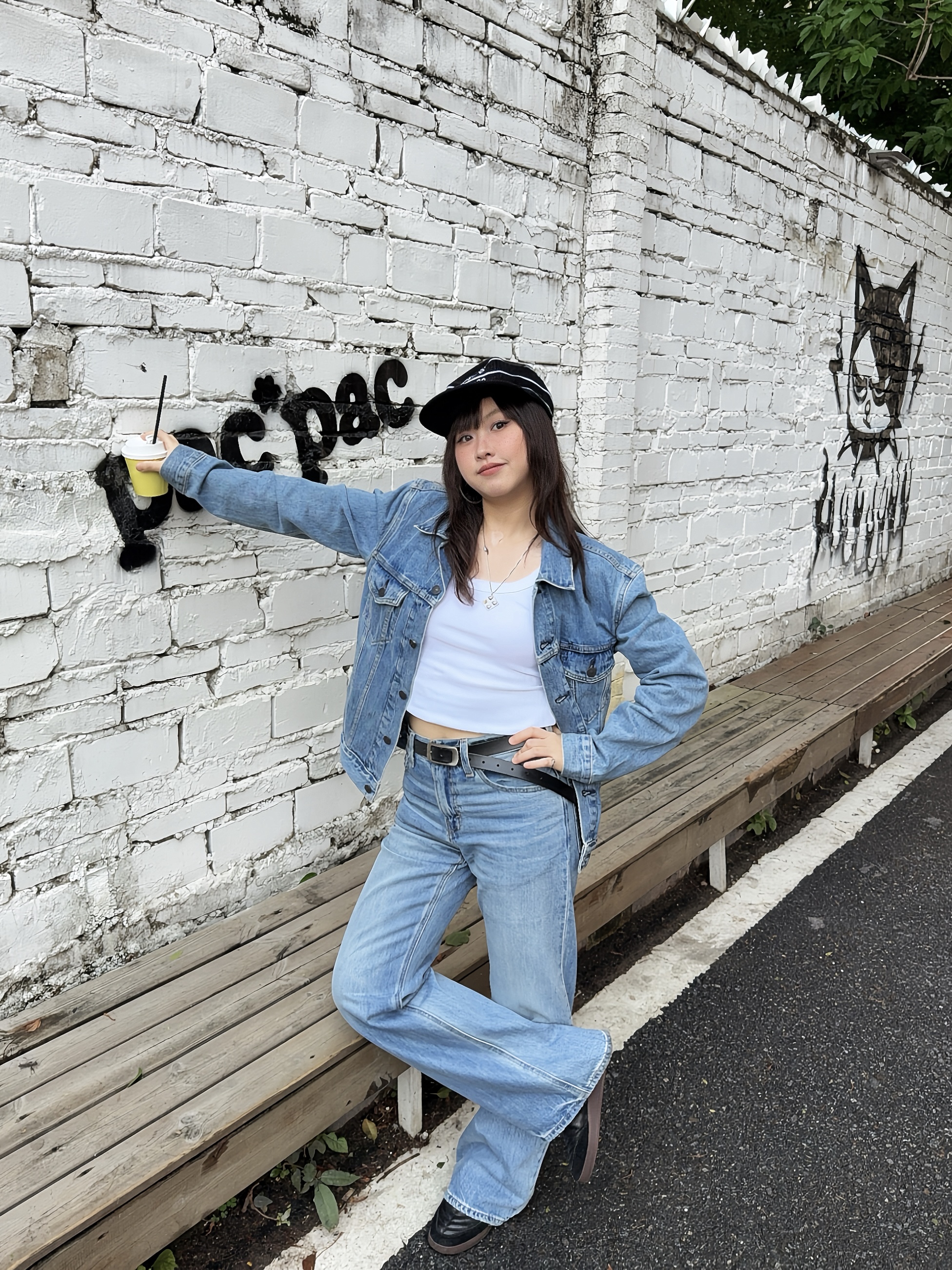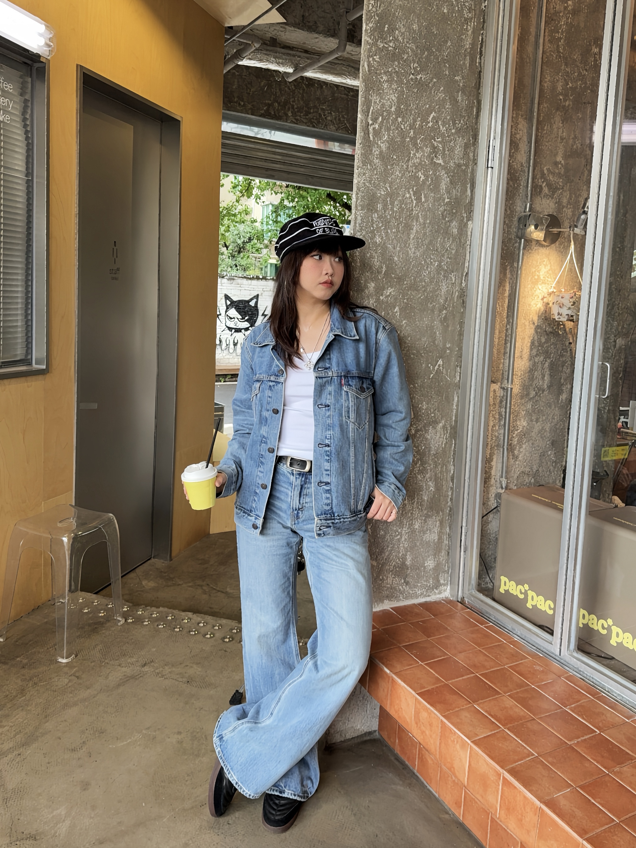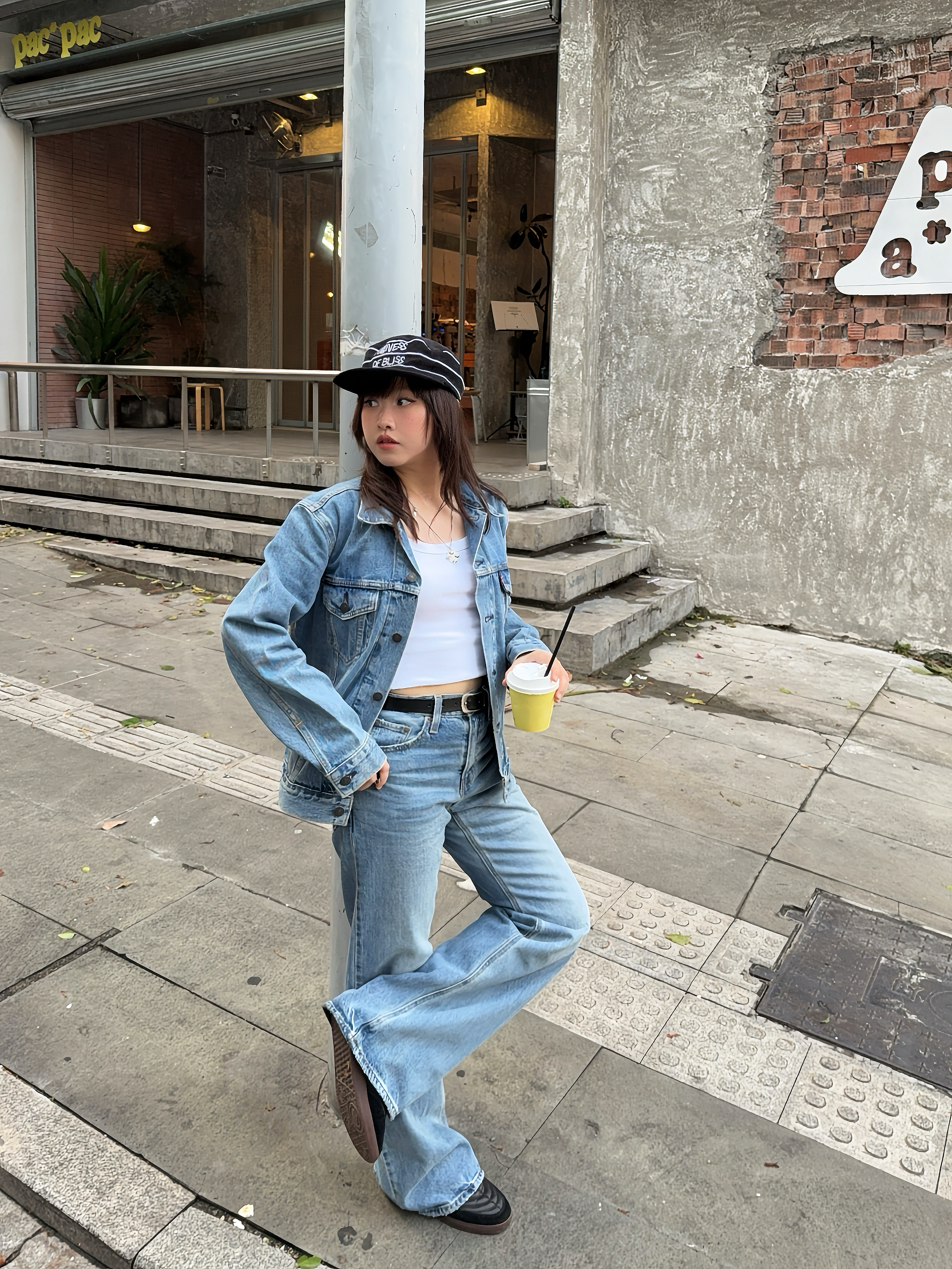 无界穿搭美学来啦 Ootd:⚓️ Levis 复古丹宁外套搭配微喇牛仔裤👖内搭简约背心,这种复古时髦vibe好戳我~ ✔️再搭配腰带,修饰比例,🎧戴个帽子增加穿搭细节,跟着ROSÉ朴彩英穿,不会输!