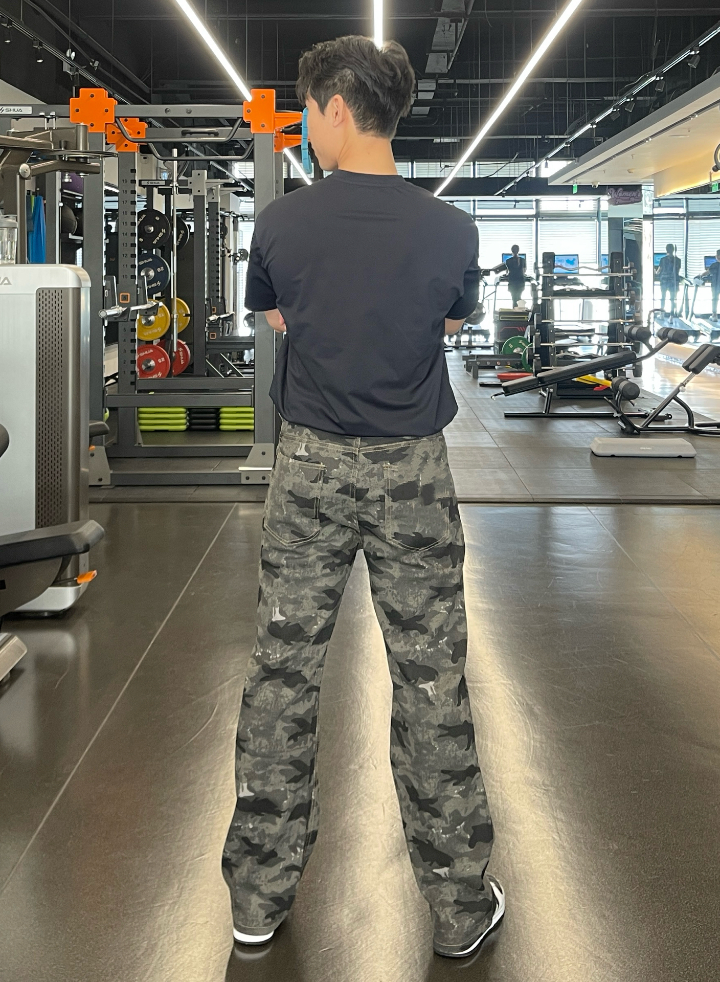 今天上身的是一条迷彩裤,本来是冲着简单搭配买的,结果意外成了近期常穿款 面料是那种带点垂感的,不是硬邦邦的牛仔料,今天练腿的时候蹲起、拉伸都不卡裆,裤脚是微阔的版型,刚好能盖住鞋边,显得腿型很顺。 重点说细节:侧边有个小口袋,装耳机/钥匙刚好,不用再挎包;迷彩配色是低饱和的灰调,不像有些款太扎眼,搭黑T+运动鞋就是干净的运动风,换件衬衫又能直接出街。 缺点:刚拿到有点轻微褶皱,挂一晚上就顺了,不算...