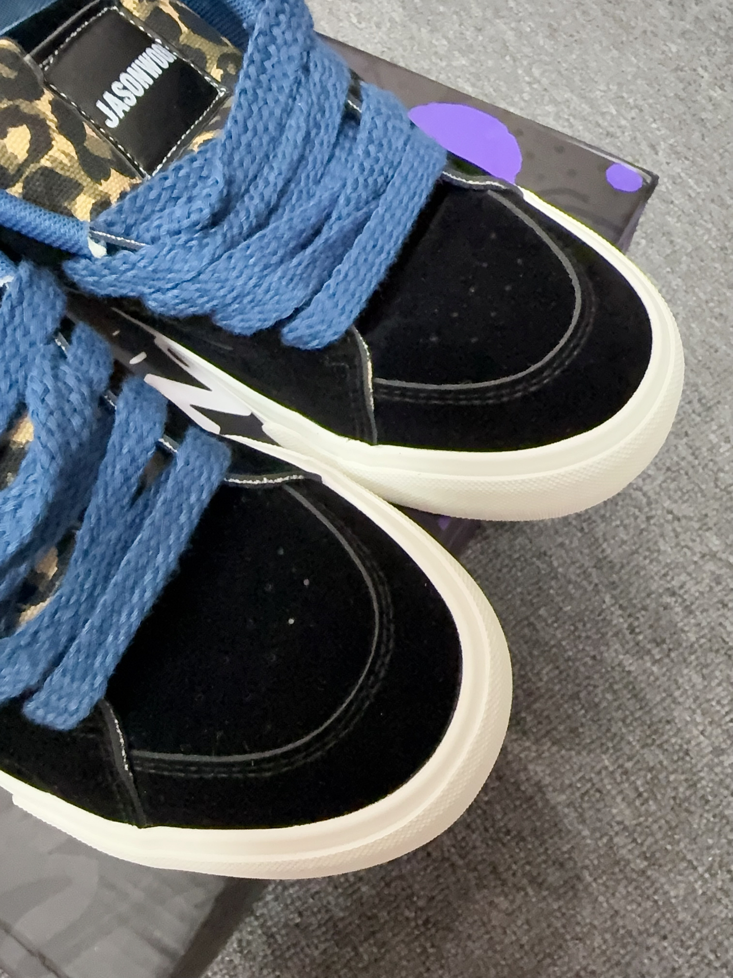 这双板鞋的豹纹+蓝闪电设计直接戳中我!复古又带点街头感,完全不土气,反而很有个性。 鞋面是翻毛皮+帆布的组合,质感很在线,上脚也很舒服,鞋底软弹厚实,走路久了也不累脚,踩上去还有点回弹感。 而且它巨百搭!配牛仔裤、工装裤、卫裤都能hold住,不管是日常出街还是滑板都合适,小众不撞款,想换风格的兄弟可以冲!
