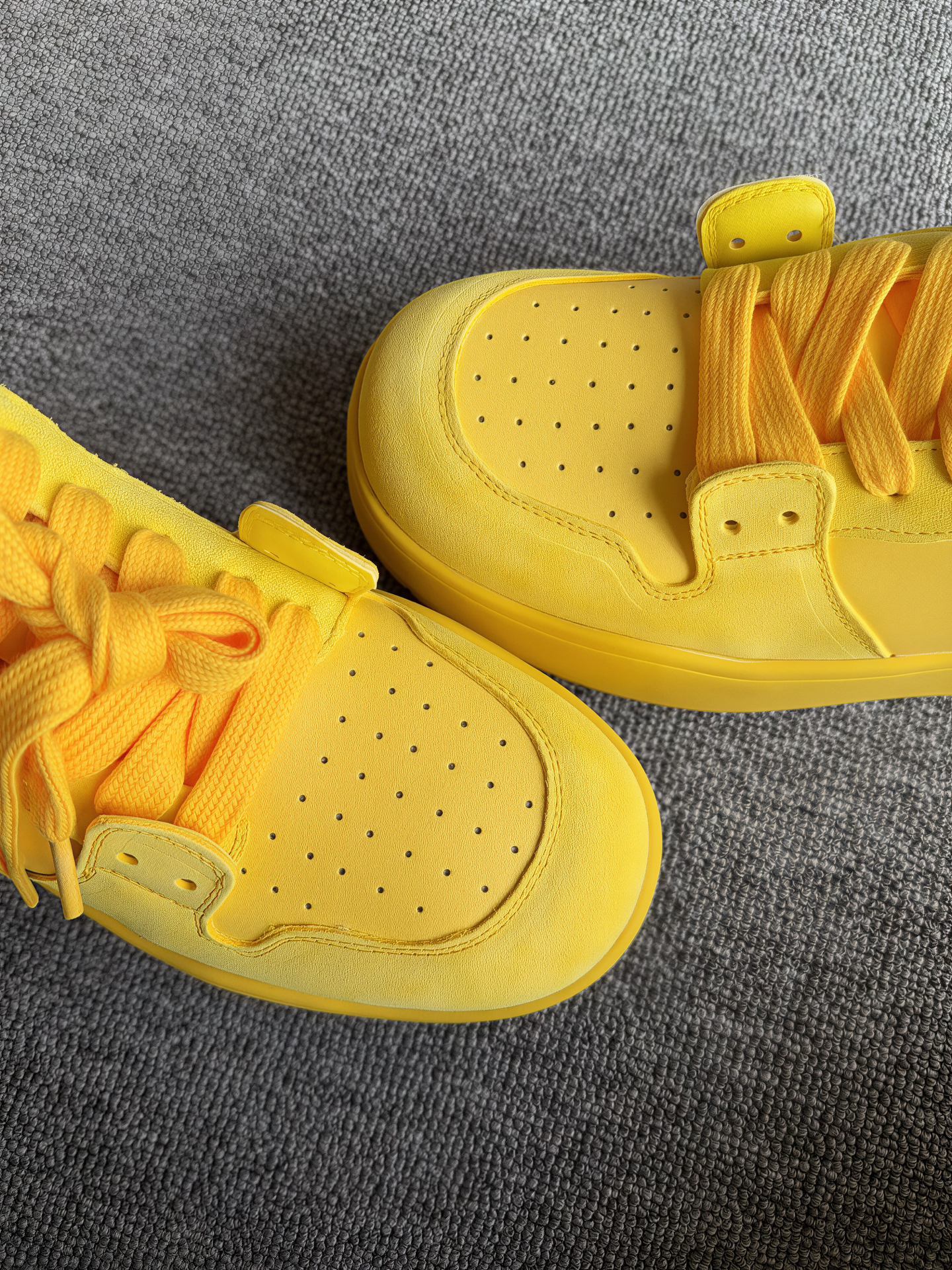 这双柠檬黄板鞋真的是近期挖到的宝藏!鞋身用了皮革+翻毛皮拼接,质感完全不廉价,自带那种低调的高级感,完全不是廉价塑料感。鞋头的网孔设计很贴心,夏天穿也不会闷脚,透气度在线。 上脚脚感很惊喜,鞋底厚实软弹,走路久了也不累脚,还有点小增高效果,悄悄拉长比例不突兀。全黄的配色看着亮眼,但意外地很百搭,配深色牛仔裤、运动裤都很有味道,简约不花哨,日常出门穿完全不挑风格。