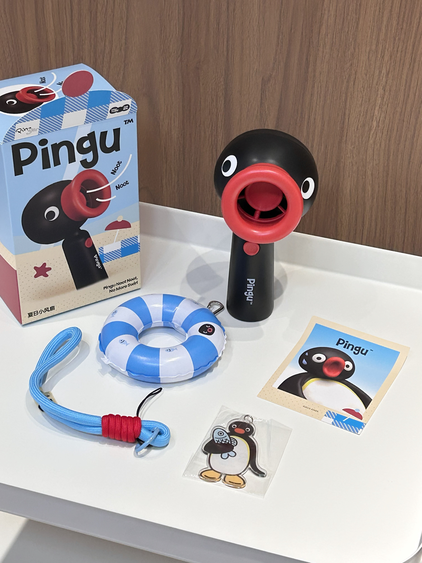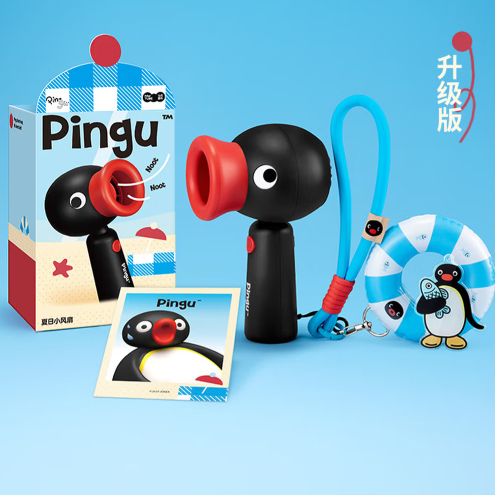 这不是夏天快来了 给大家介绍下我的解暑神器 是这个Pingu手持风扇 圆滚滚的企鹅造型好可爱呀 还有游泳圈跟小挂饰 我觉得挂在包包上也好好看啊 搭配了礼盒送礼物也合适