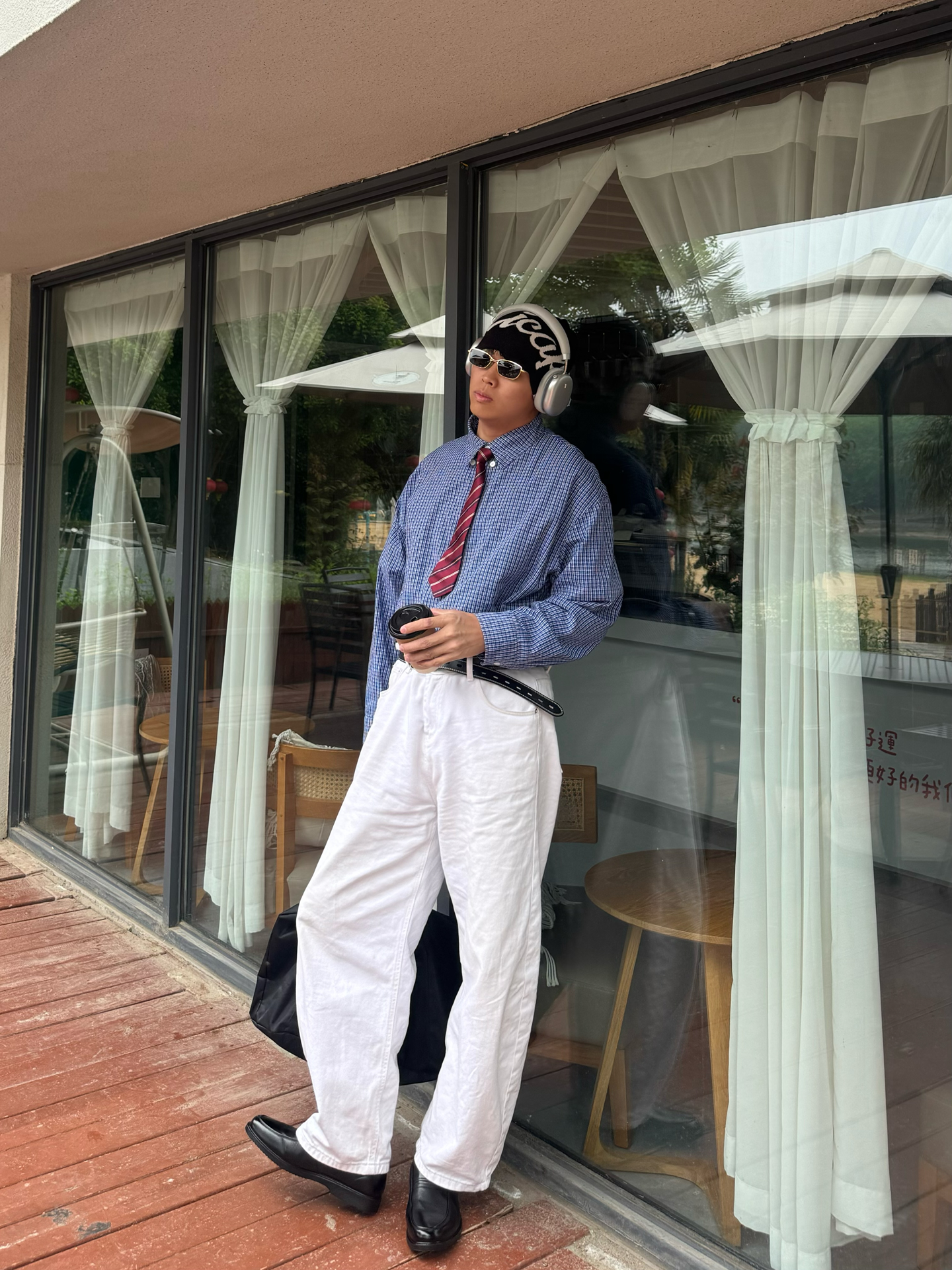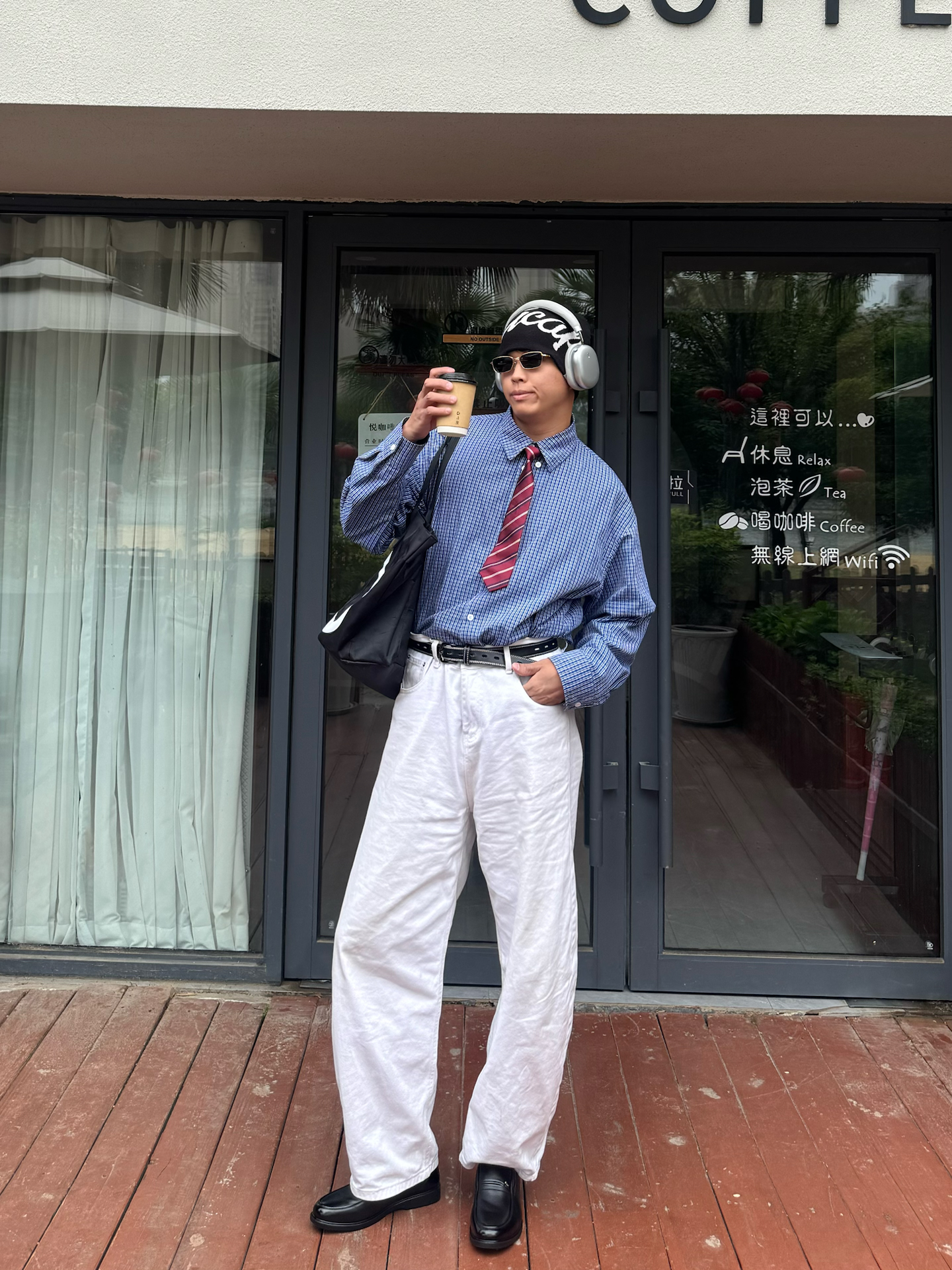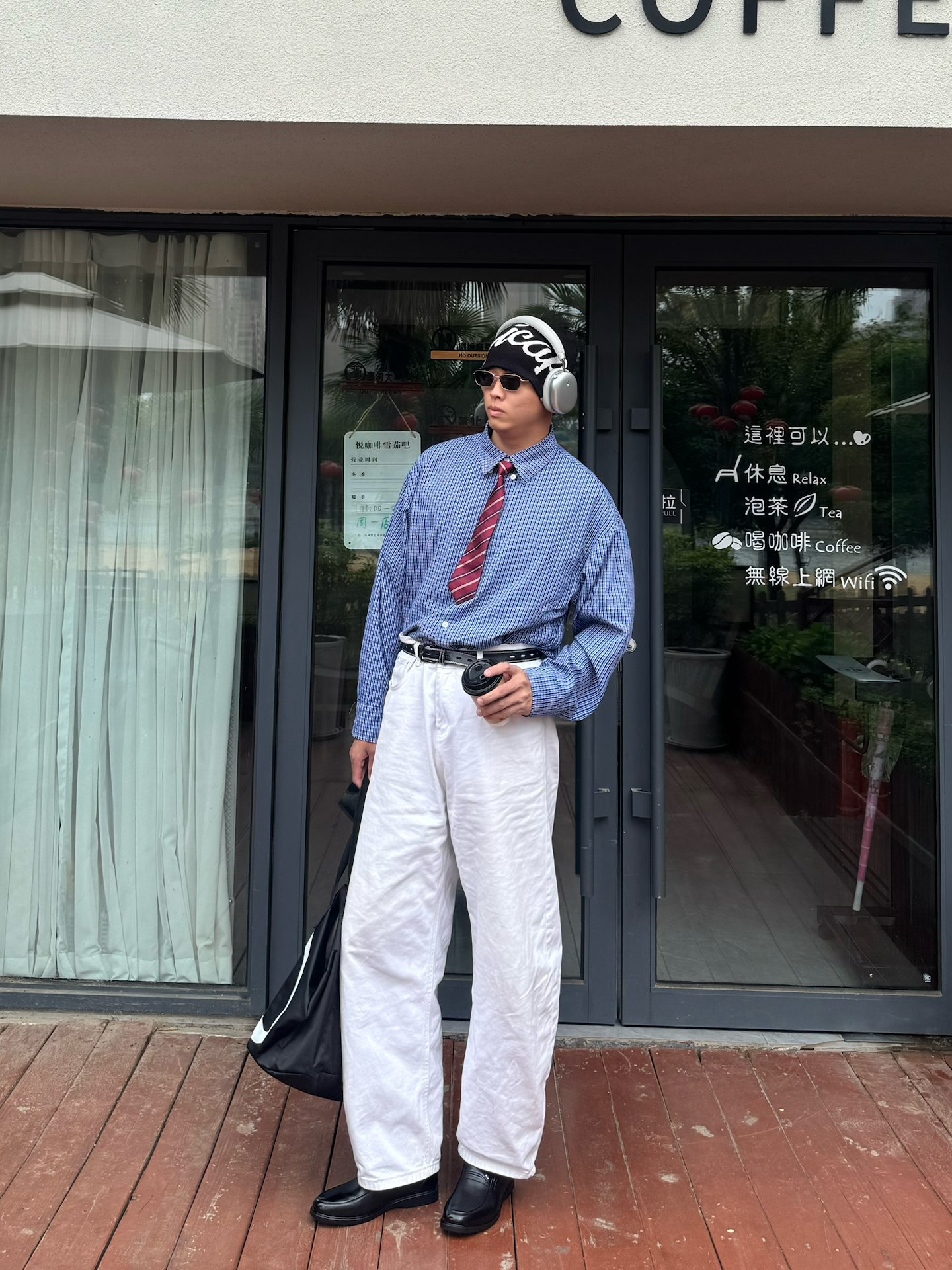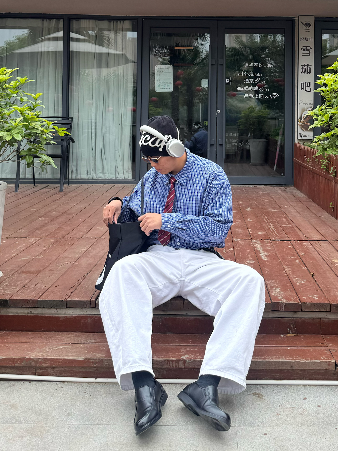 👔蓝色格子衬衫 👖白色阔腿裤 👞黑色皮鞋 🔗 拒绝精神小伙! 白裤子+黑皮鞋才是春夏最显贵的松弛感穿搭! 很多人觉得白阔腿裤只能配运动鞋 其实一双低帮黑皮鞋刚好压住浅色的膨胀感 自带利落质感不刻意也不浮夸 不用复杂搭配简单干净就很加分 适用多个不同的场合无论是职场还是通勤合作 都能彰显个人气值 气质直接拉满 男生春夏这么穿真的很耐看