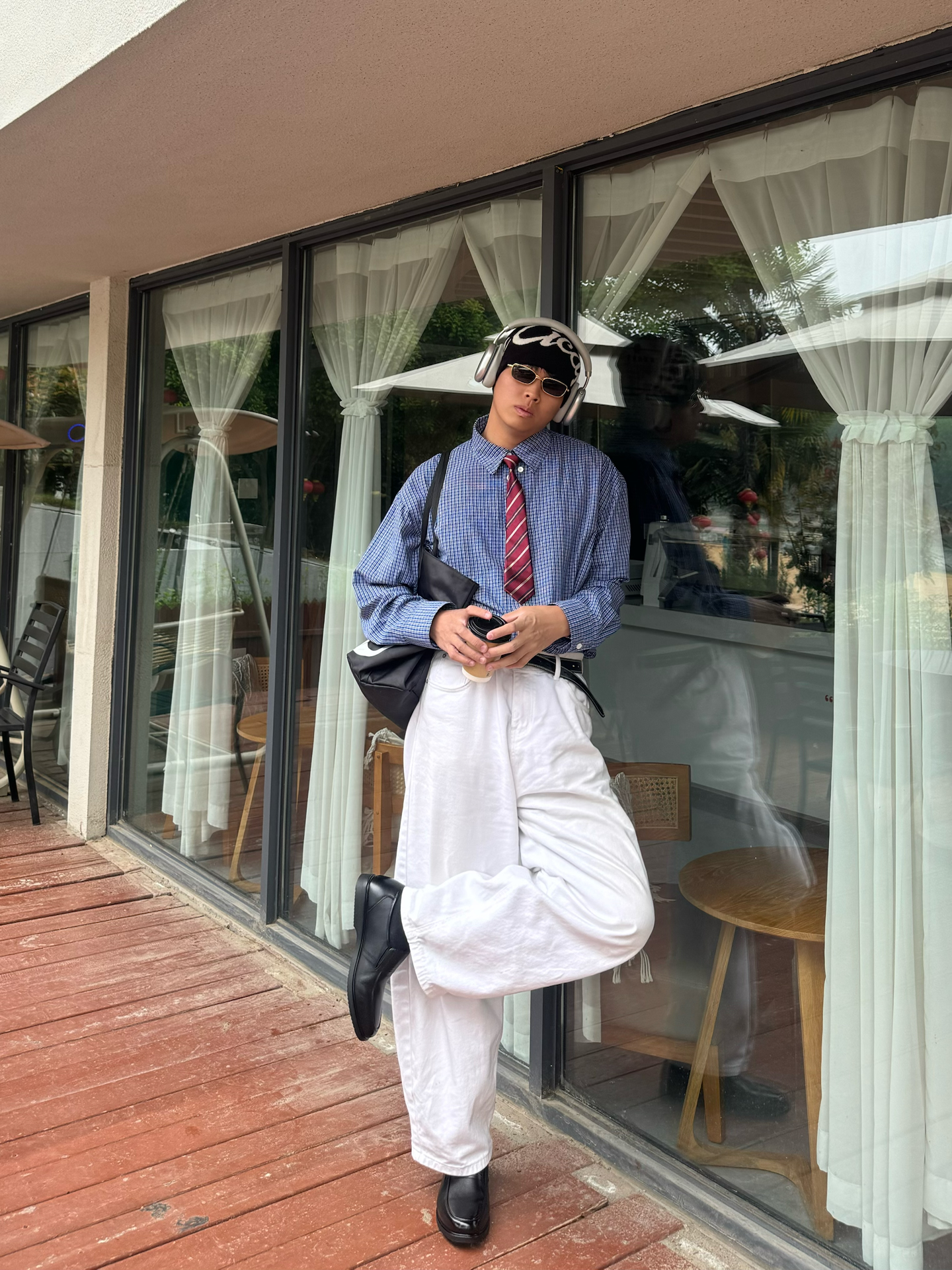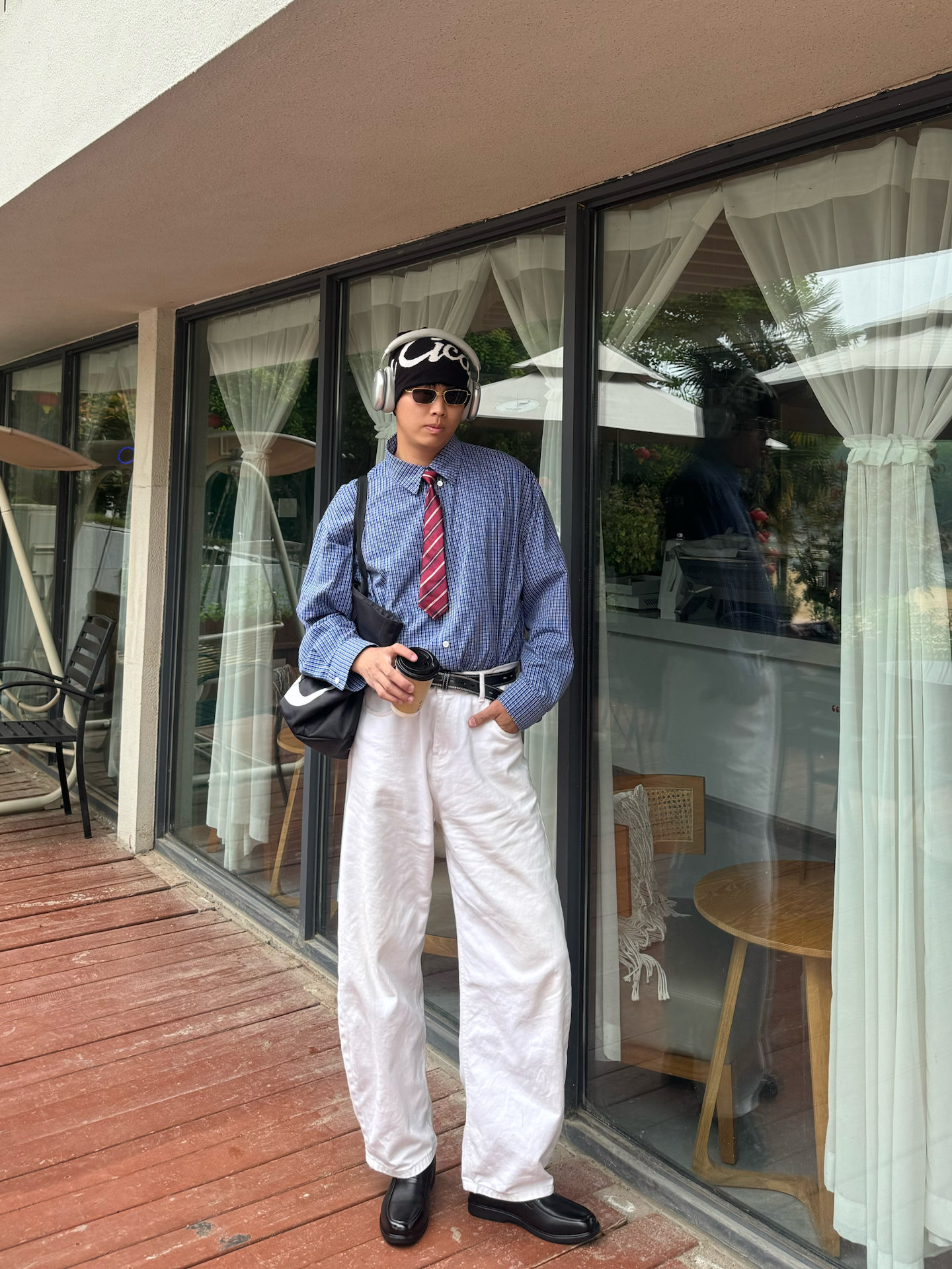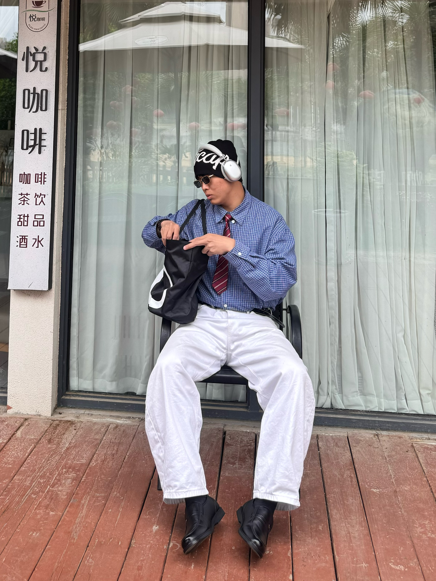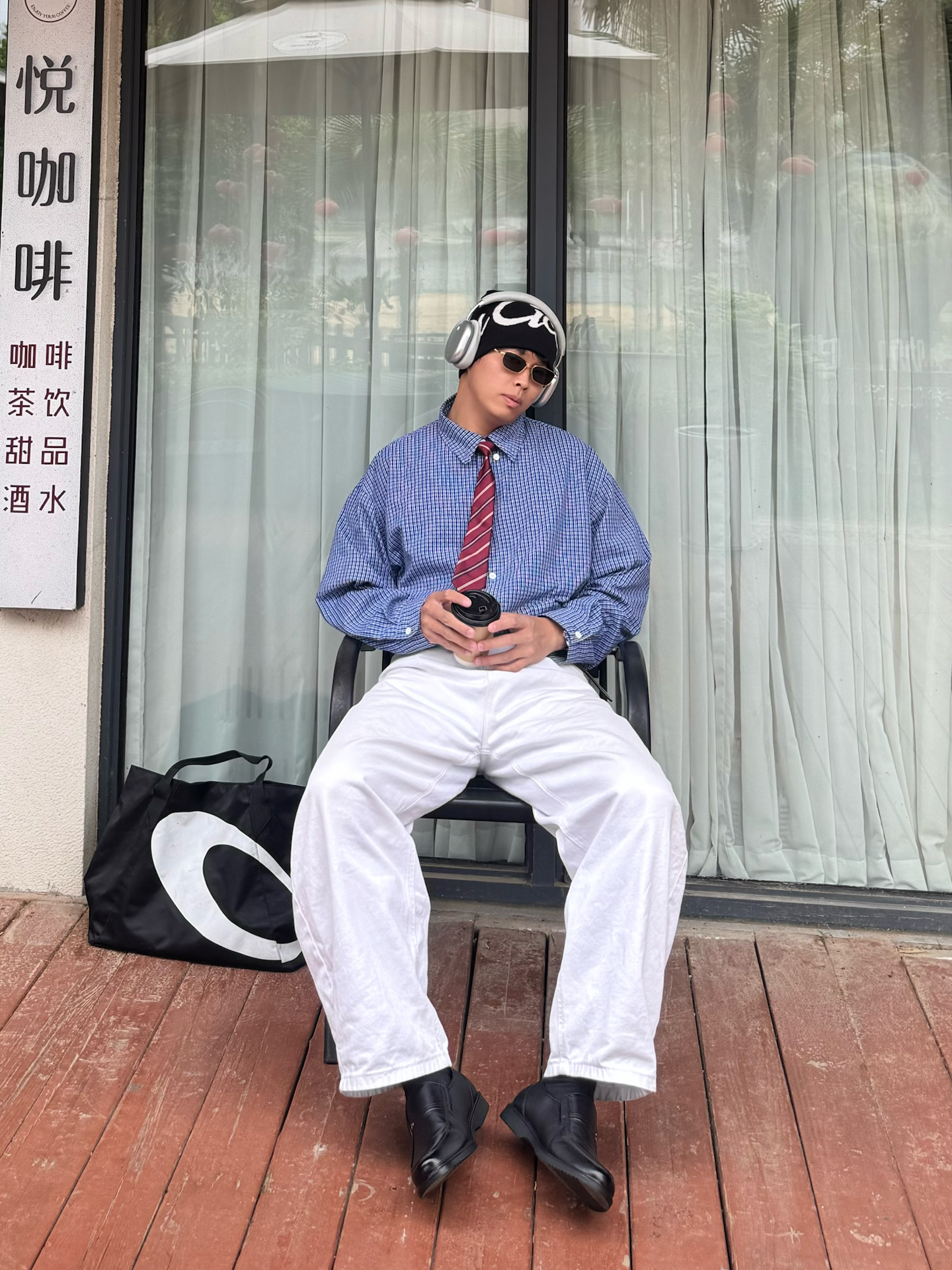 👔蓝色格子衬衫 👖白色阔腿裤 👞黑色皮鞋 🔗 拒绝精神小伙! 白裤子+黑皮鞋才是春夏最显贵的松弛感穿搭! 很多人觉得白阔腿裤只能配运动鞋 其实一双低帮黑皮鞋刚好压住浅色的膨胀感 自带利落质感不刻意也不浮夸 不用复杂搭配简单干净就很加分 适用多个不同的场合无论是职场还是通勤合作 都能彰显个人气值 气质直接拉满 男生春夏这么穿真的很耐看