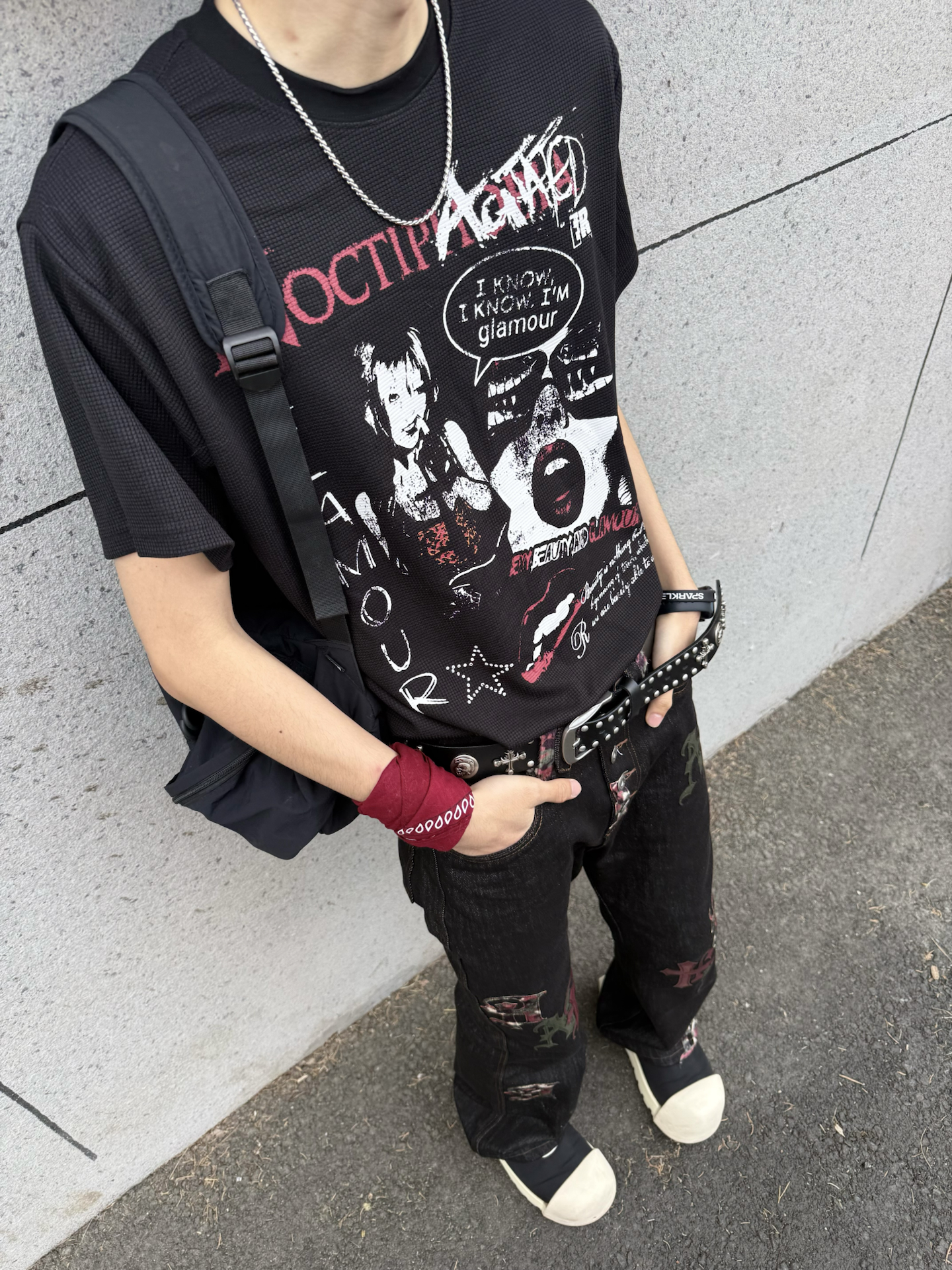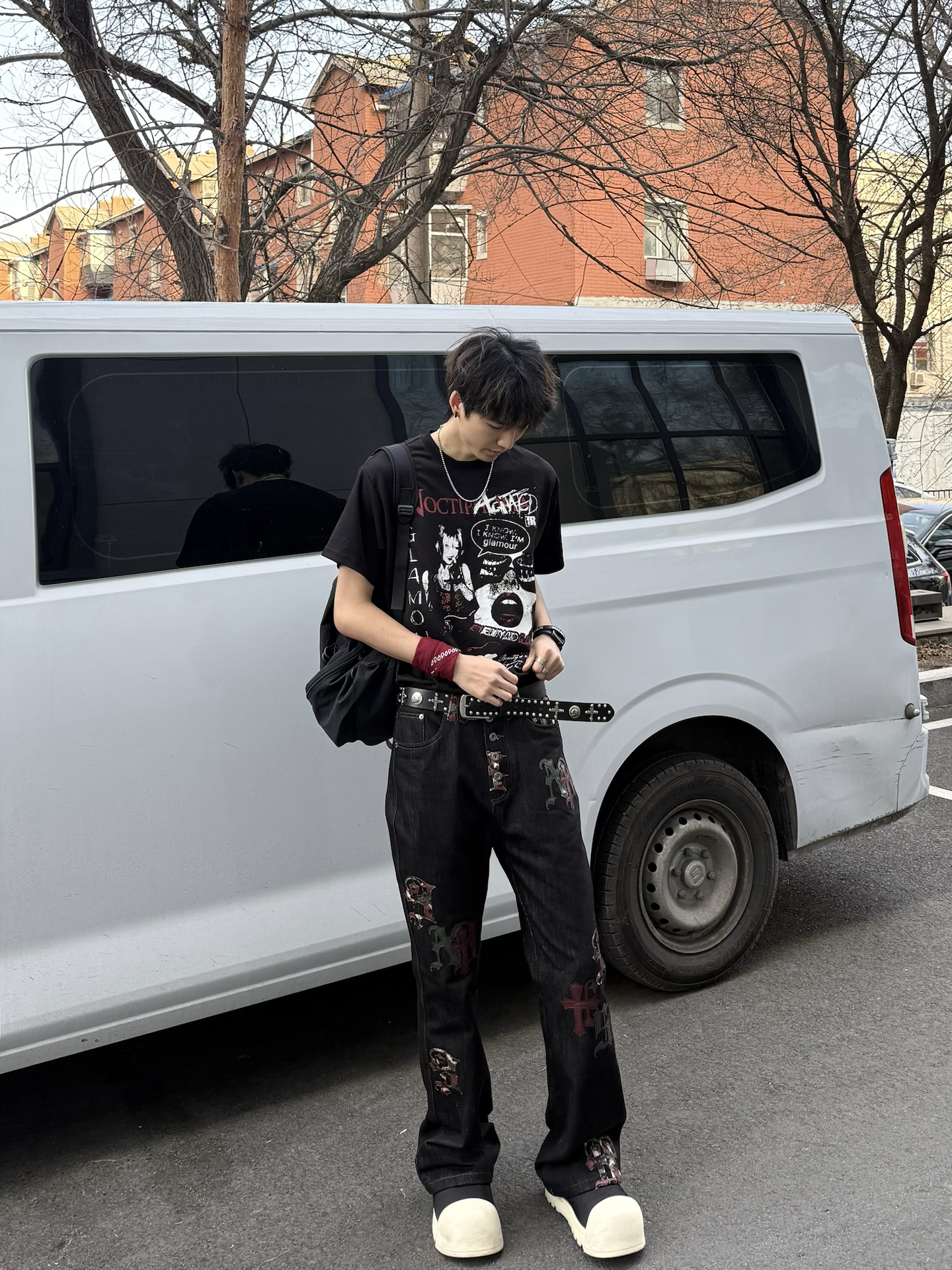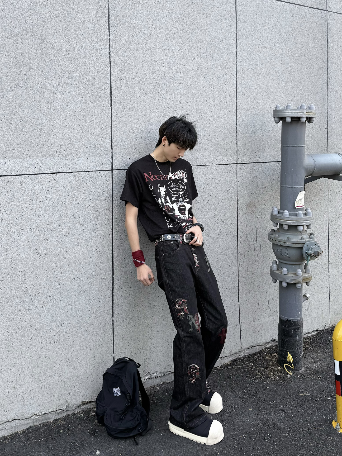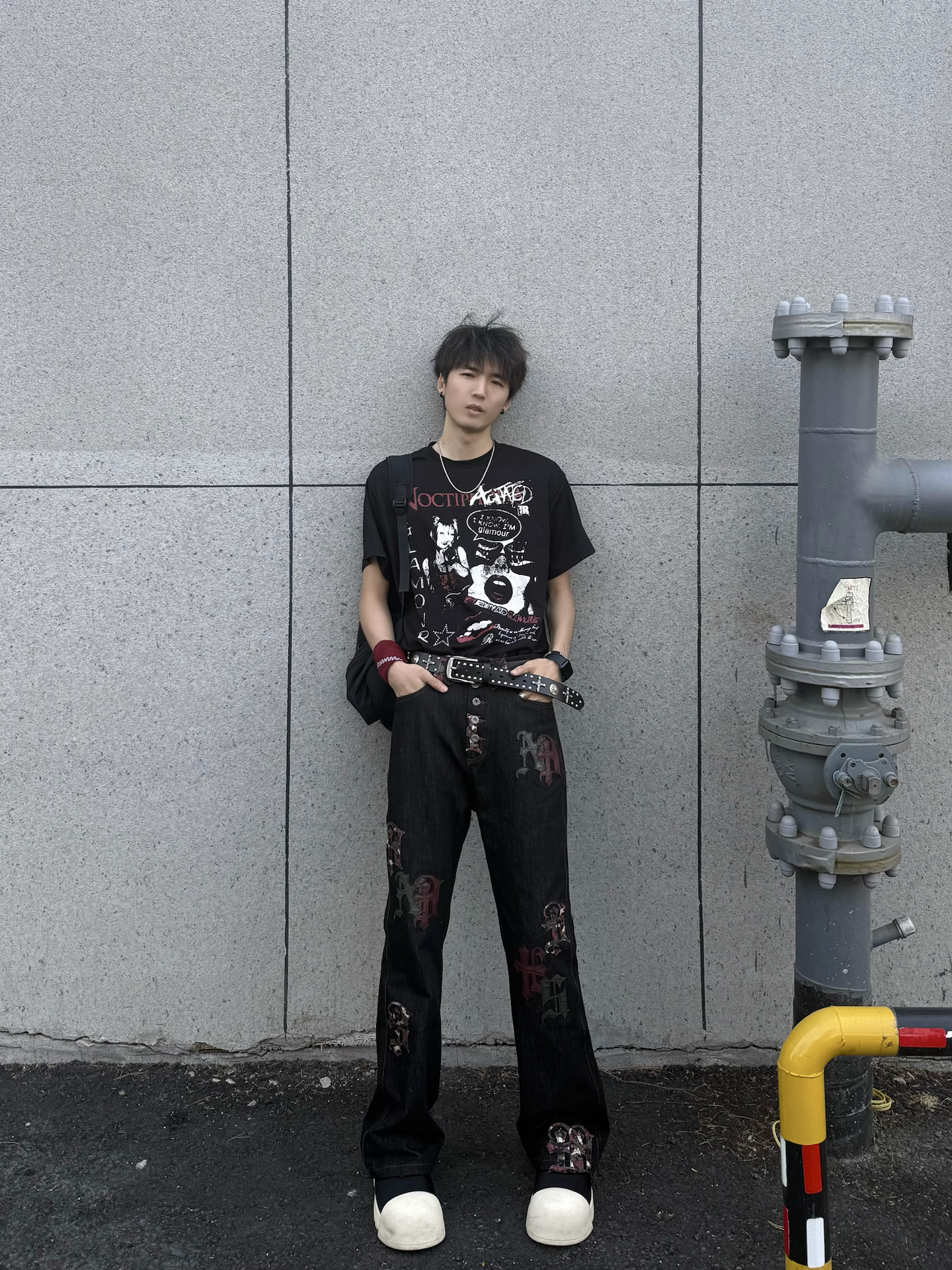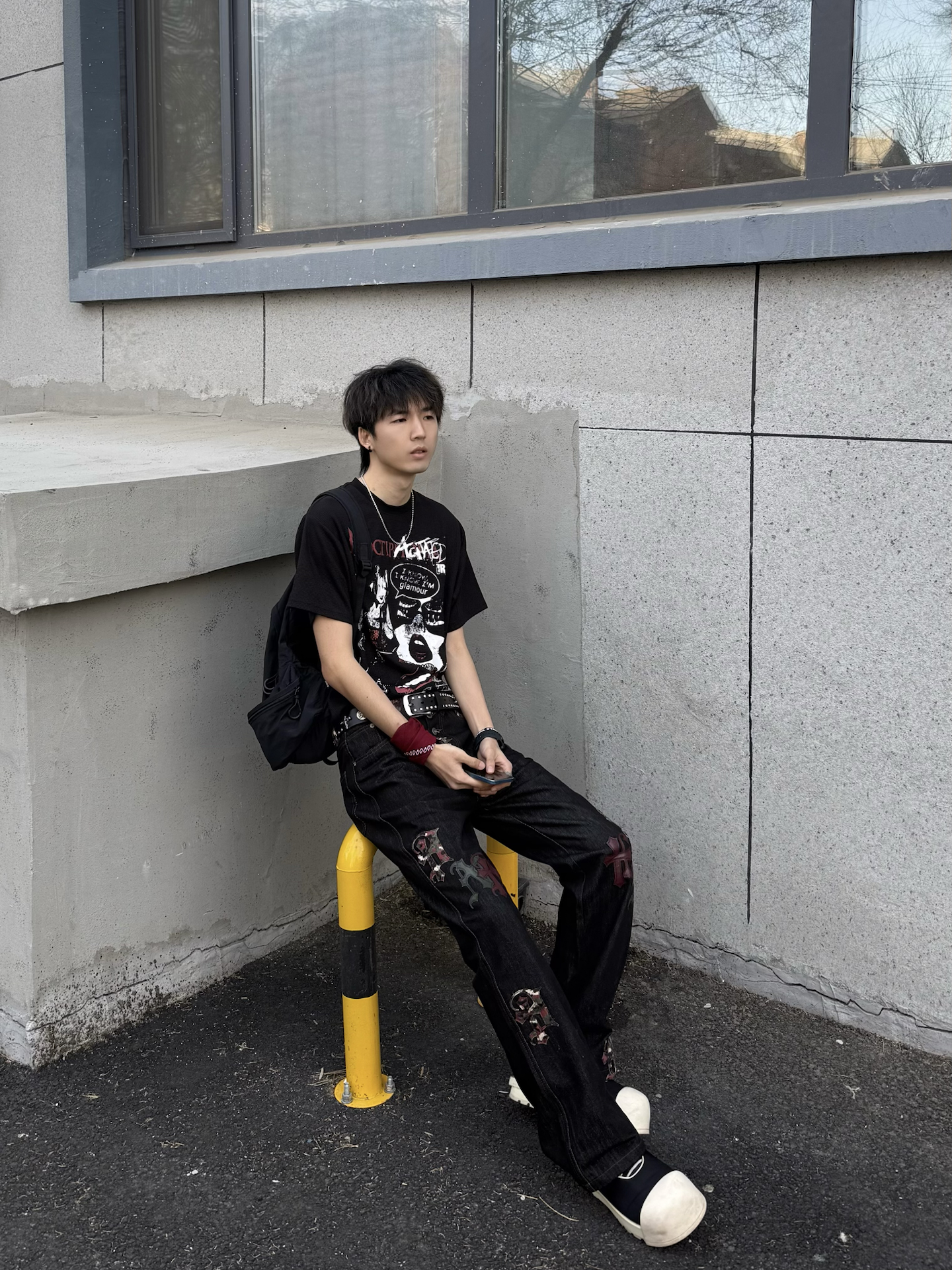 穿搭这件事穿久了就懂😌越松弛就越舒服 前两年Cleanfit火得一塌糊涂📉今年直接被美式街头统治了🔥 今天搭了身重工街头风⬇️ 👔抓了件GP的黑底人像印花T 👖配DND4DES这条重工贴布牛仔裤 直筒版型还蛮显瘦 略带点十字印花 刚好加点街头的哥特元素 全身色调以黑为主 用小面积红色上下呼应🔴 色调统一 看着特别干净👉整身配饰不多 减少视觉复杂性 现在真的很喜欢这种随性洒脱的穿搭 能轻松融入街区 ...