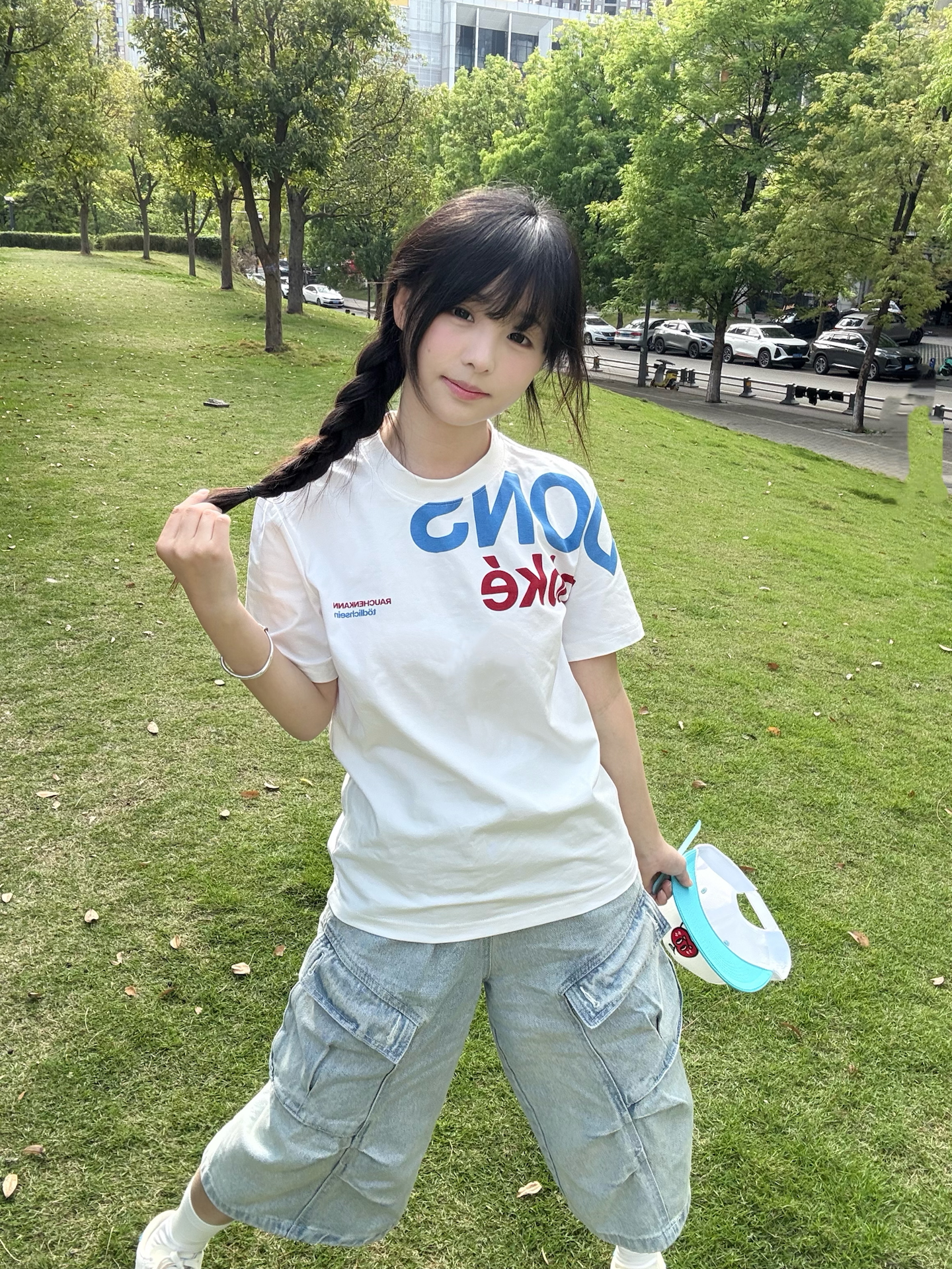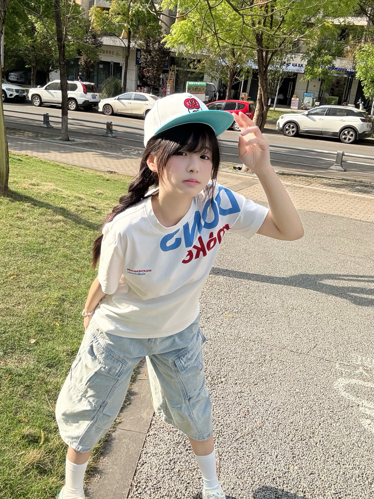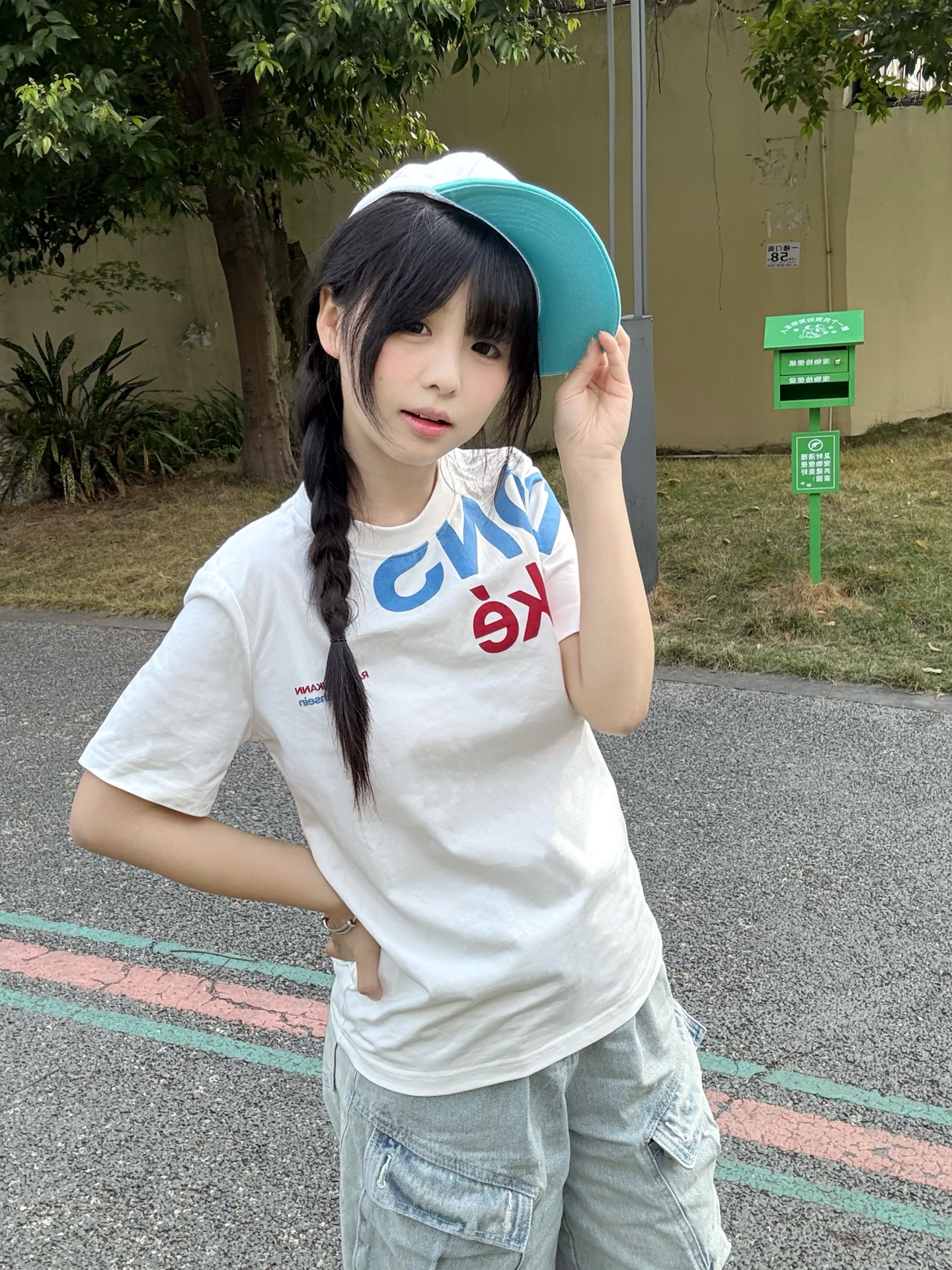 随性字母涂鸦少年感直接拉满啦 版型是正肩的 小个子穿也超显比例!! 面料软软糯糯 贴身穿超舒服🥺 随便搭牛仔裤、运动裤、短裙都好看 青春感穿搭真的离不开它~