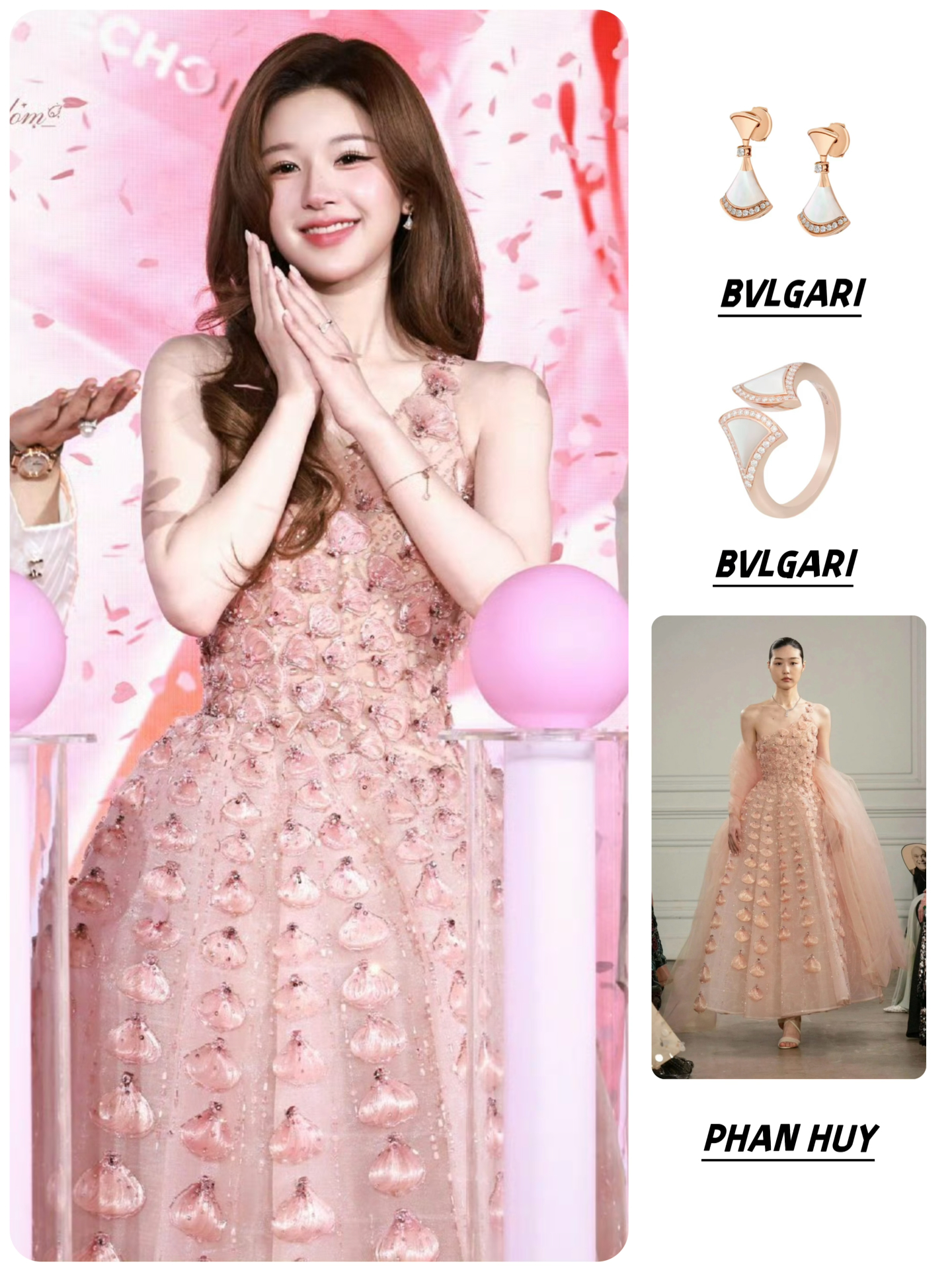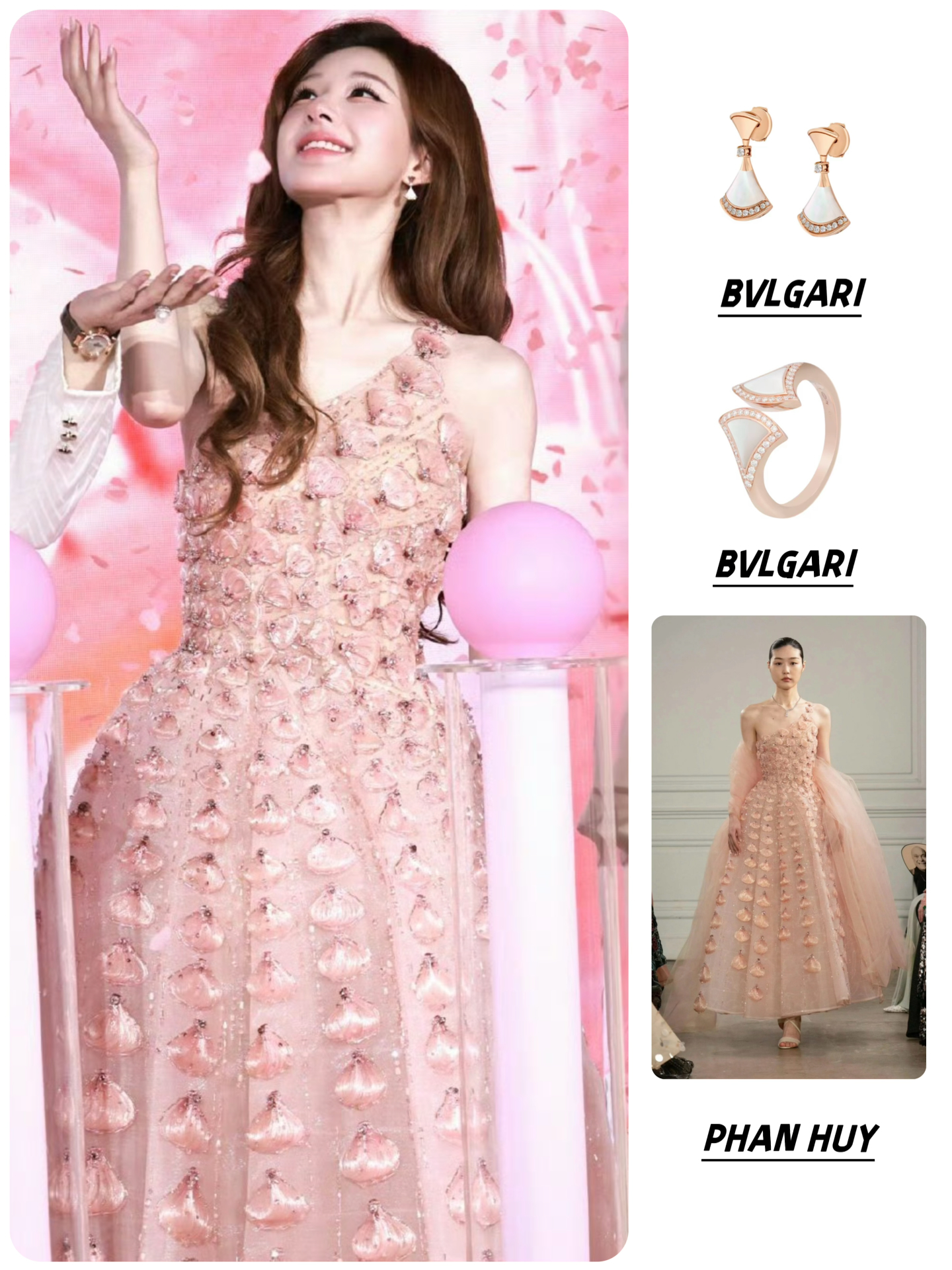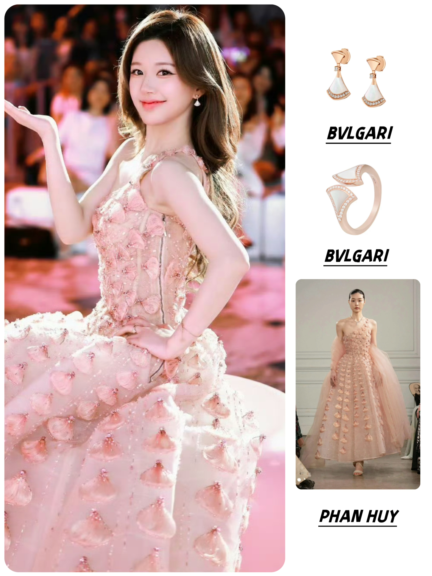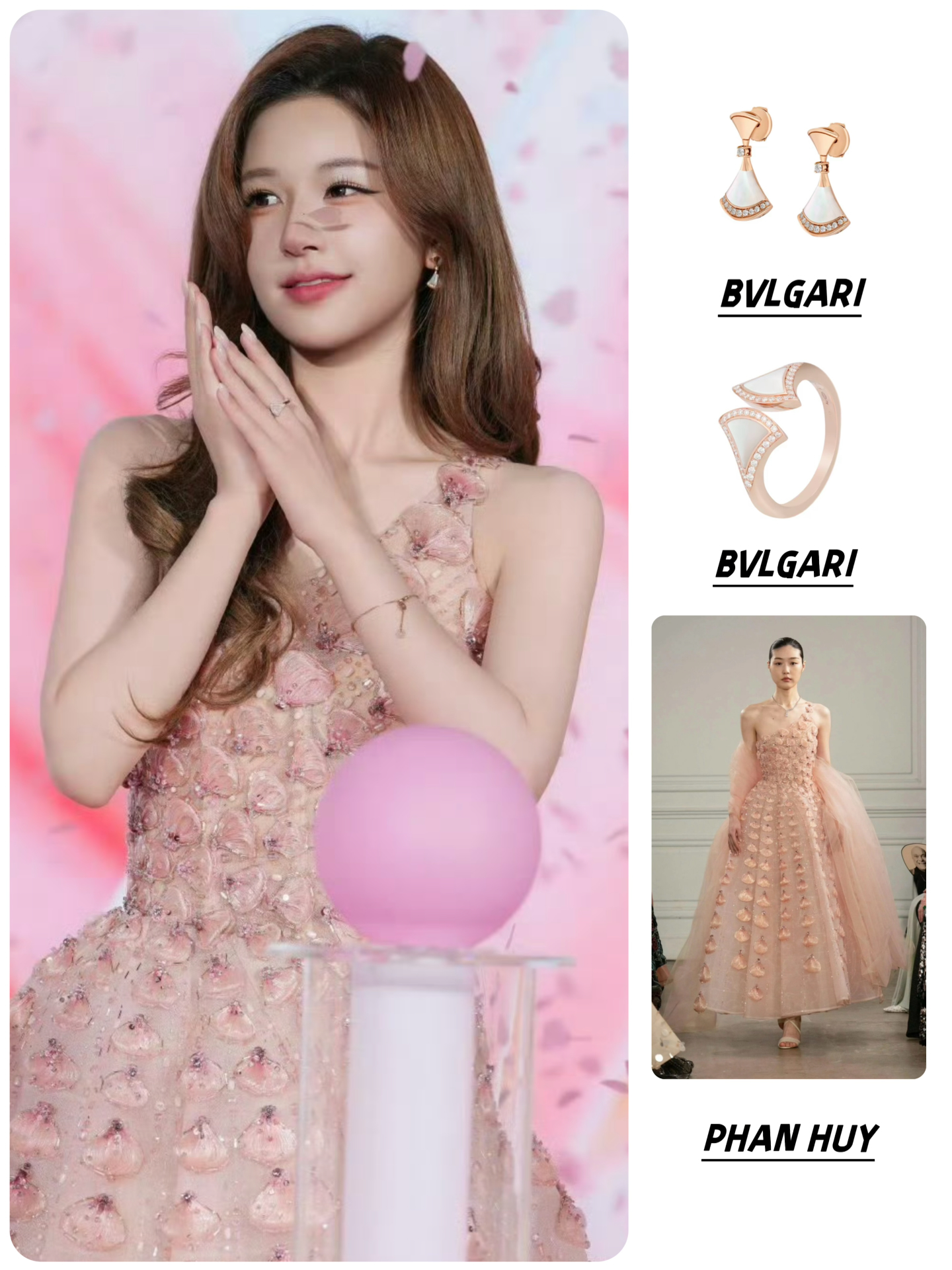 耳饰:BVLGARI宝格丽 DIVAS’ DREAM系列 耳环 💍BVLGARI宝格丽 DIVAS’ DREAM系列 戒指 👗PHAN HUY SPRING-SUMMER 2026 COUTURE系列 粉色礼服裙