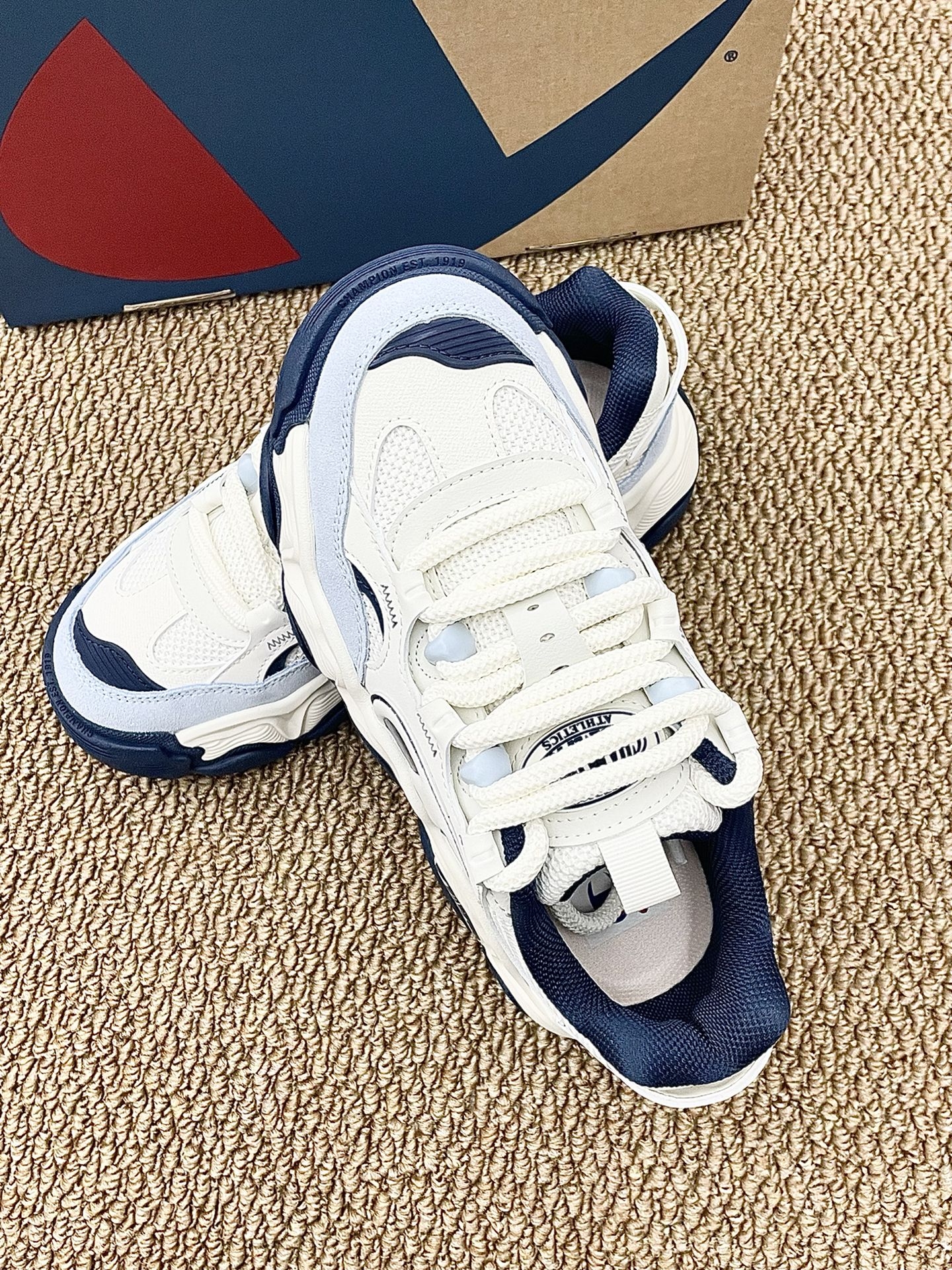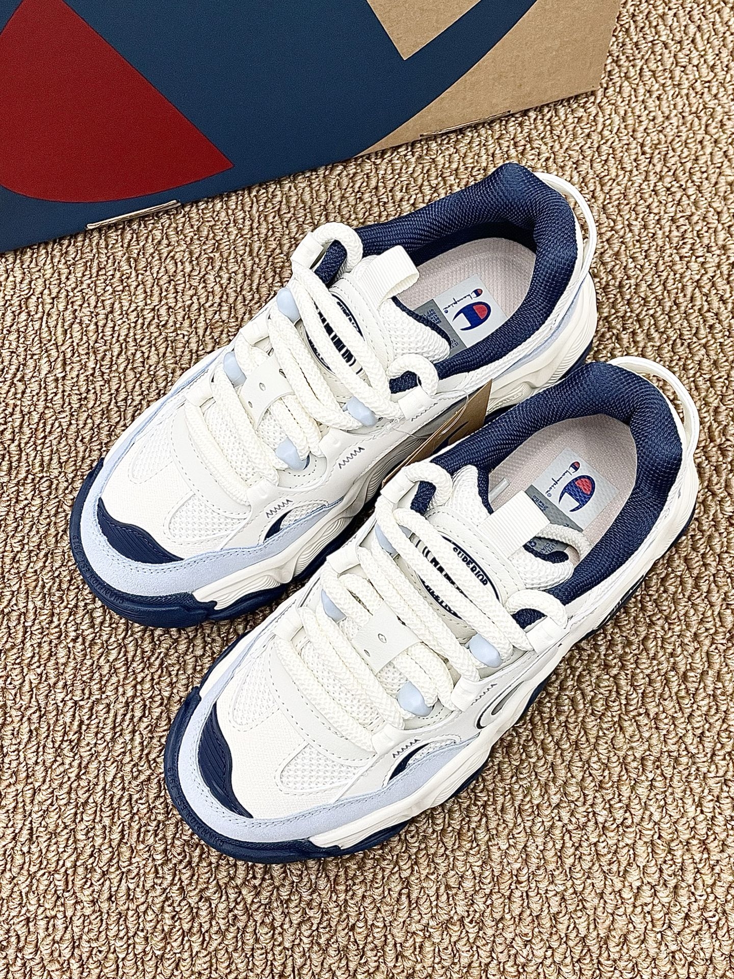Champion这双白蓝老爹鞋真的把我拿捏住了😭 奶白+藏蓝的配色像把夏天的晴空踩在脚下,清爽又自带校园滤镜,网面+皮革拼接的材质透气又有质感,完全不闷脚!厚底悄悄增高5cm,腿直接被拉成筷子精,搭牛仔裤、运动裤、碎花裙都巨好看,百元价位穿出千元质感,学生党闭眼冲不亏!
