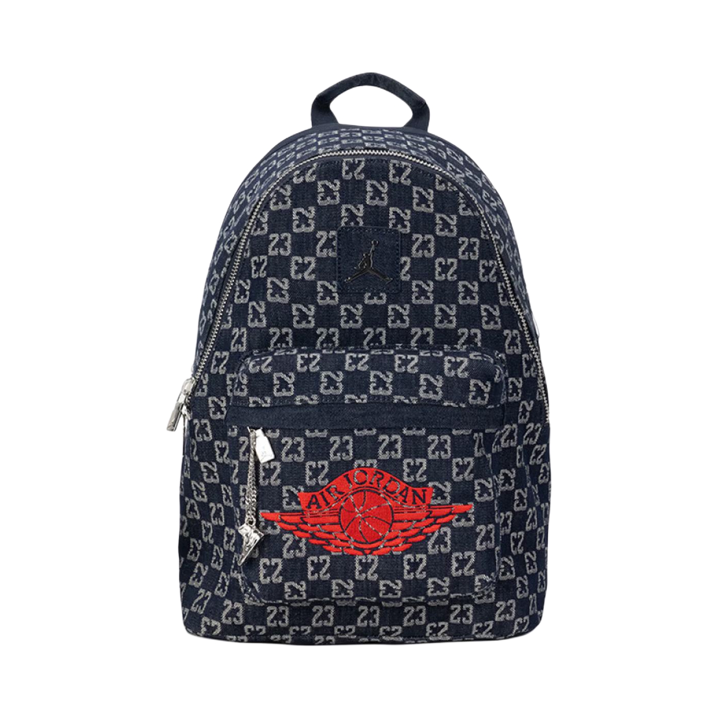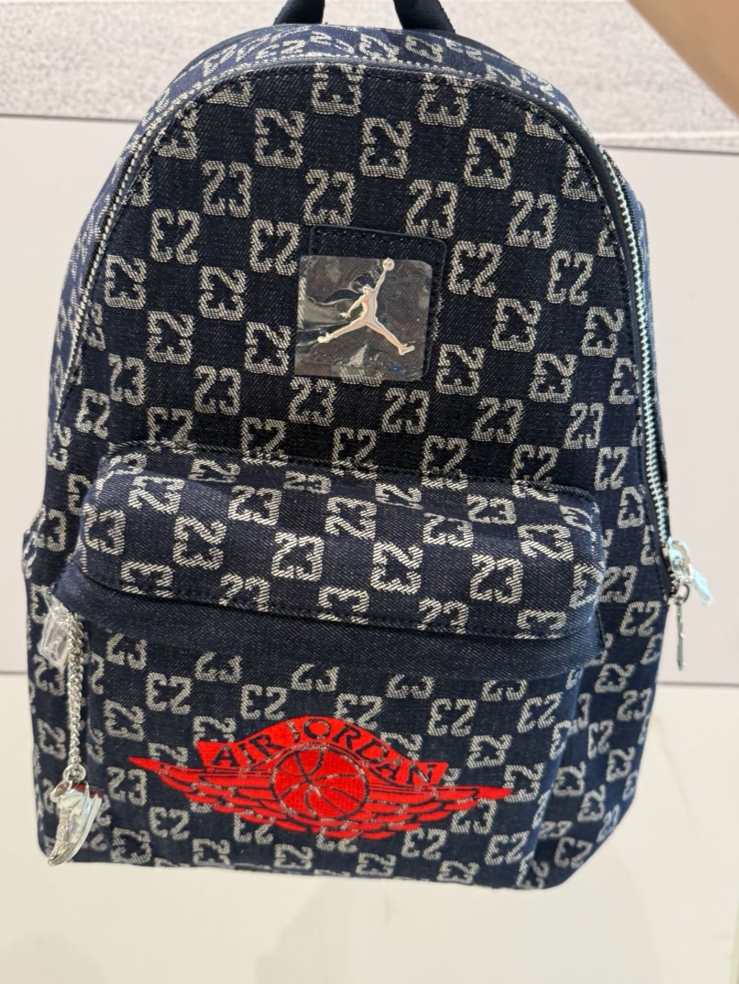 谁懂啊!这只Jordan牛仔双肩包把复古感焊在身上了💙 满印23老花丹宁面料,自带美式复古滤镜,低调又有辨识度,红色飞人logo点缀直接点睛,潮酷感拉满! 迷你尺寸太适合日常,手机、口红、粉饼都能装,手提+双肩两种背法,通勤、出街、约会都能hold住! 🦋🦋细节控狂喜!金属飞人挂饰+满印老花,质感绝了!