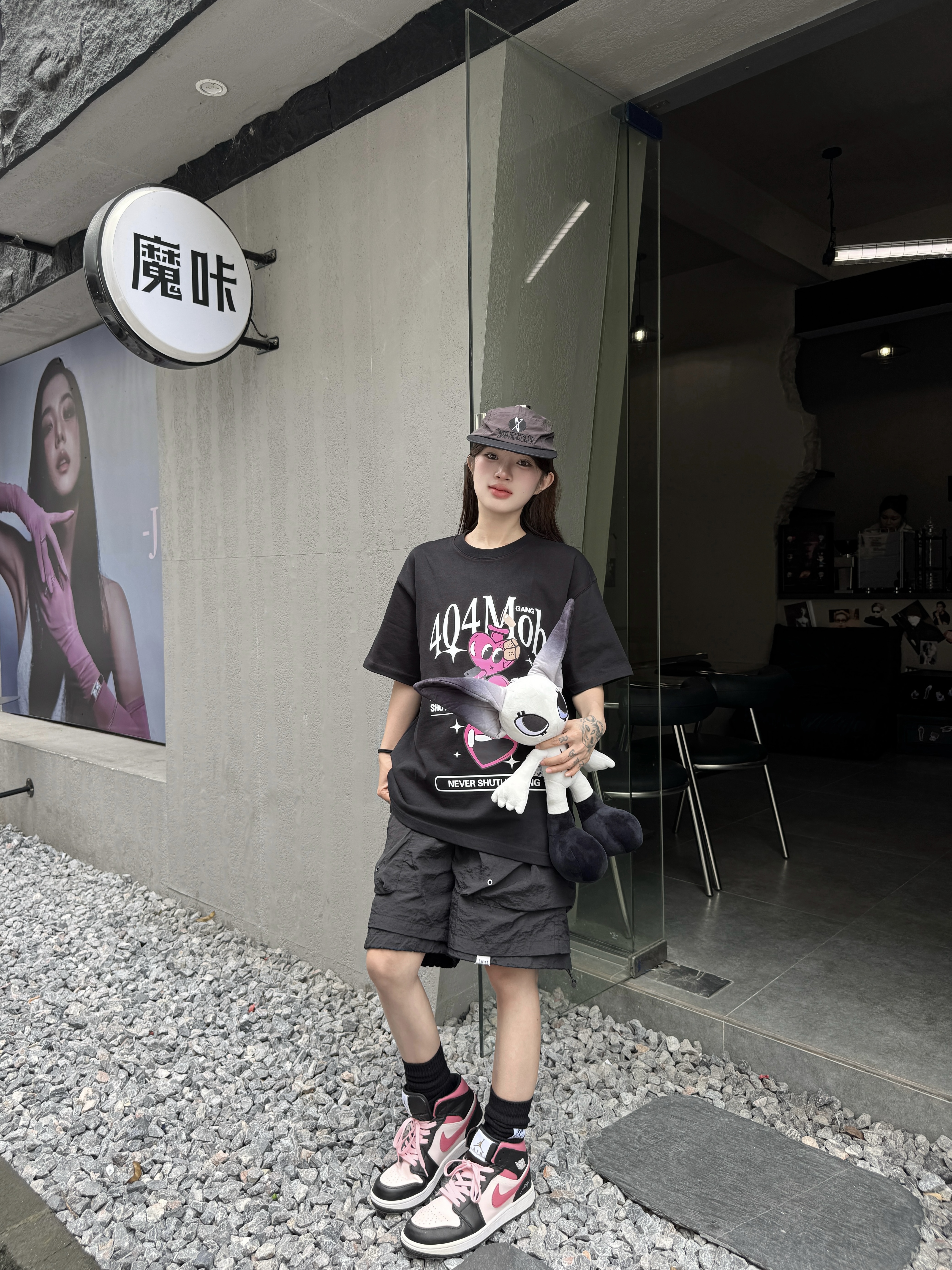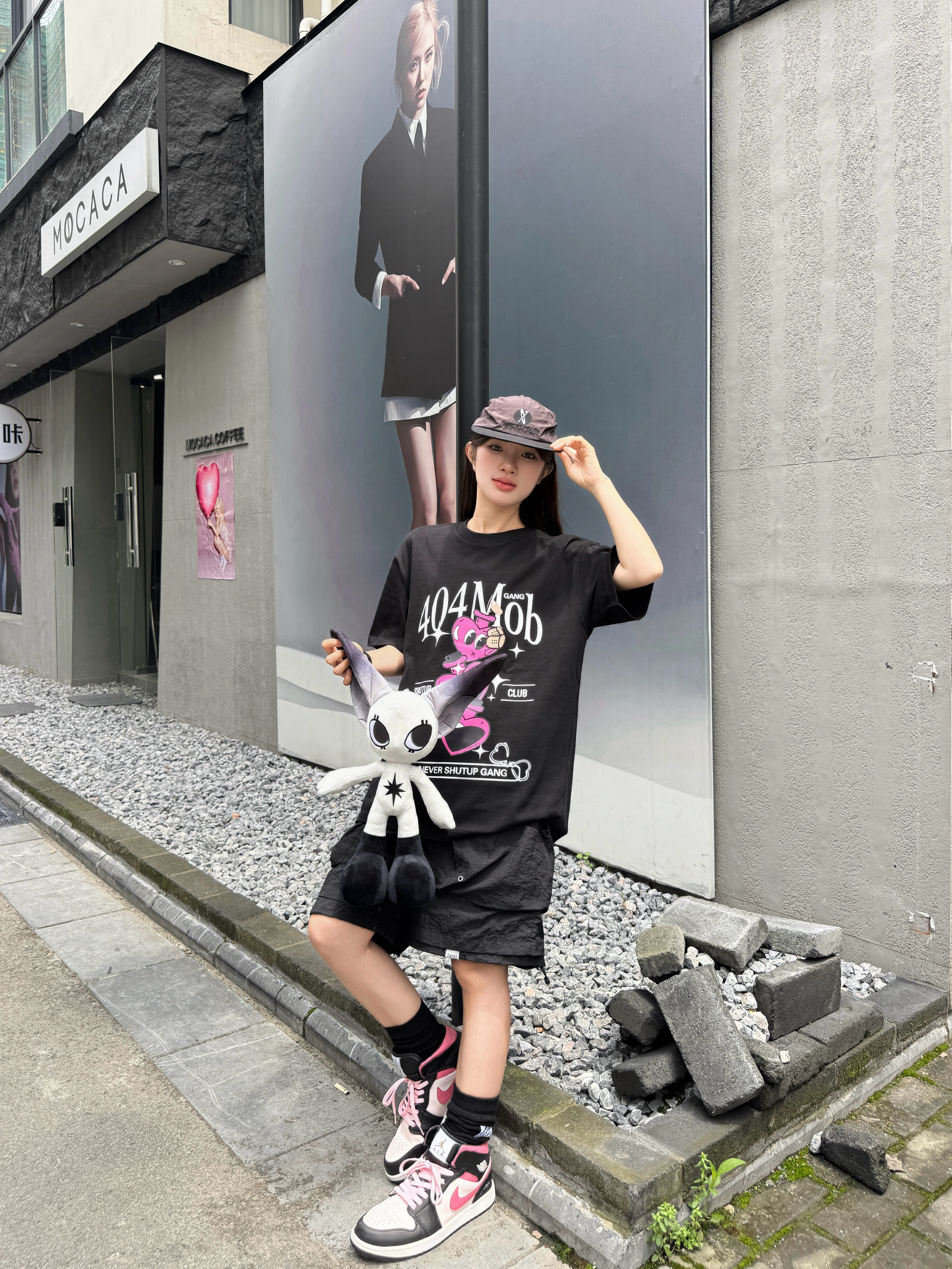 今日探店打卡-Jisoo咖啡厅☕️真的太出片啦 今日穿搭主打一个黑粉色撞色look💖🖤 短袖搭配同色系短裤,整体色调统一干净 🏩黑粉拼色球鞋适配度很高 柔粉撞色打破全身黑的单调感,鞋身配色甜酷均衡 简简单单出门,舒服耐看就刚刚好